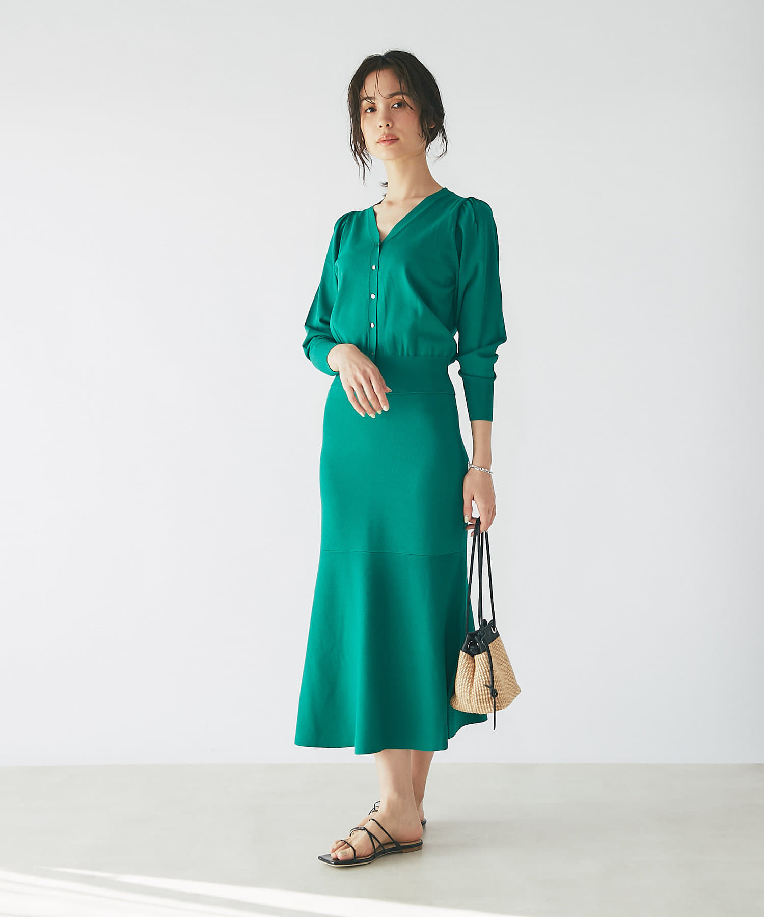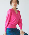 すっきりとしたシルエットとVネックで女性らしい印象を演出し、且つ、デコルテをきれいに見せてくれる一枚です。