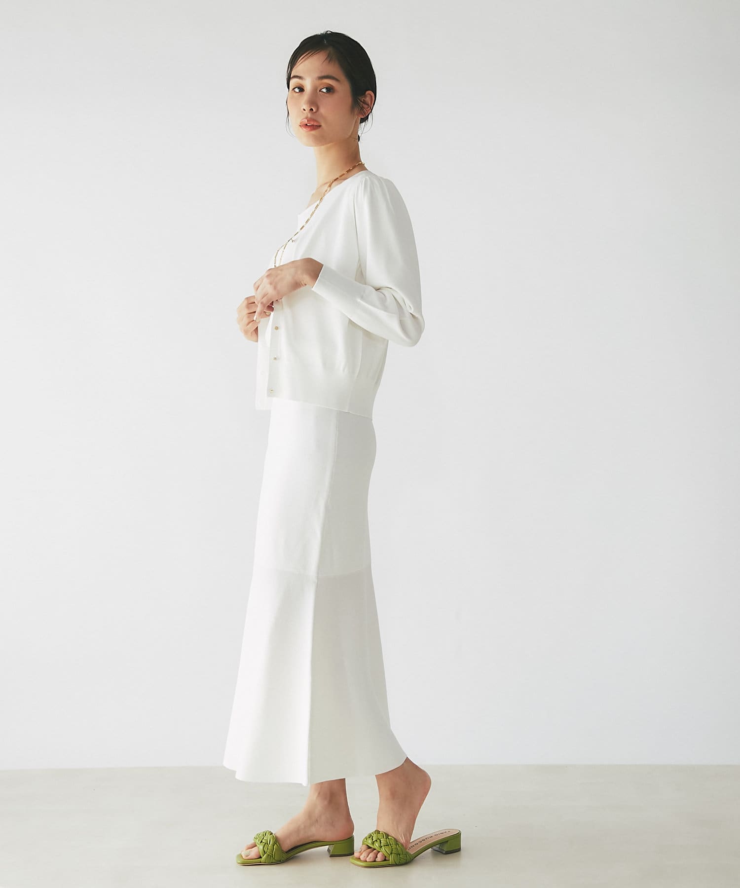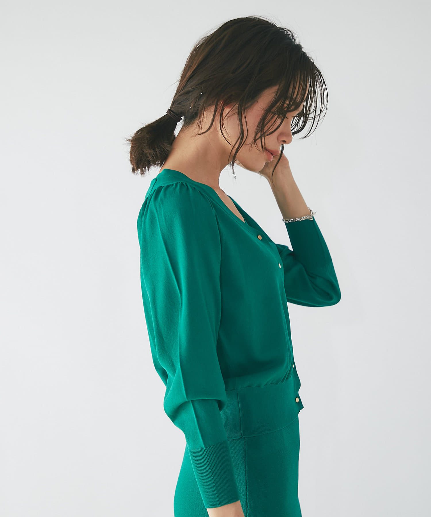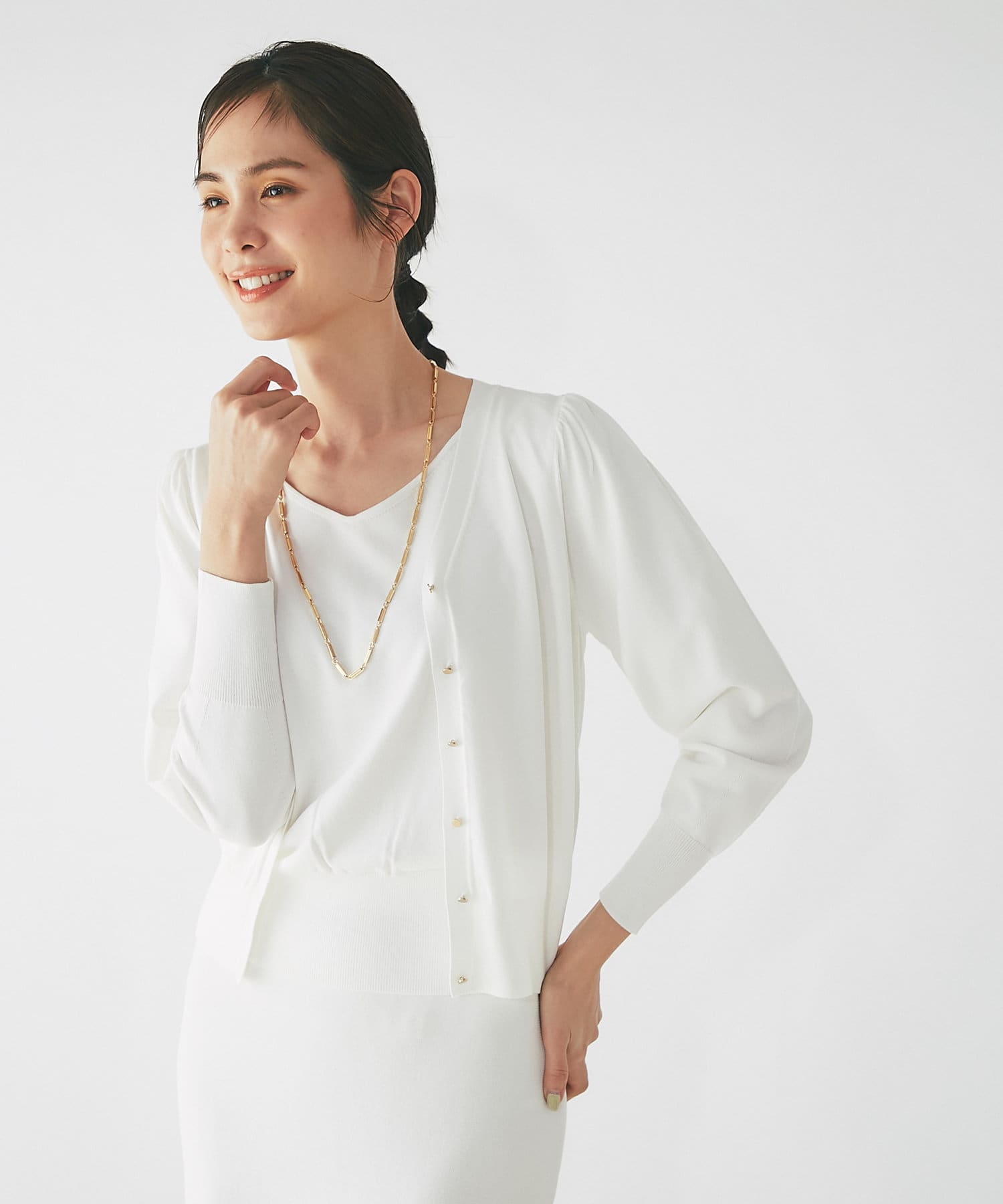 ひんやりとした触り心地の機能素材を使用したカーディガン。
