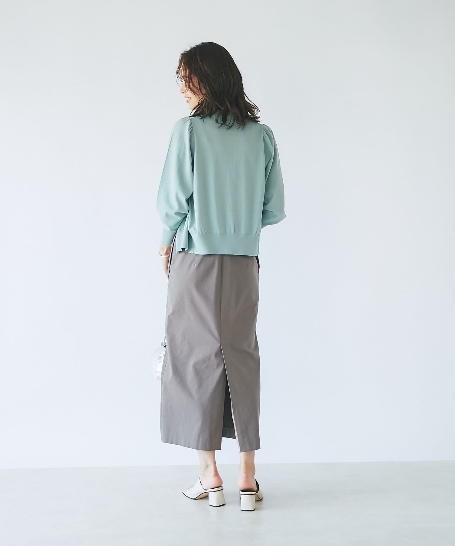 シンプルなデザインできれいめ見えする一枚なので、オフィススタイルにもおすすめで、着回し力も抜群です。