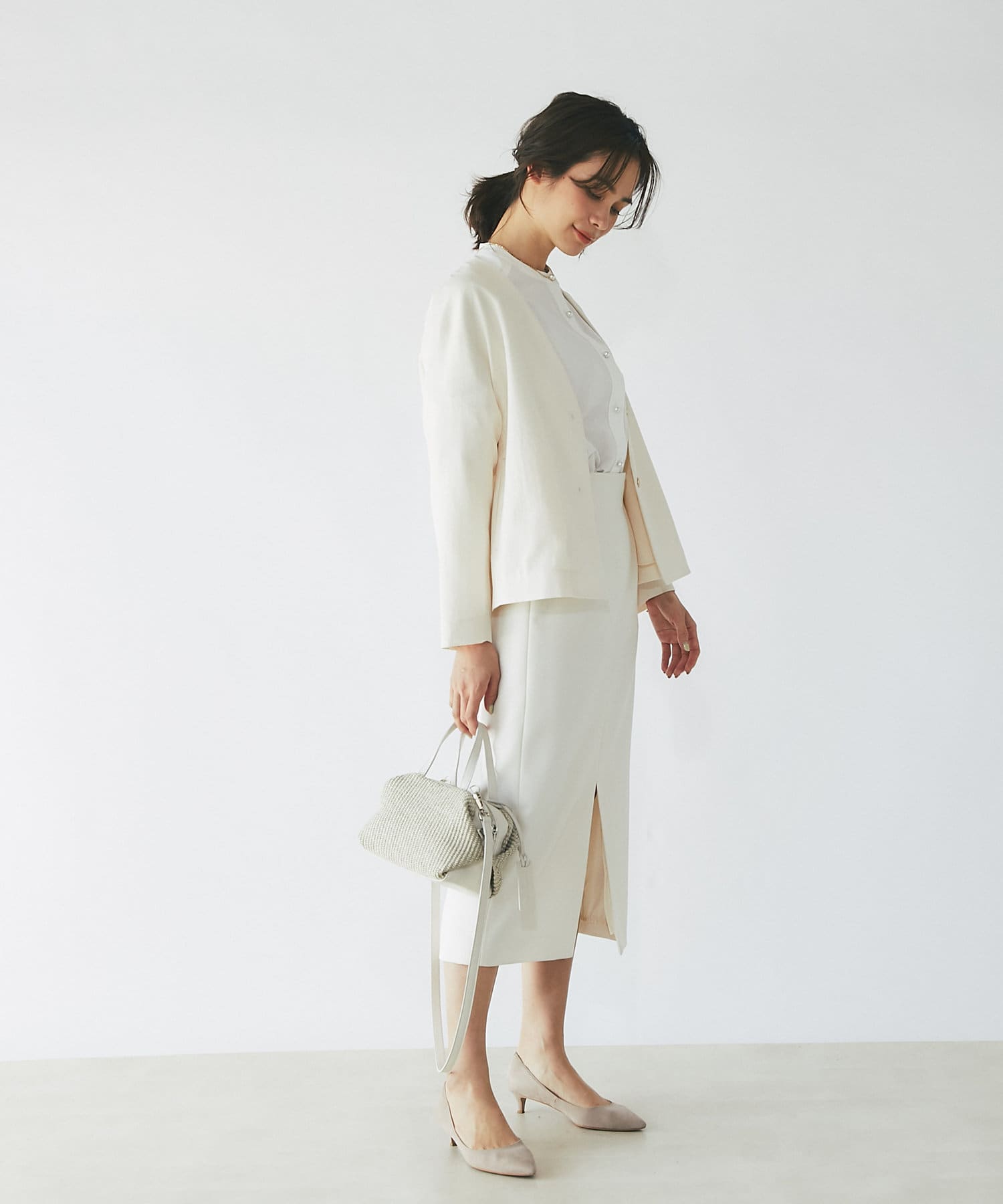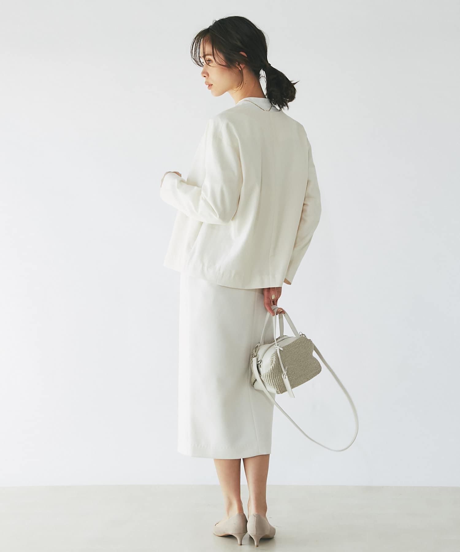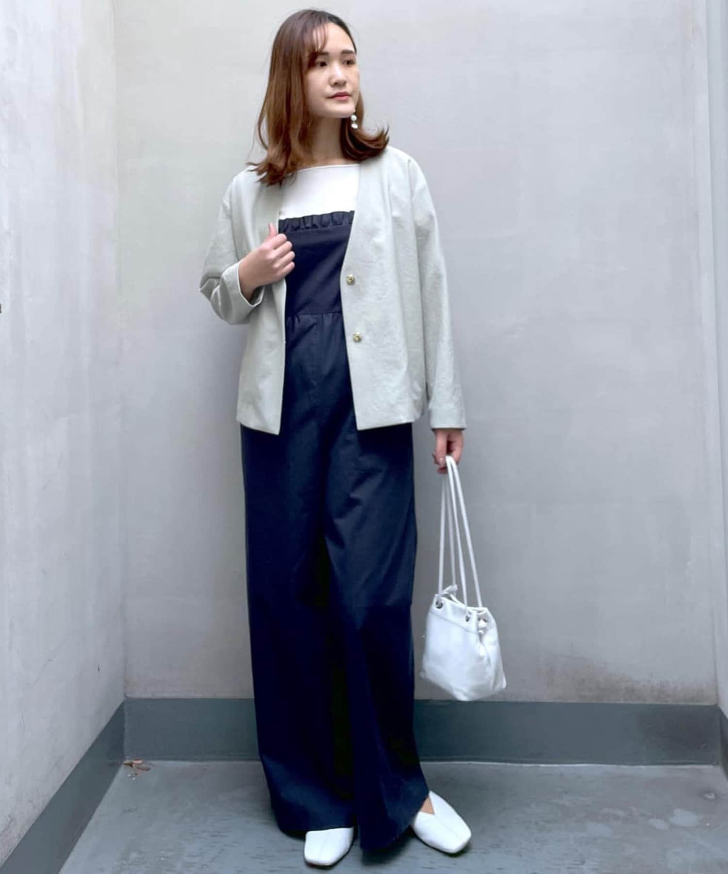 ジャケットはドロップショルダーでかしこまり過ぎないデザインです。