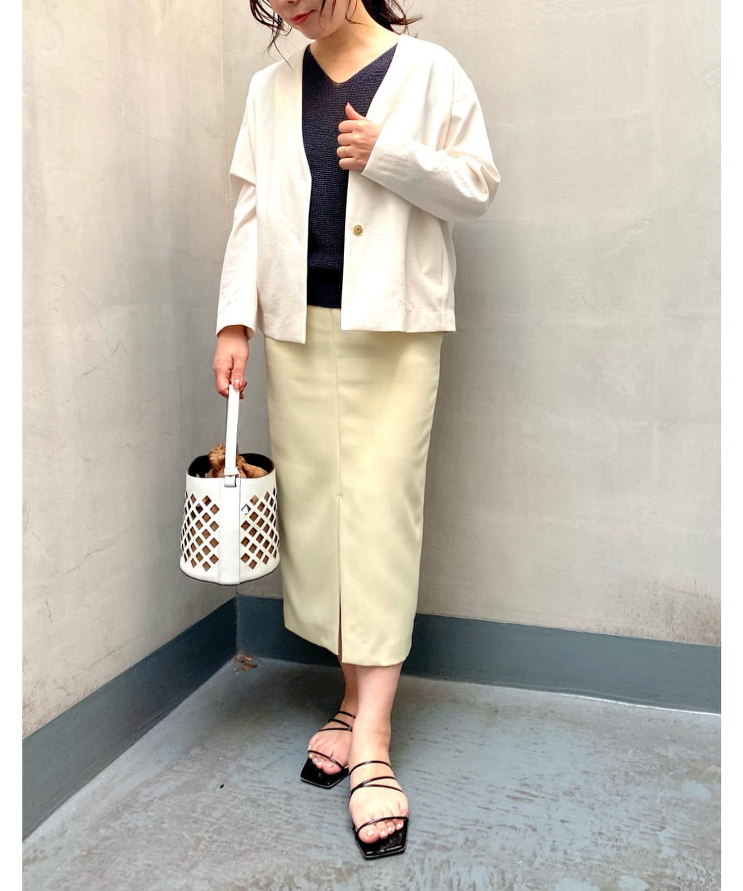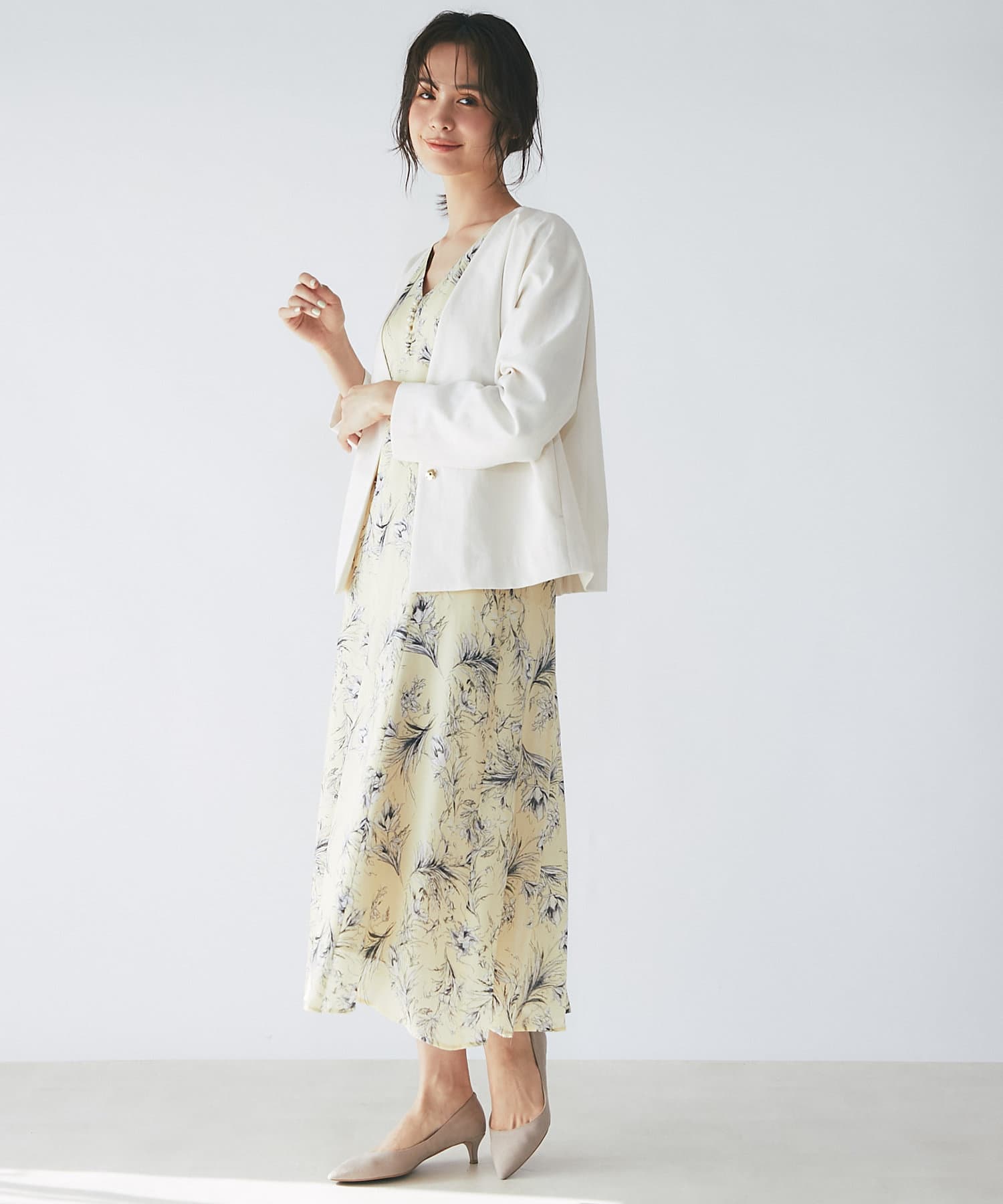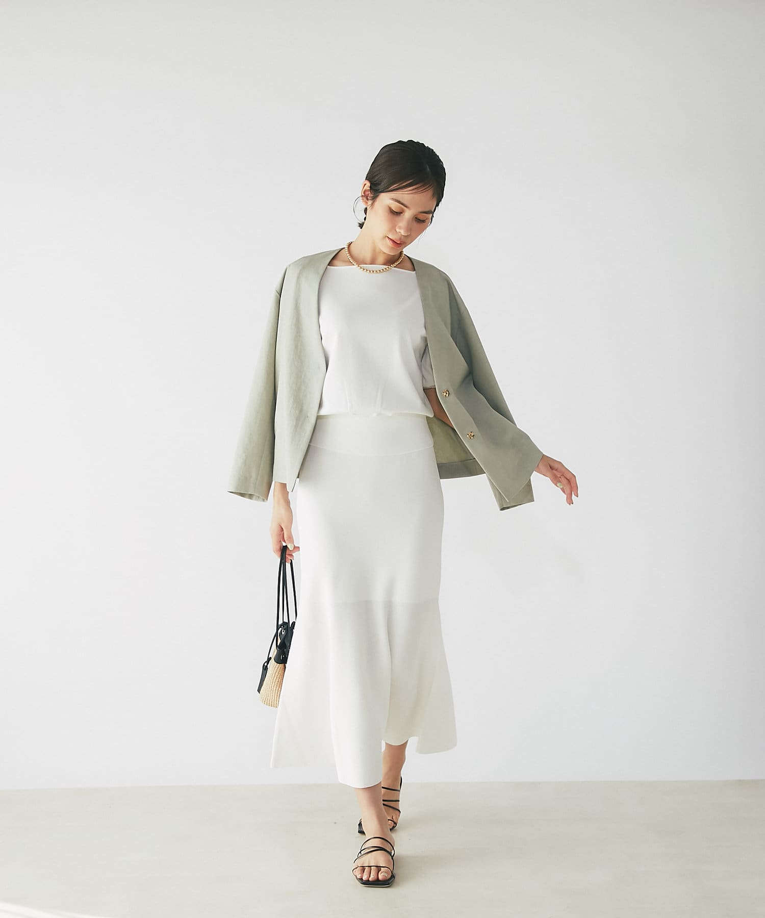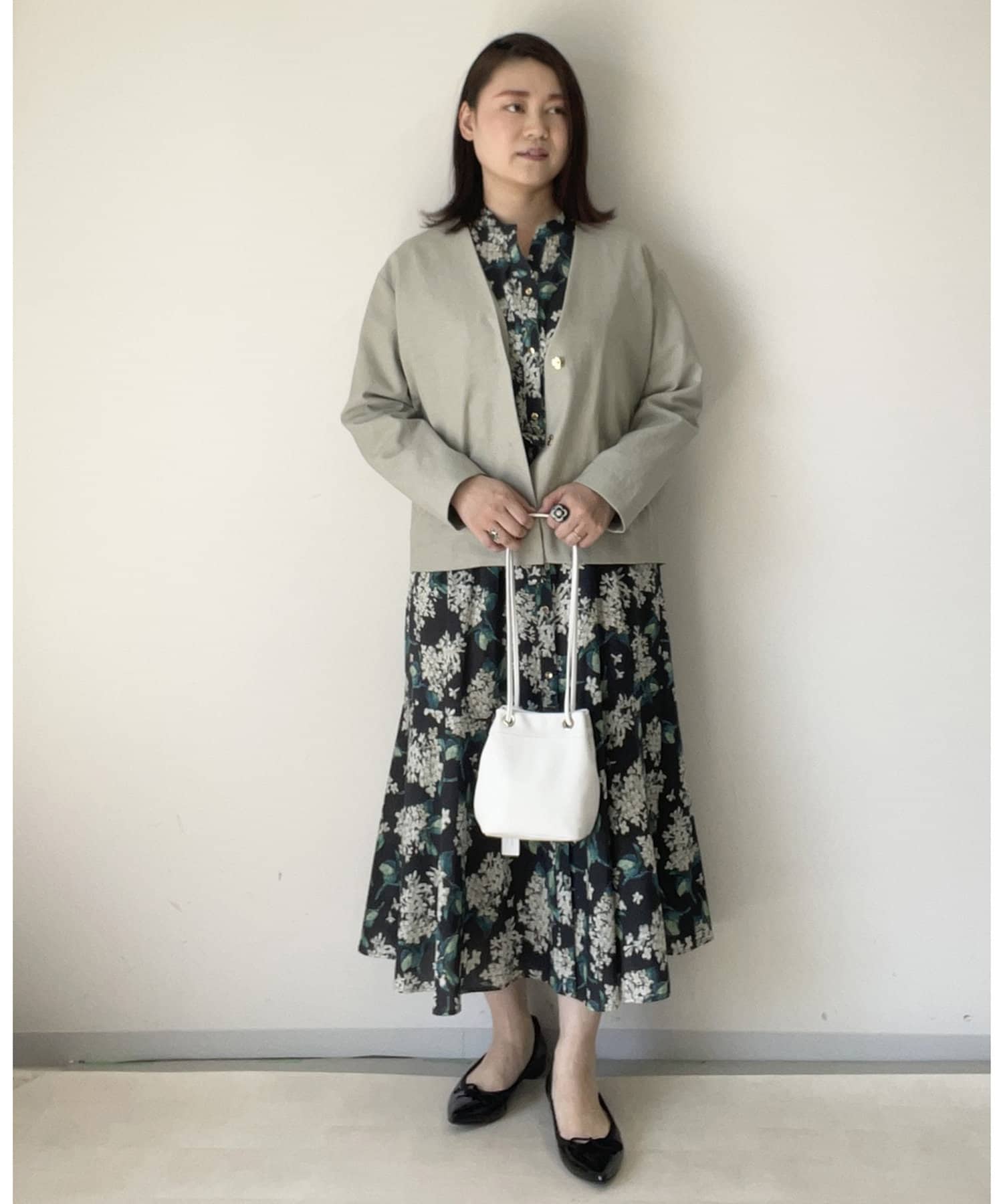 ジャケットはドロップショルダーでかしこまり過ぎないデザインです。