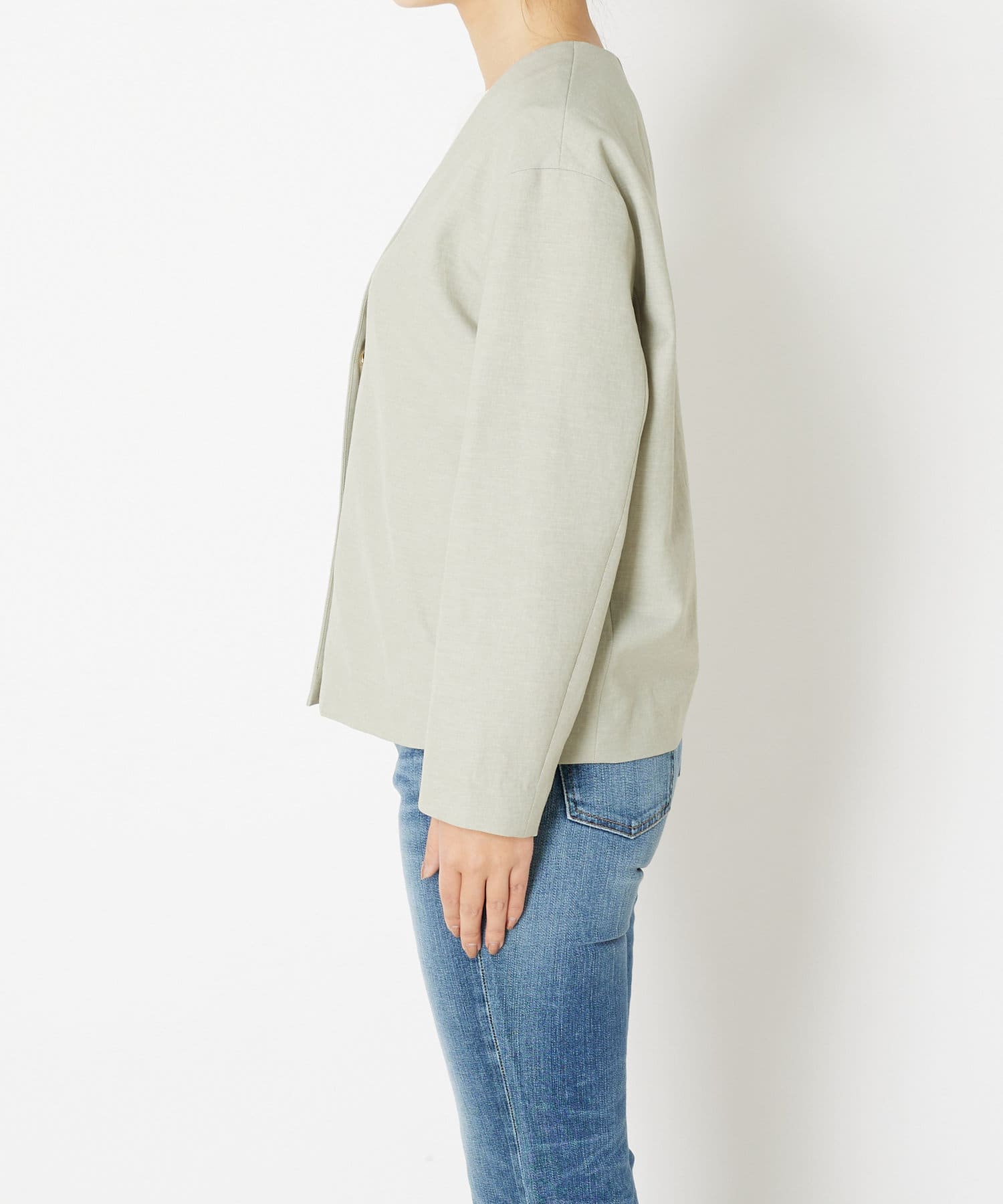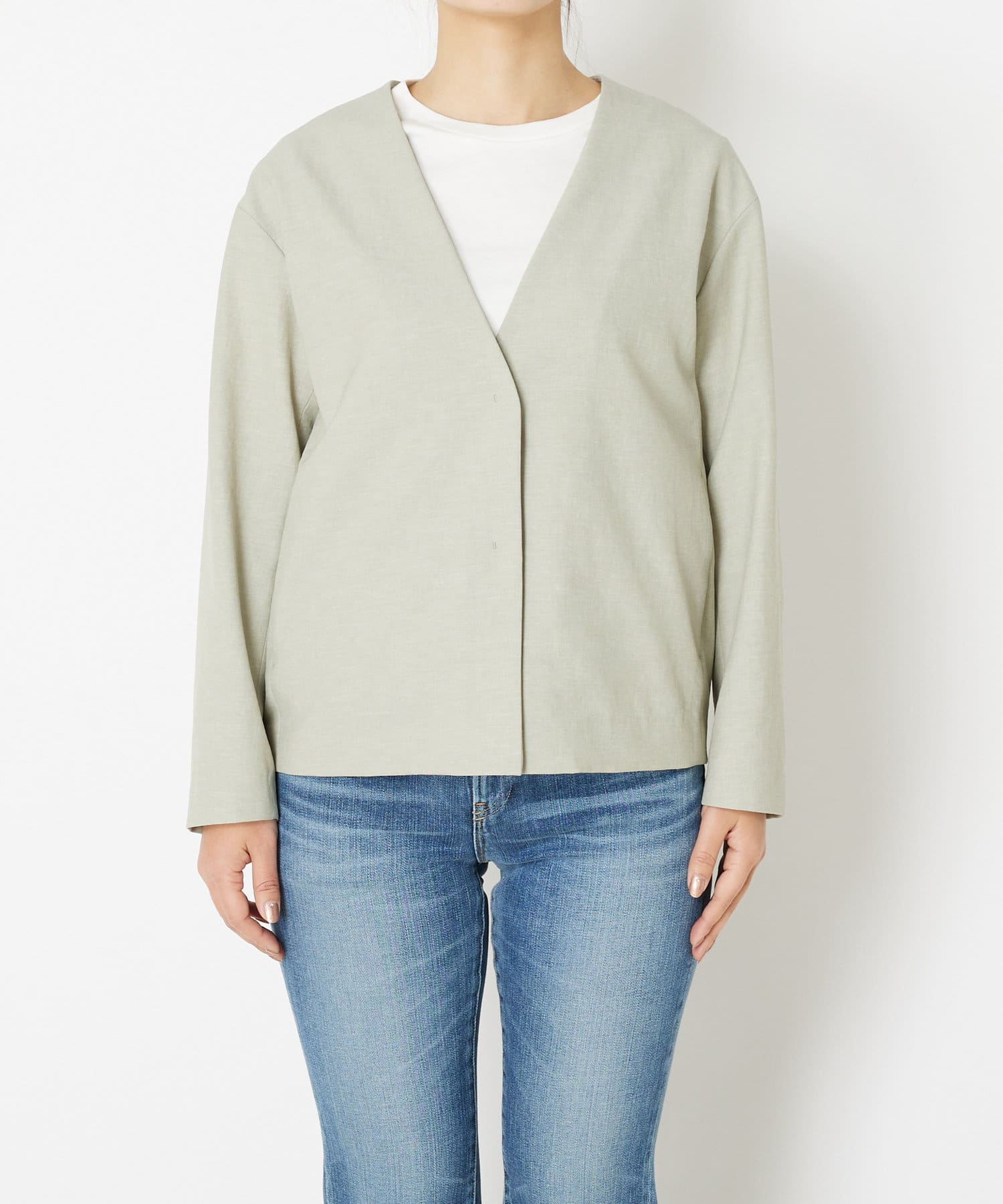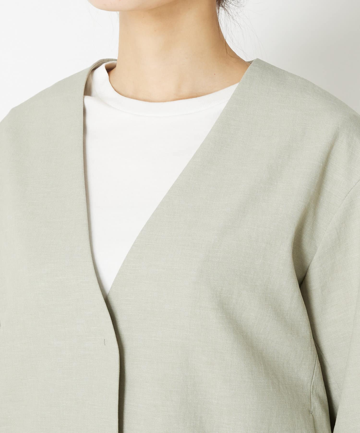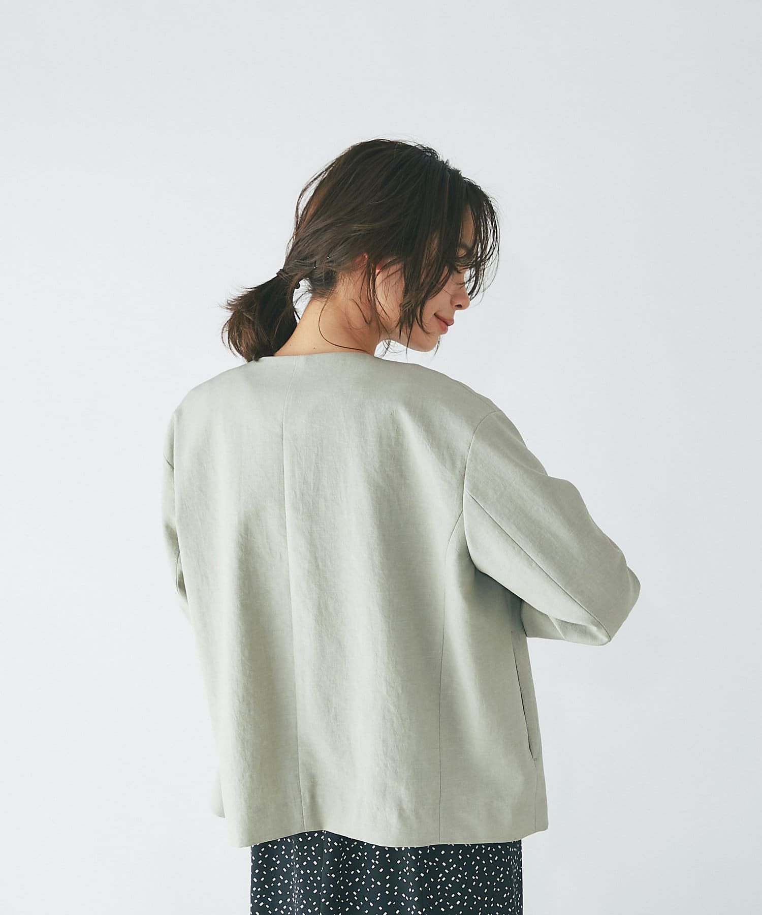 【さらっとカーディガン感覚】綿麻ツイルバイオノーカラージャケット