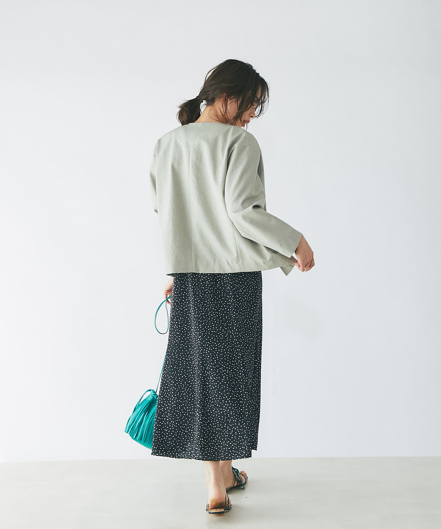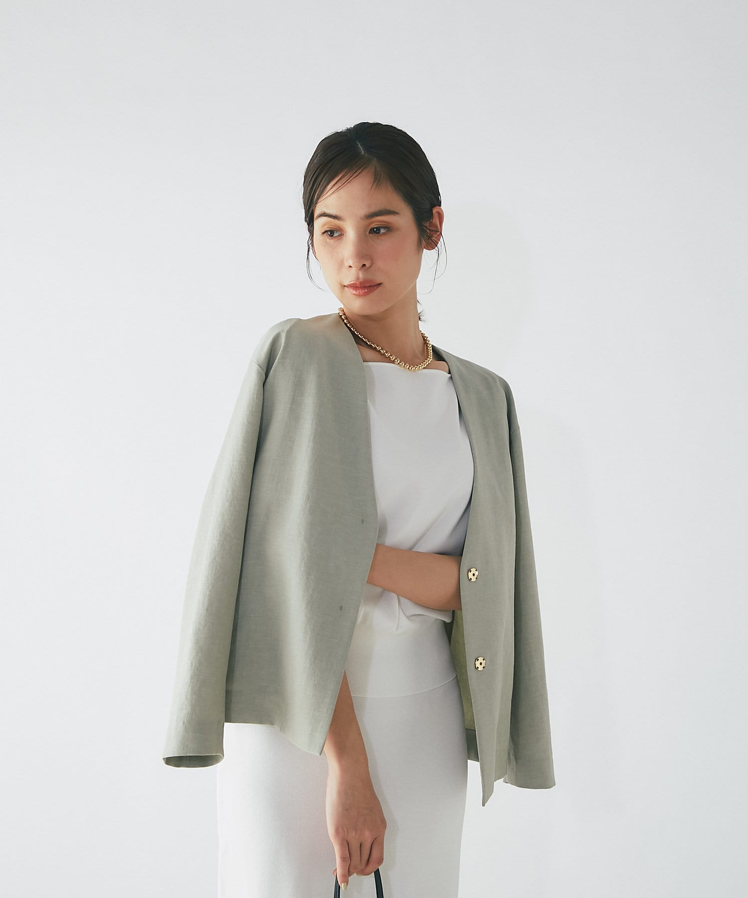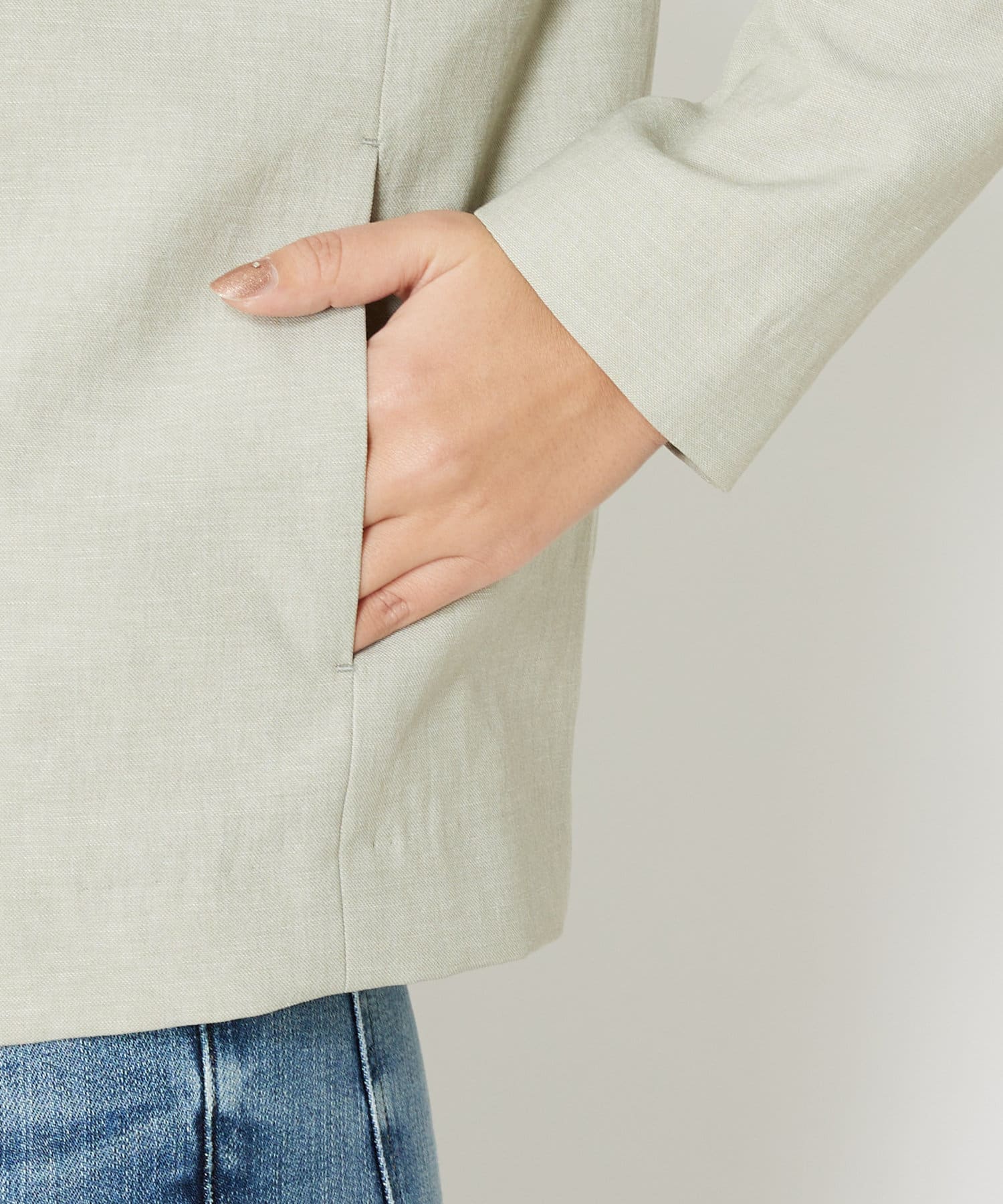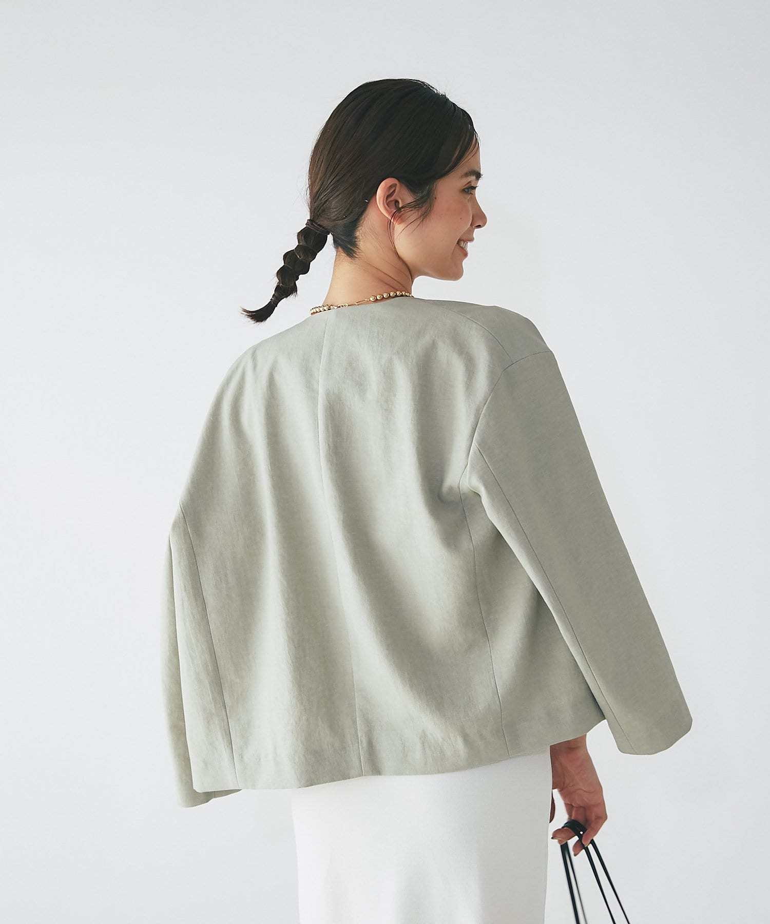 【さらっとカーディガン感覚】綿麻ツイルバイオノーカラージャケット