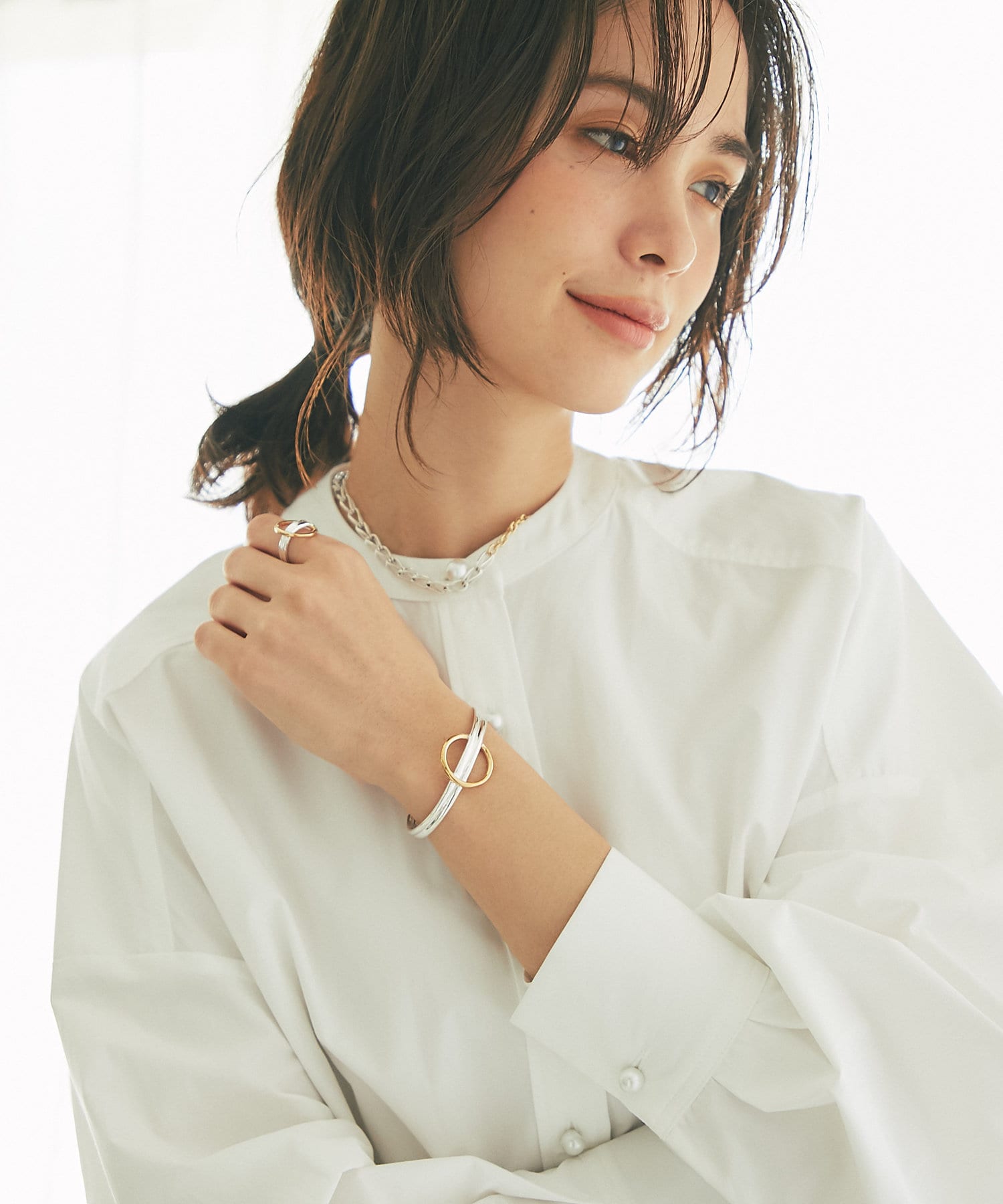 ゴールとシルバーがミックスされたブレスレットで存在感も抜群ながら、シンプルなデザインなので使いやすいアイテム。