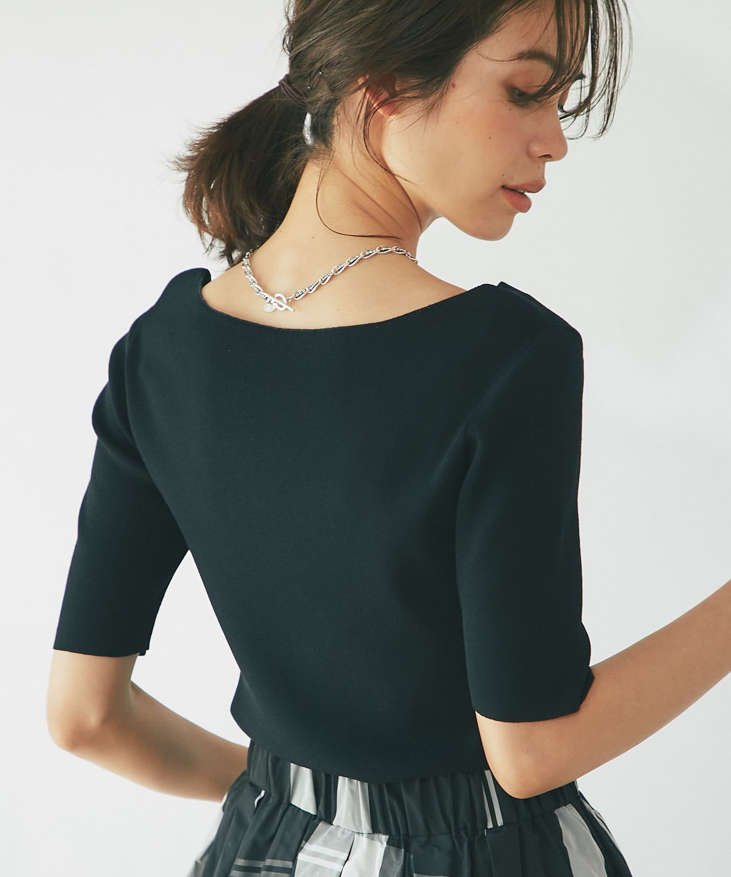 首元を華やかにしてくれるので、シンプルコーデとの相性も抜群◎