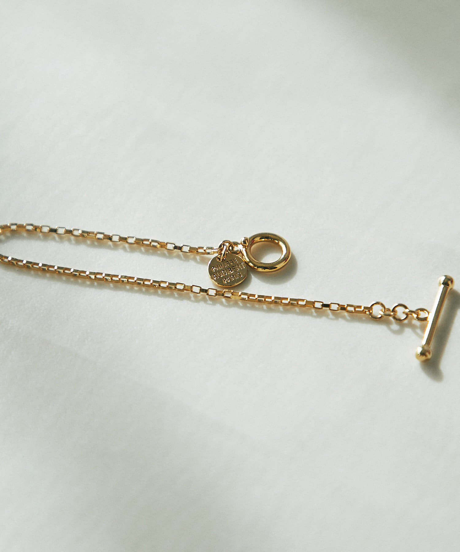 細めの華奢なチェーンで、女性らしく手元を華やかに演出します。