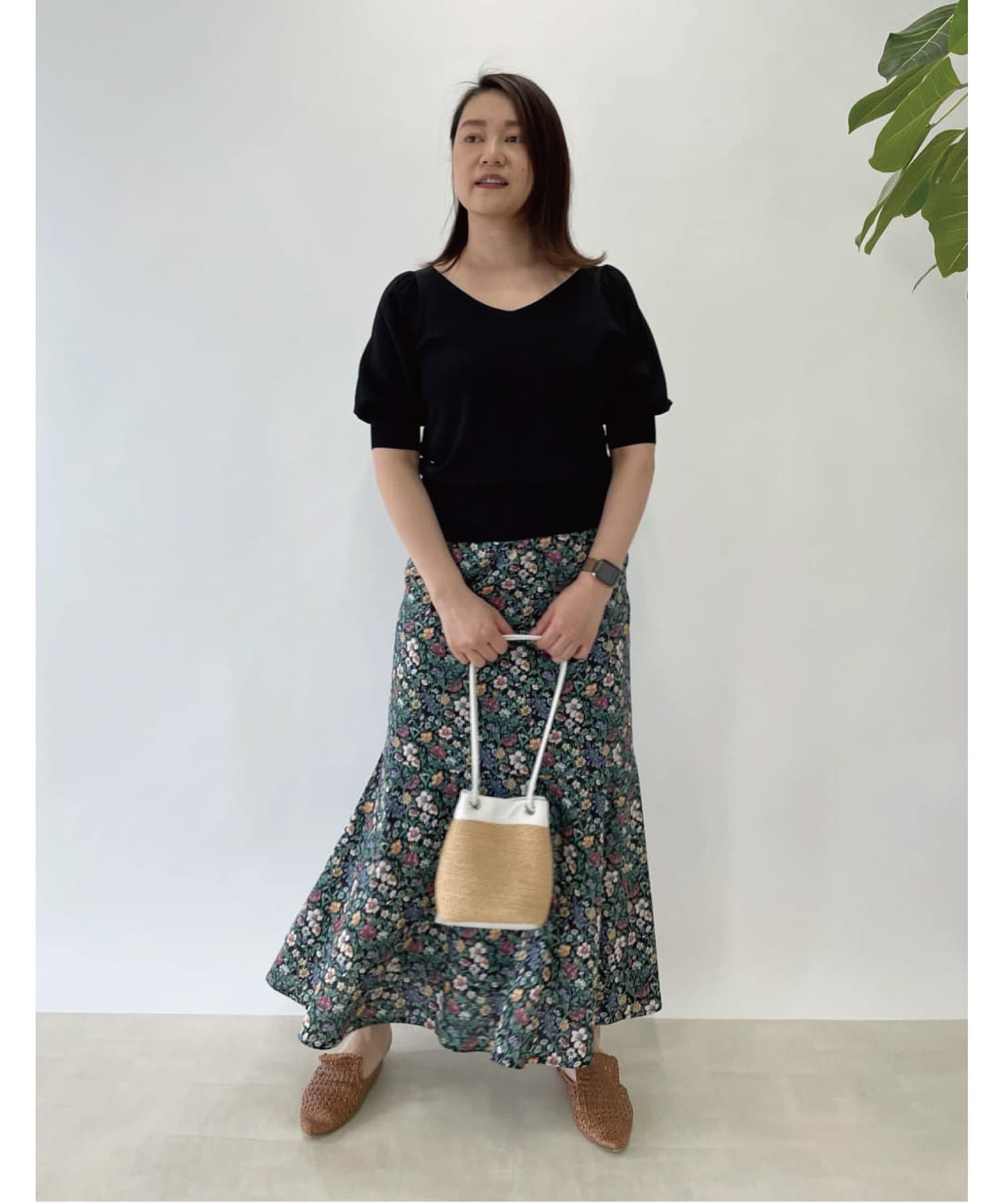 膝下切り替えのフレアシルエットになっているので、腰回りはすっきりとメリハリがあり、女性らしいラインを作り出す仕上がり。