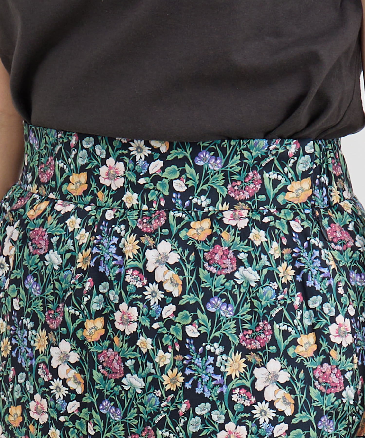 イギリスのリバティ社のプリント生地をたっぷり使用した贅沢な一枚です。