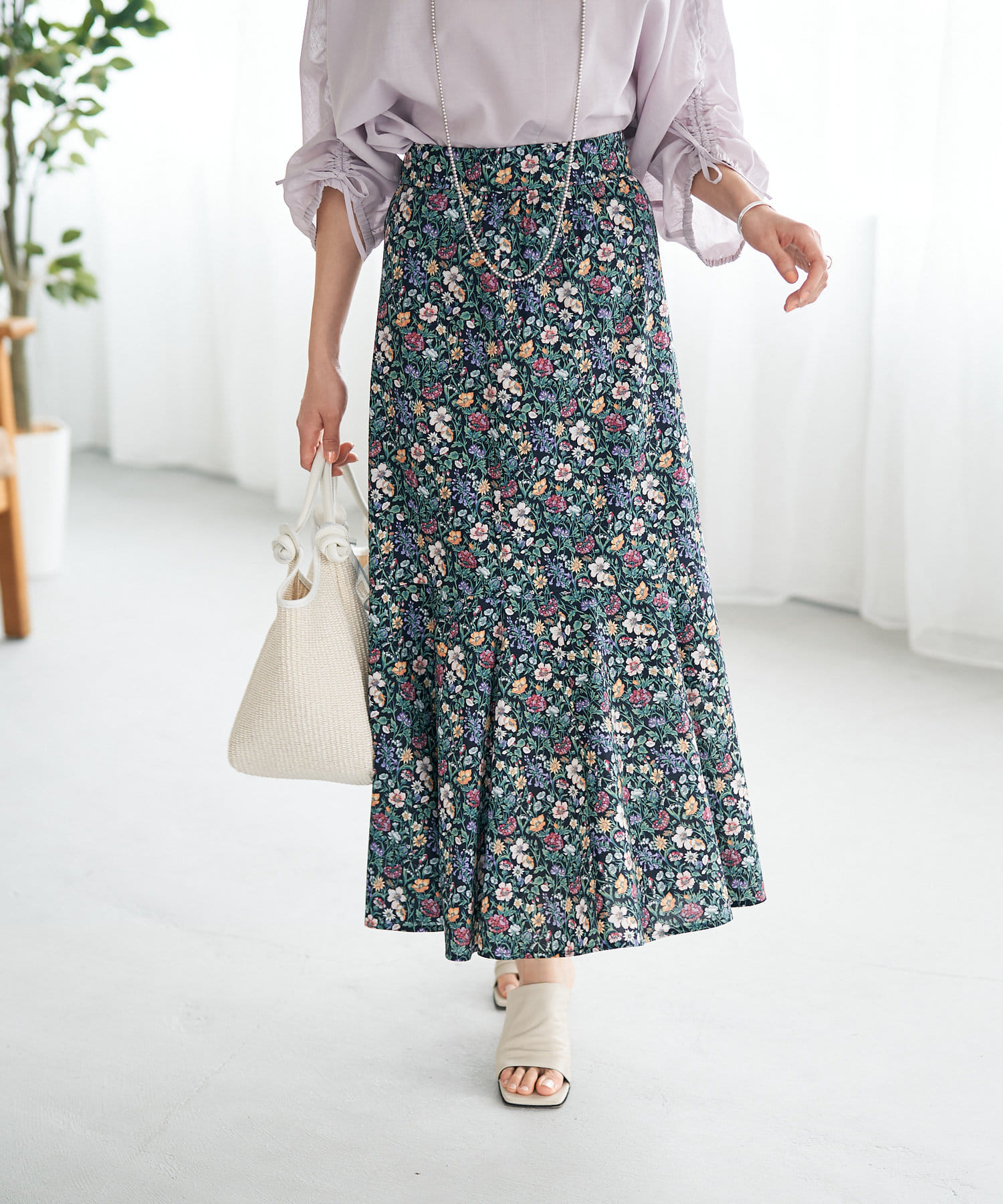【セットアップ可・手洗い可】リバティプリントマキシマーメイドスカート