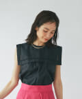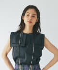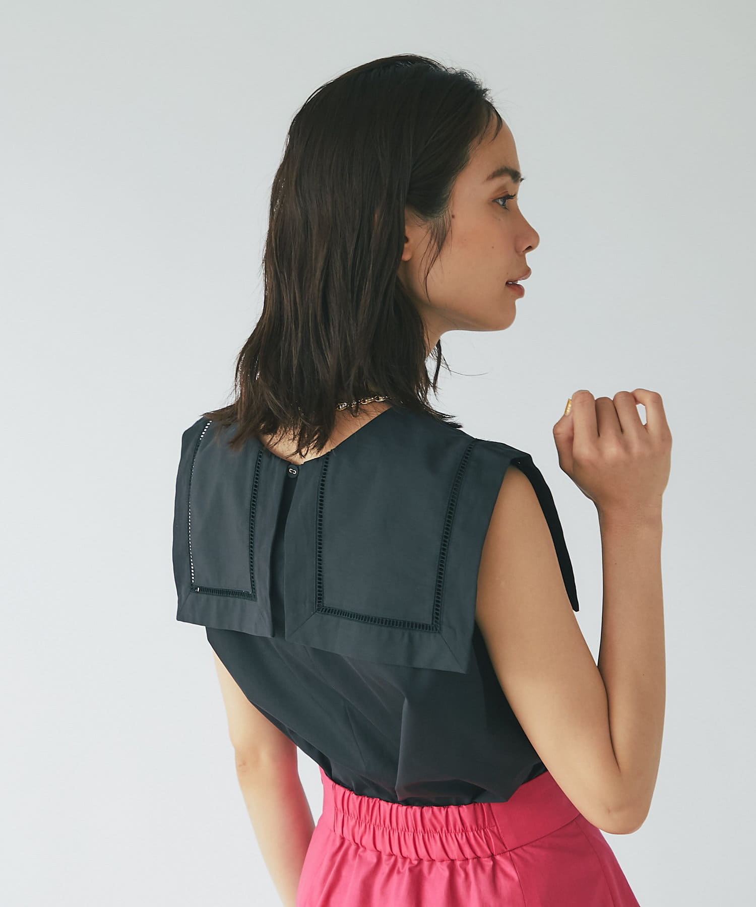 #ビッグカラー #ノースリーブ #ブラック #デザインブラウス