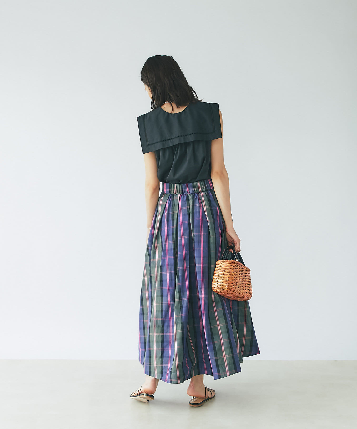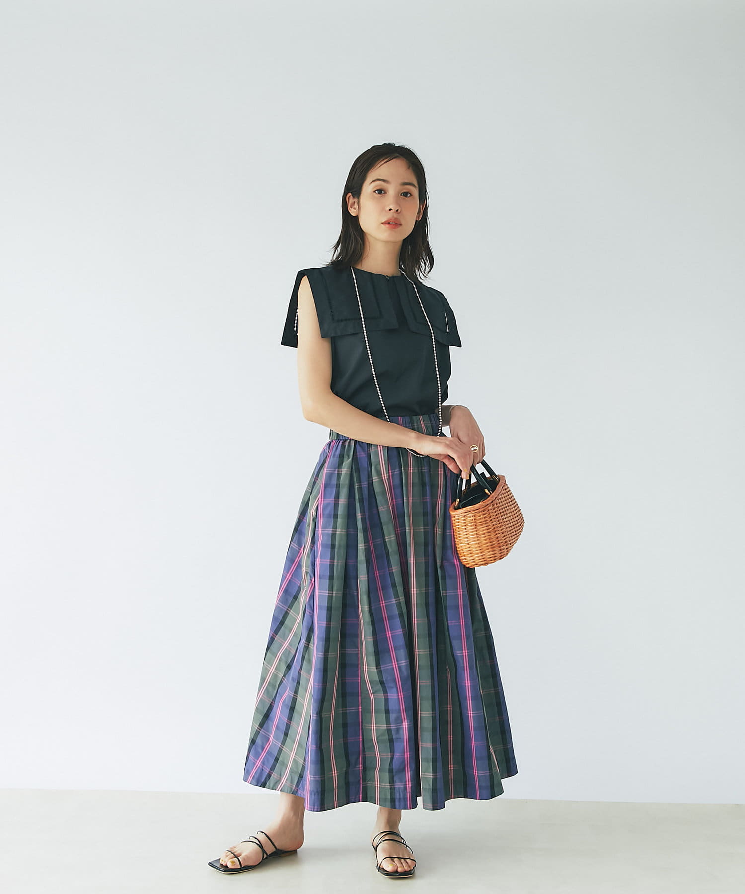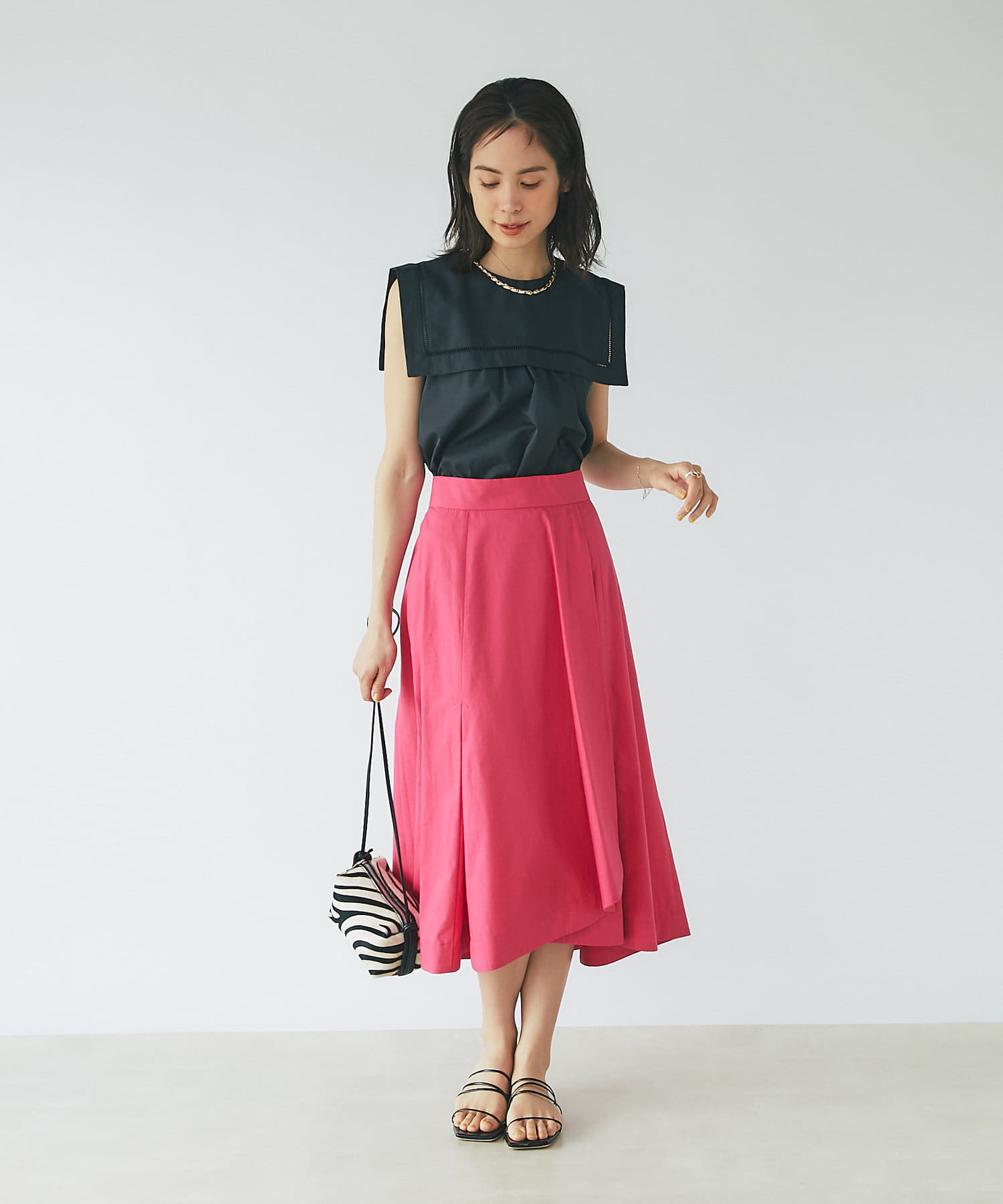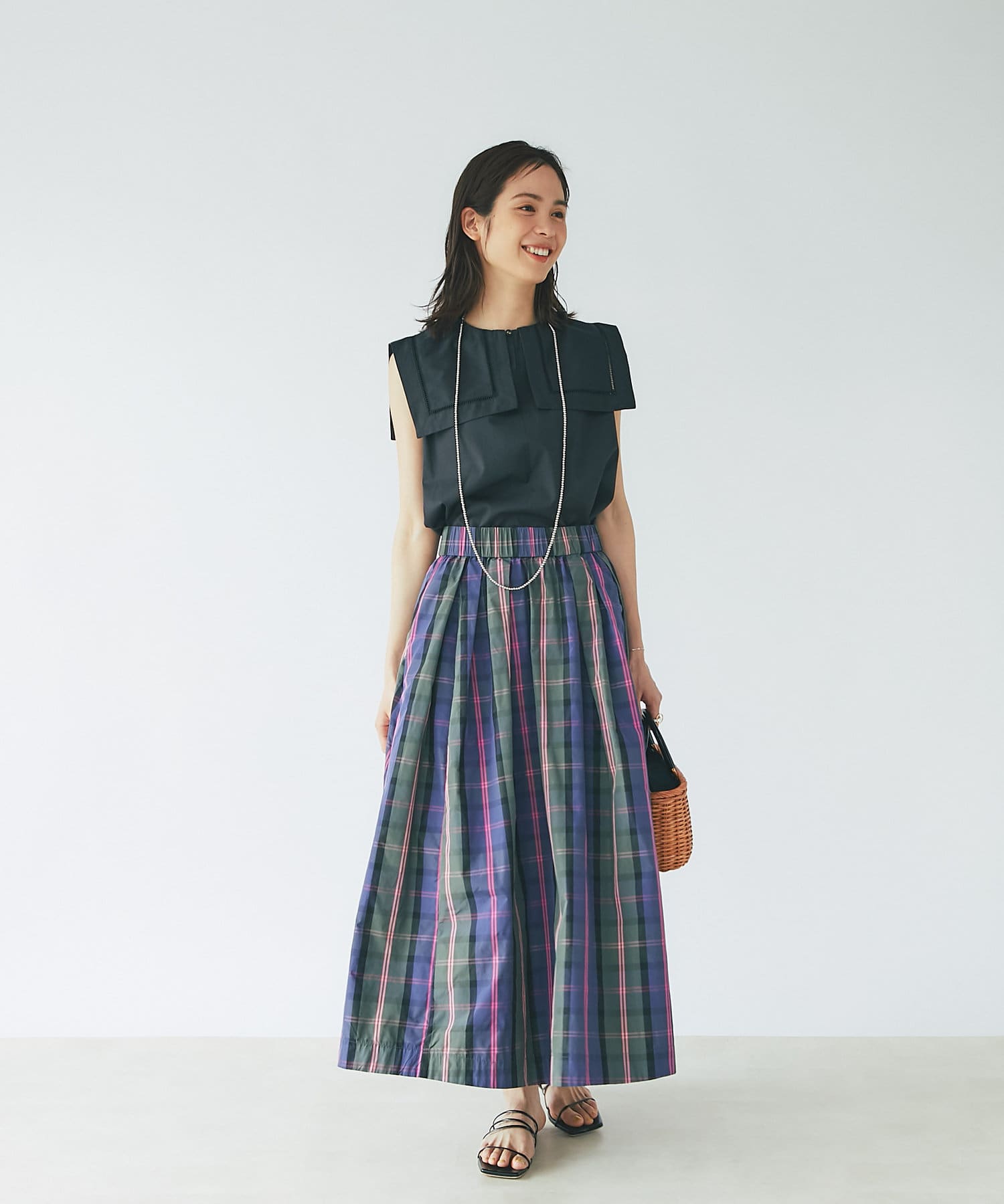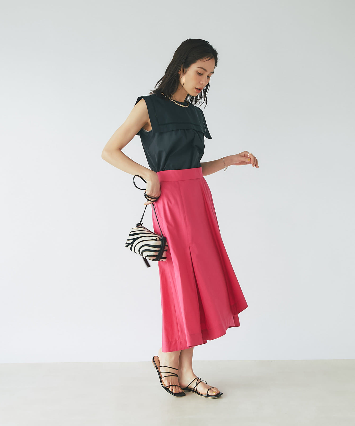 ブラウスは程よいハリのある素材できちんと感もあり甘すぎない雰囲気で着こなせます。