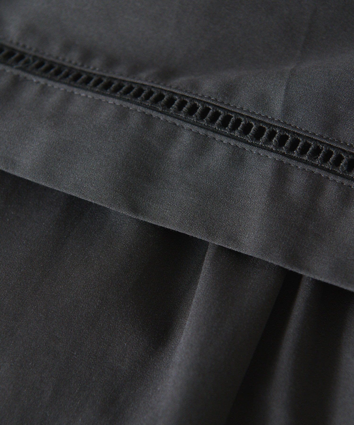 襟まわりには梯子レースをあしらっており、繊細なデザインが上品さを引き立てます。