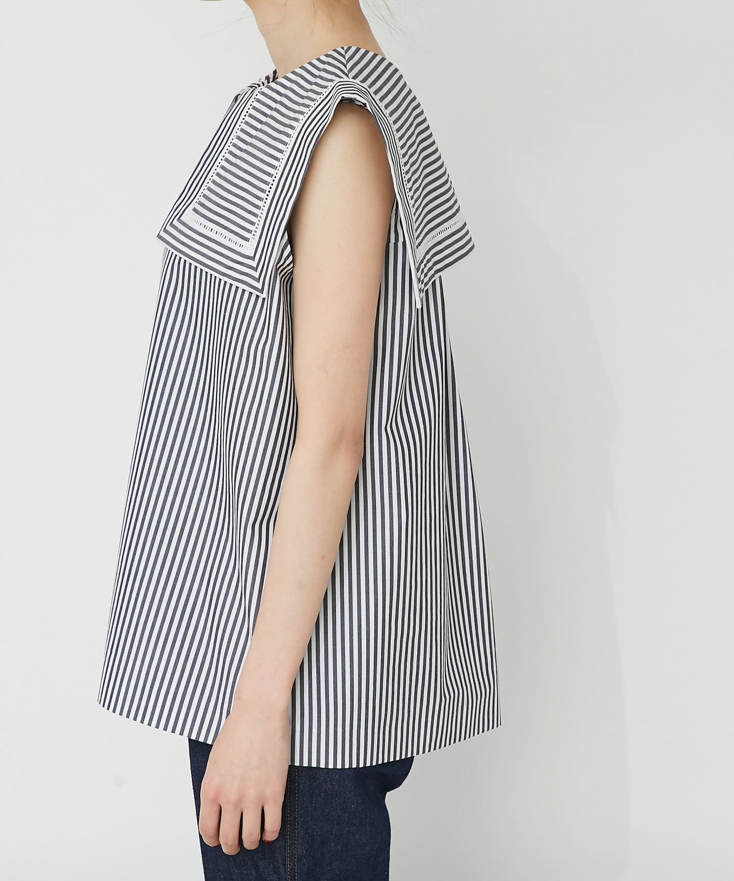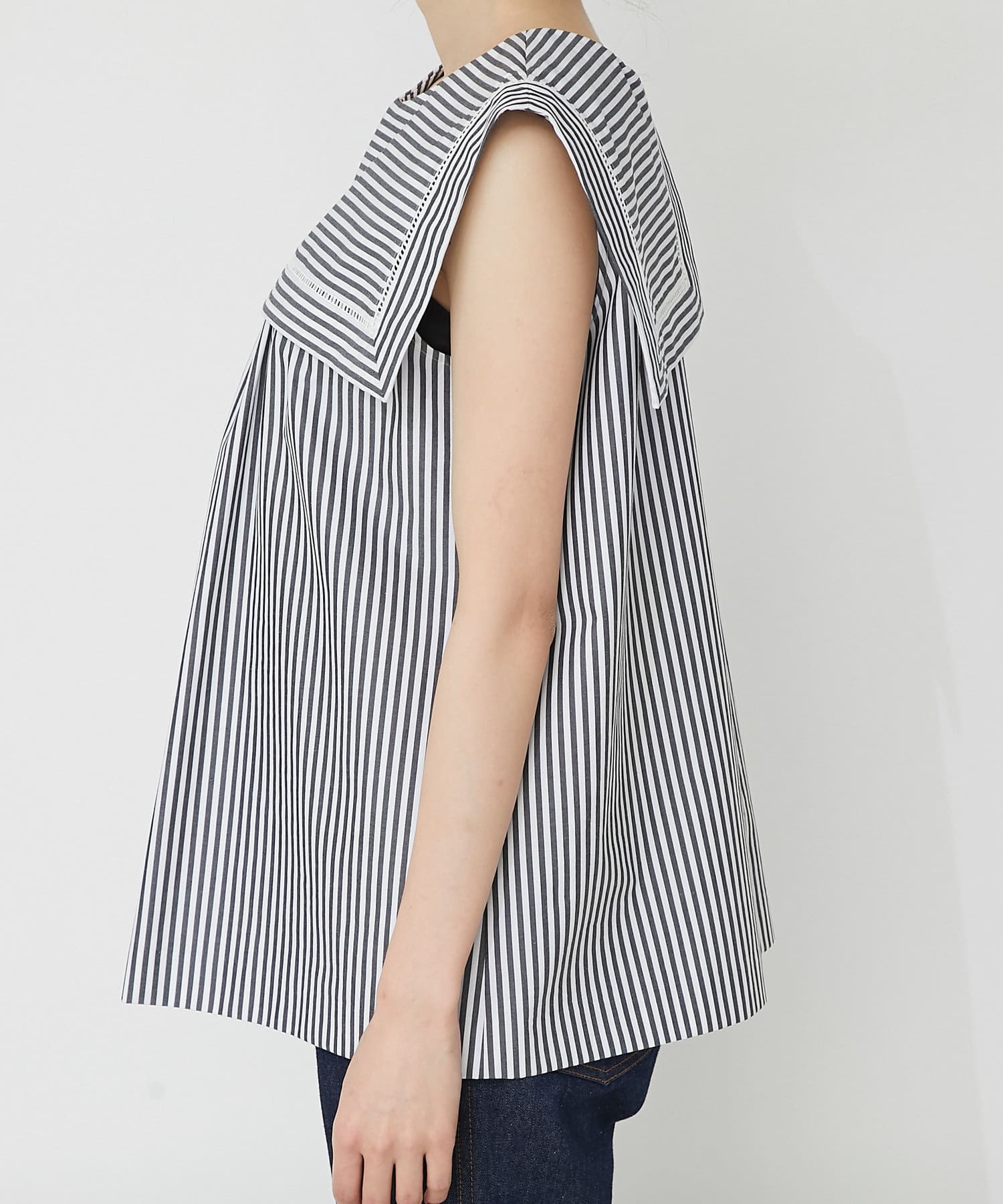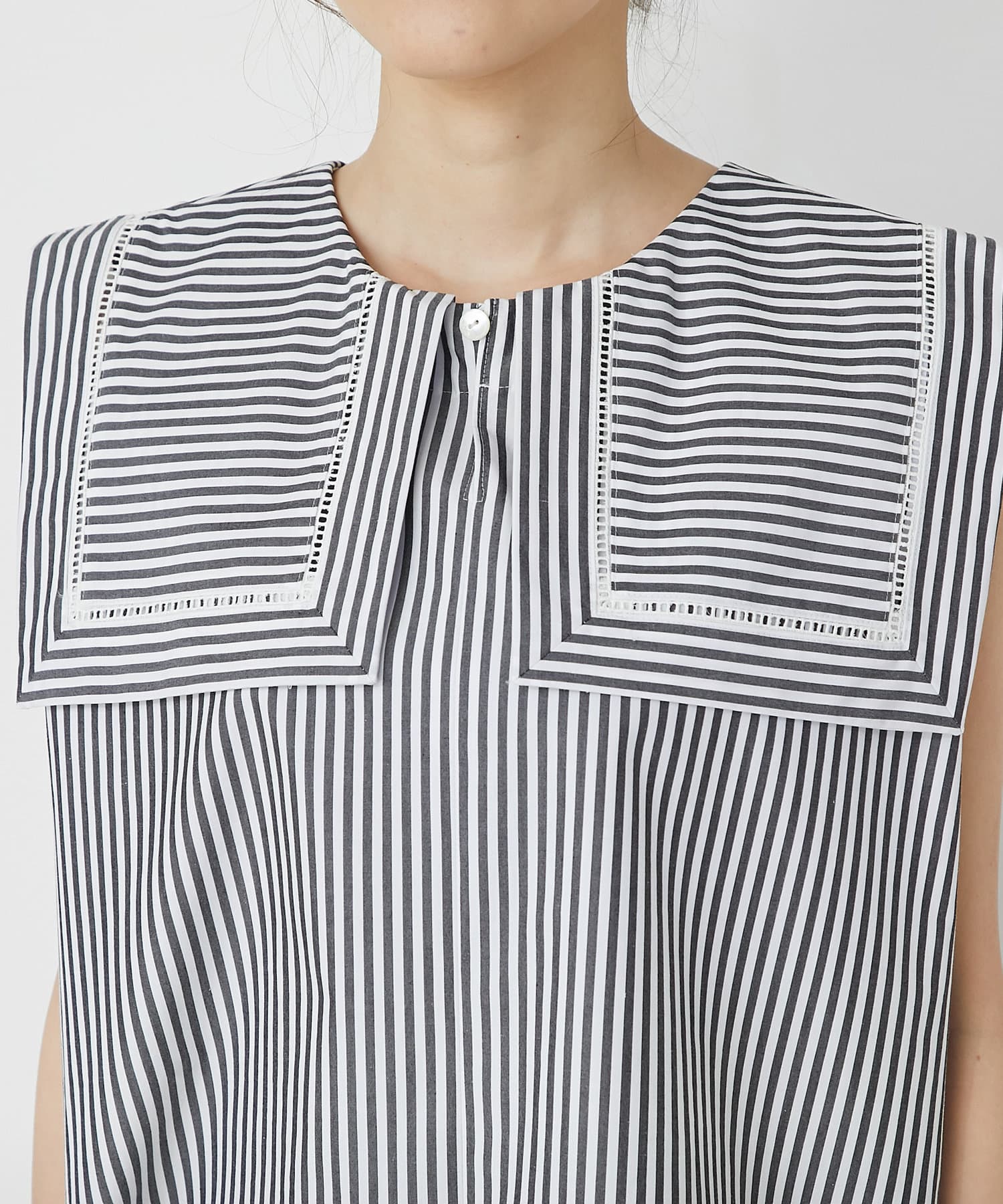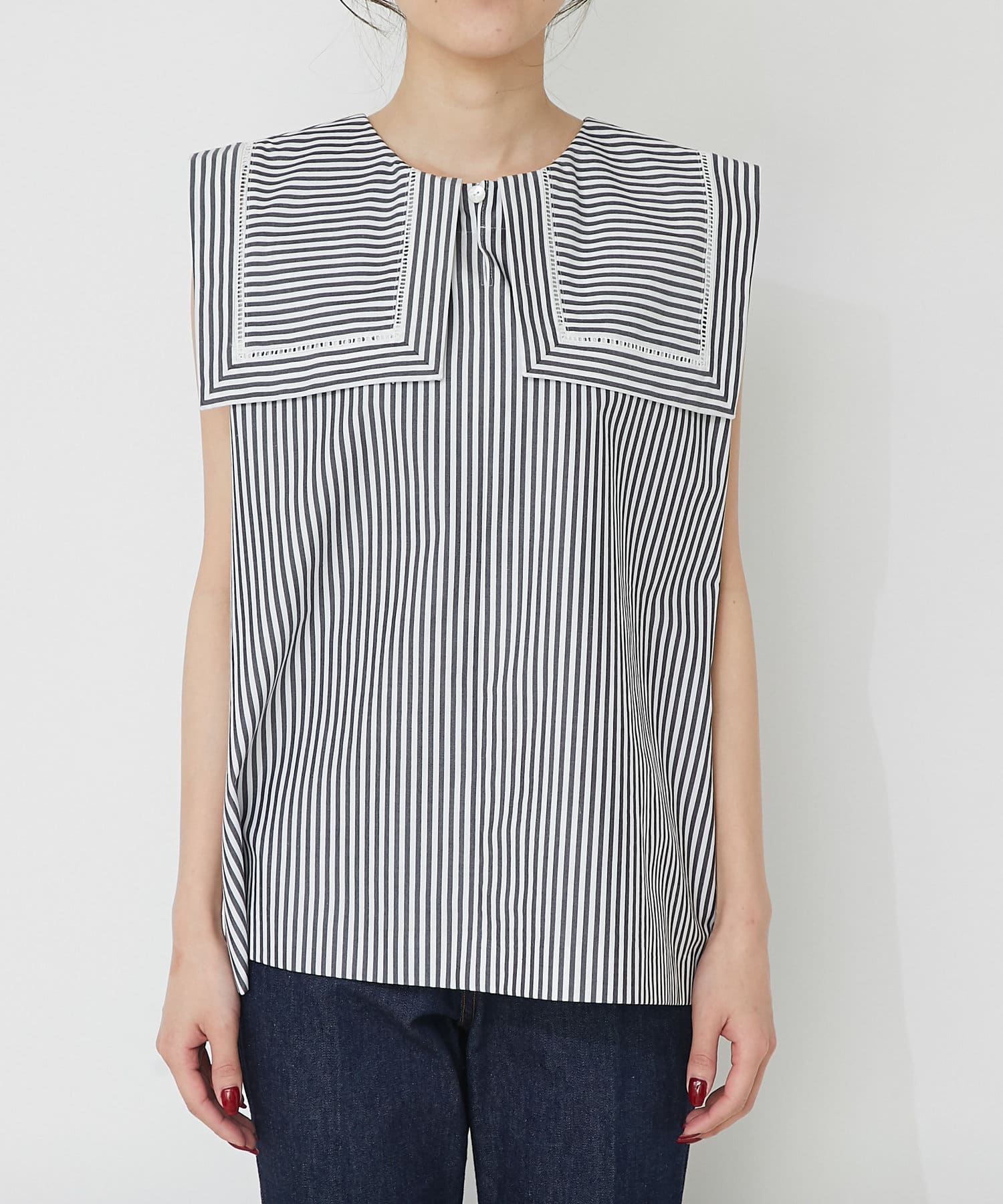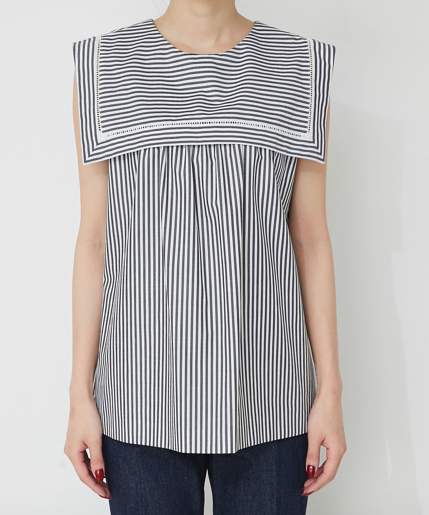 TOP > La boutique BonBon > レディース > トップス > シャツ/ブラウス(ボタン) > 【大人も取り入れやすいデザイン】ビッグカラーノースリブラウス