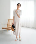 程よい光沢のサテン地を使用し、女性らしさが際立つデザインになっているので美人映えするアイテム。