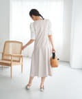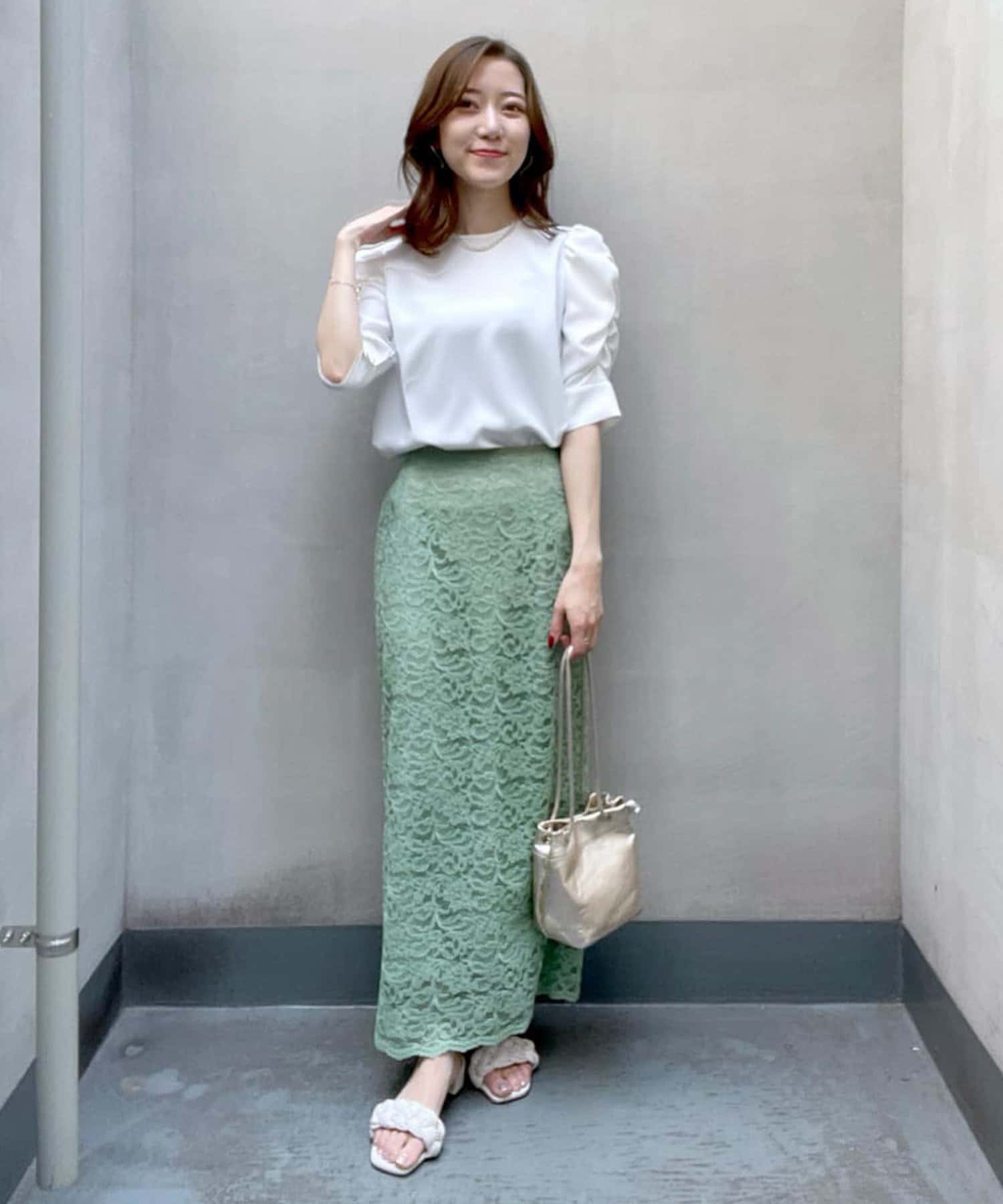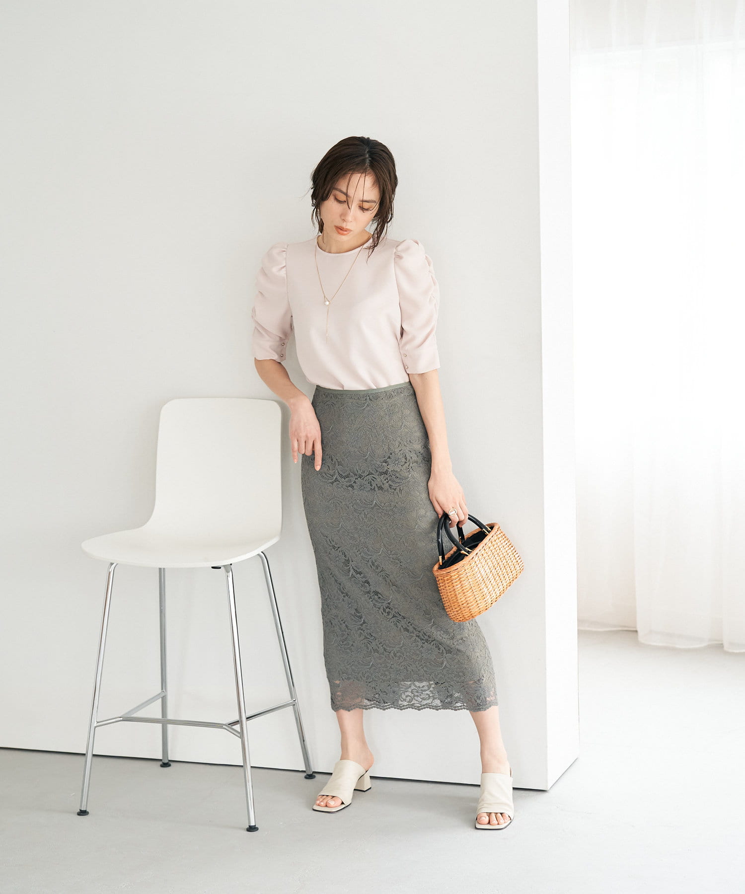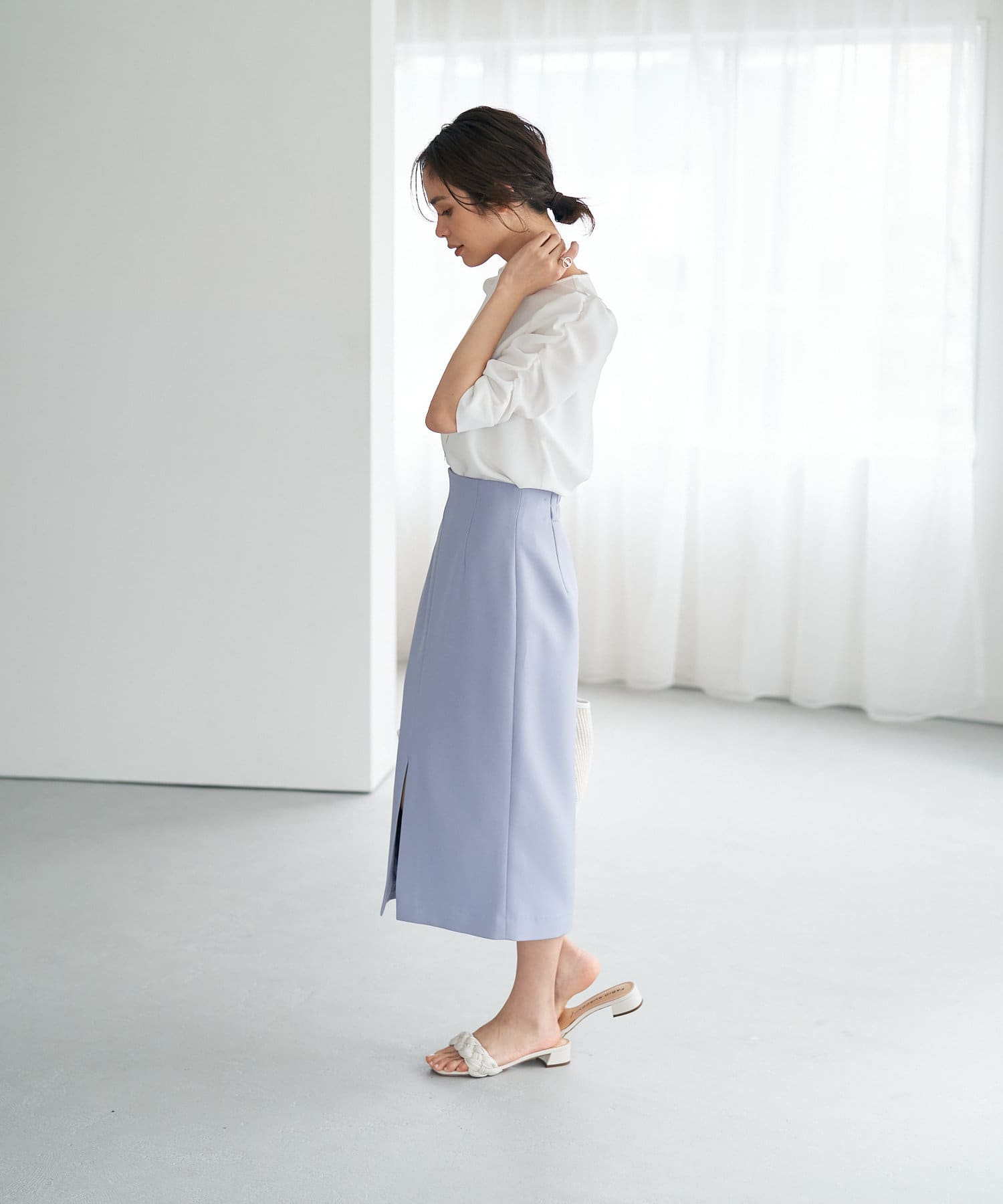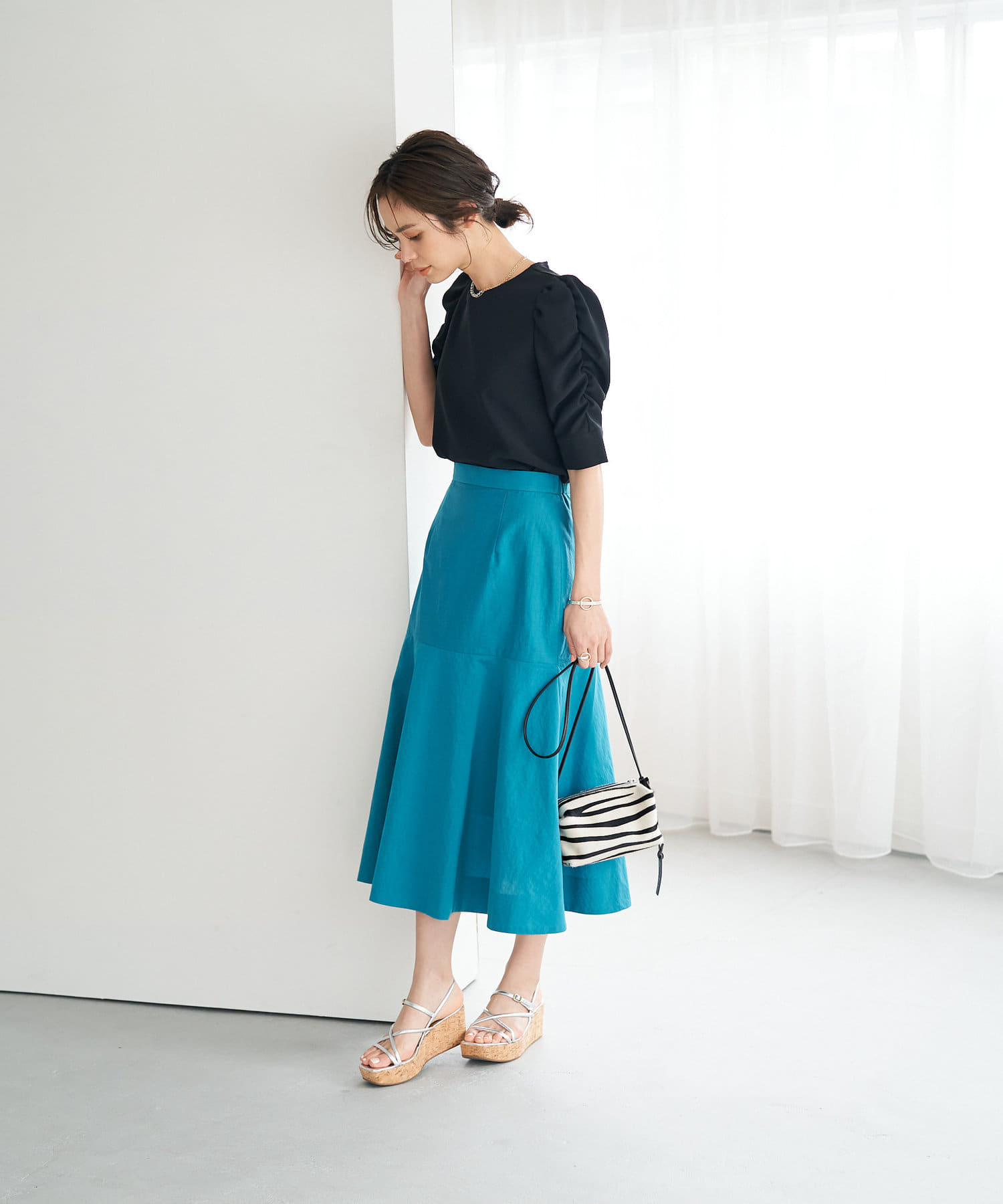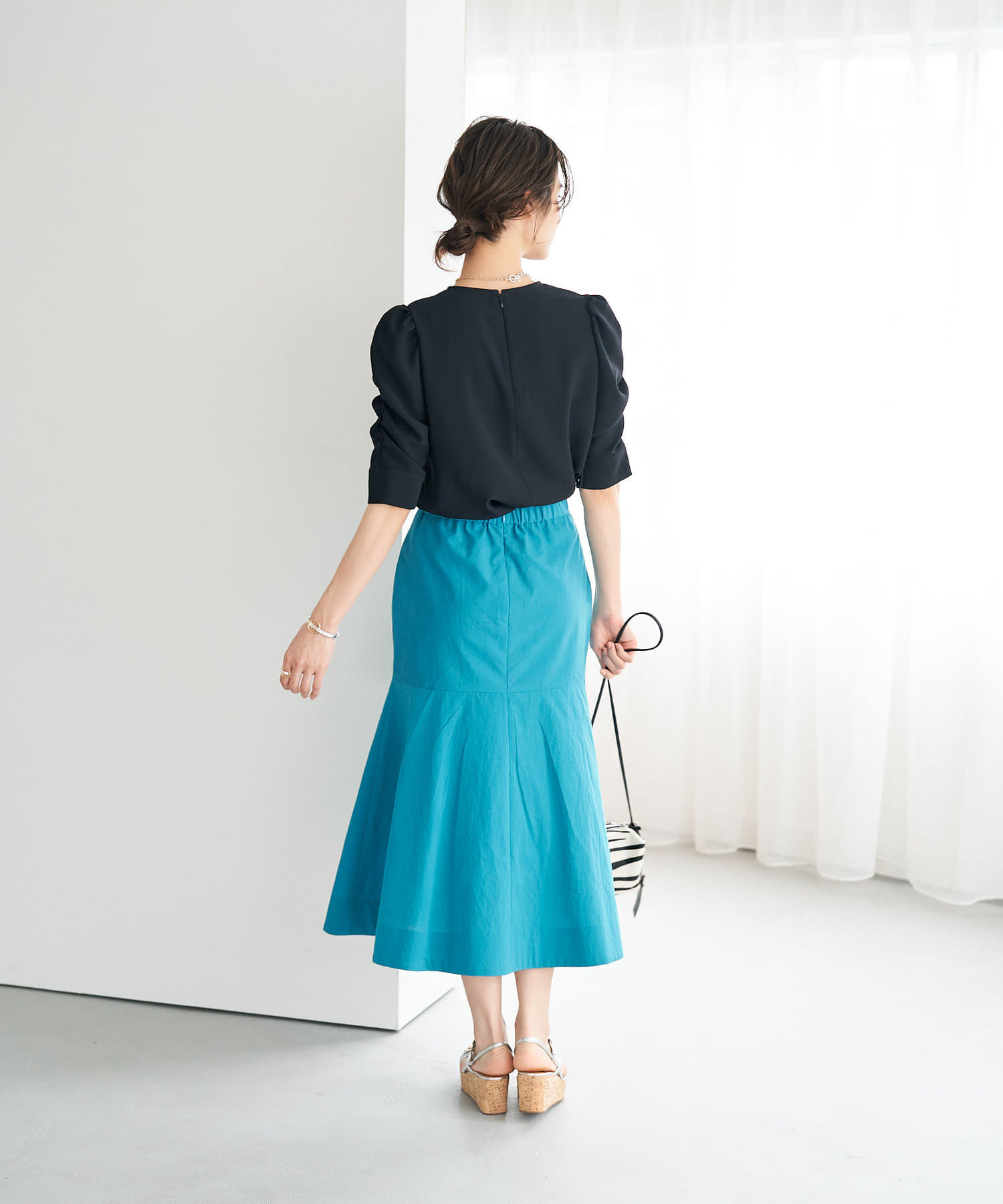 バックはコンシールファスナーになっているので、どんなボトムと合わせても品良く、フェミニンに決まります。