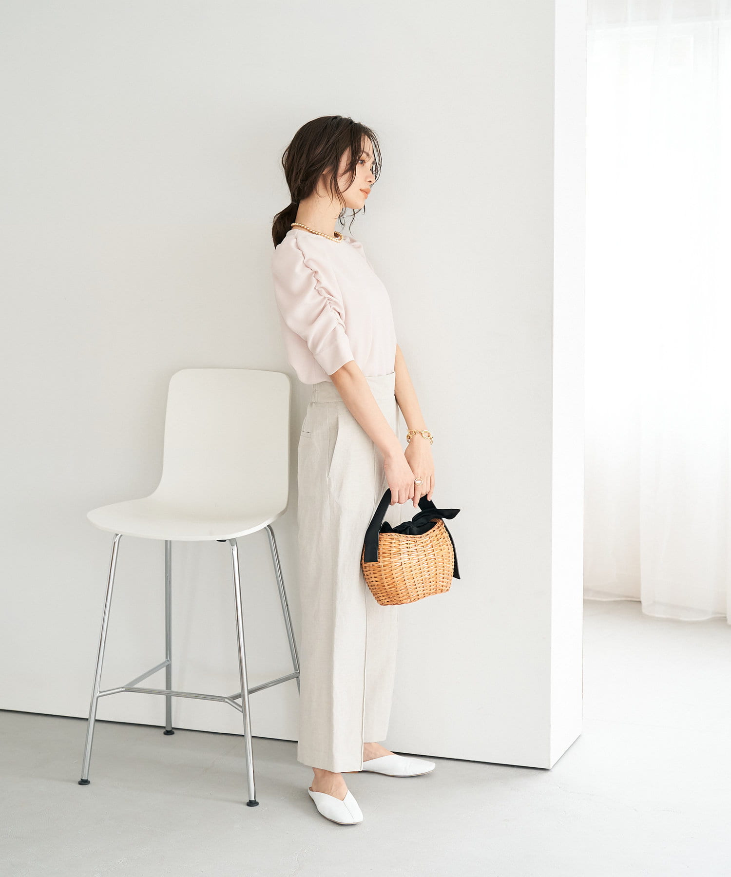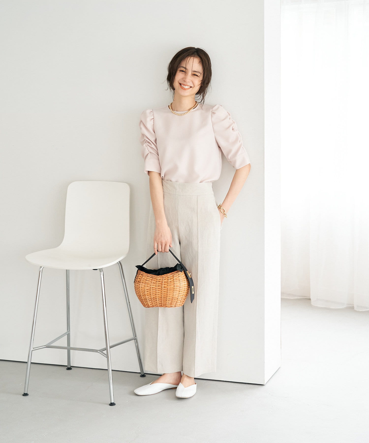 パンツなどマニッシュなアイテムに合わせると、マニッシュさとレディな雰囲気のバランスが絶妙でおすすめです。