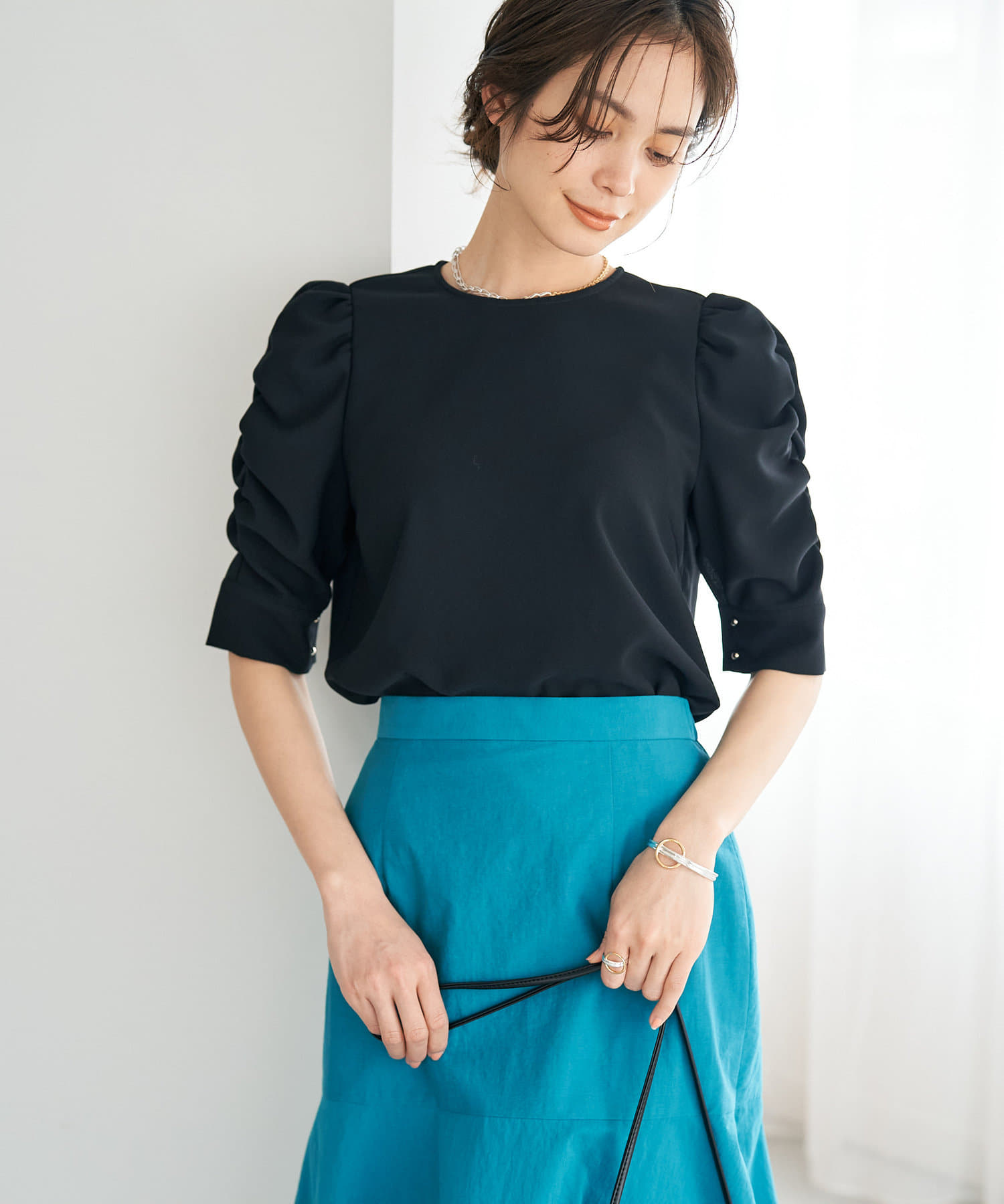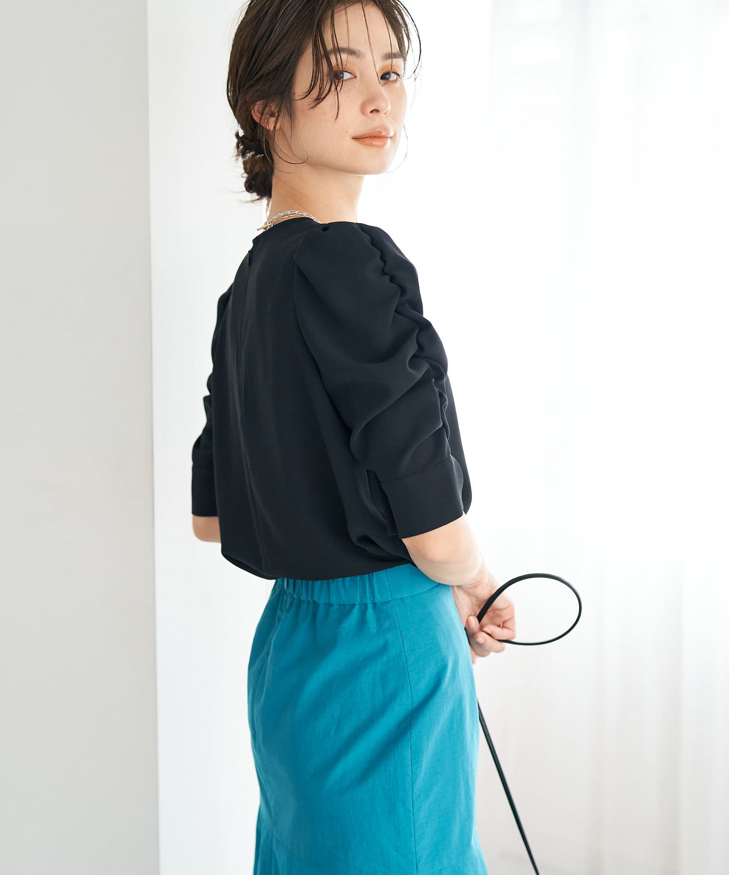 【品の良さが引き立つ】バックサテンパワショルブラウス