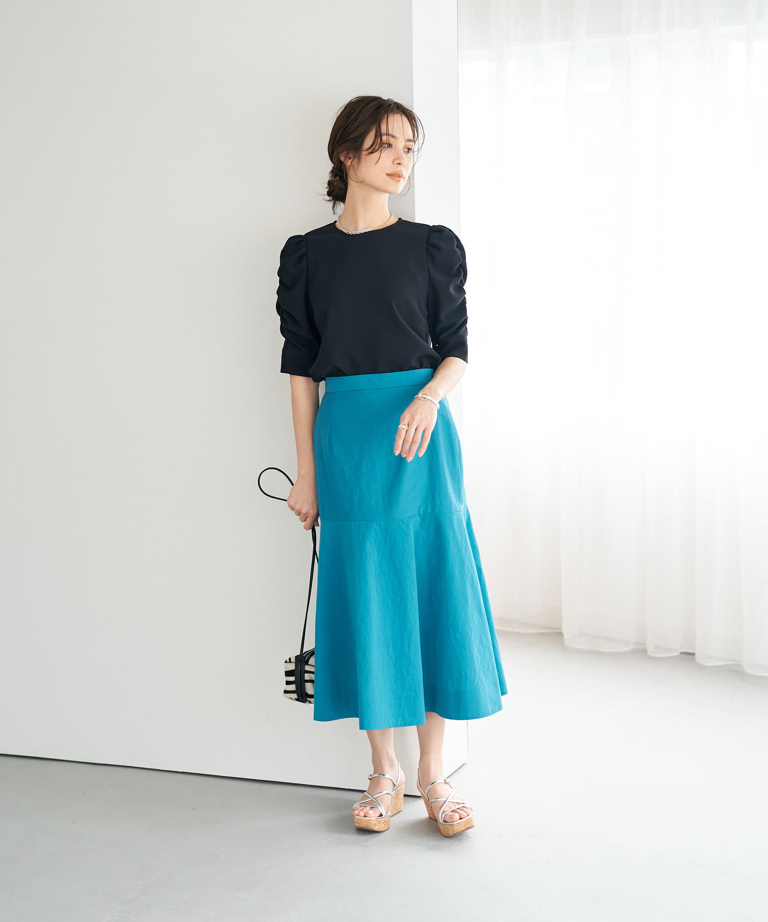 シワになりにくい素材なので、お手入れも楽ちんだしウエストインもおすすめ♩