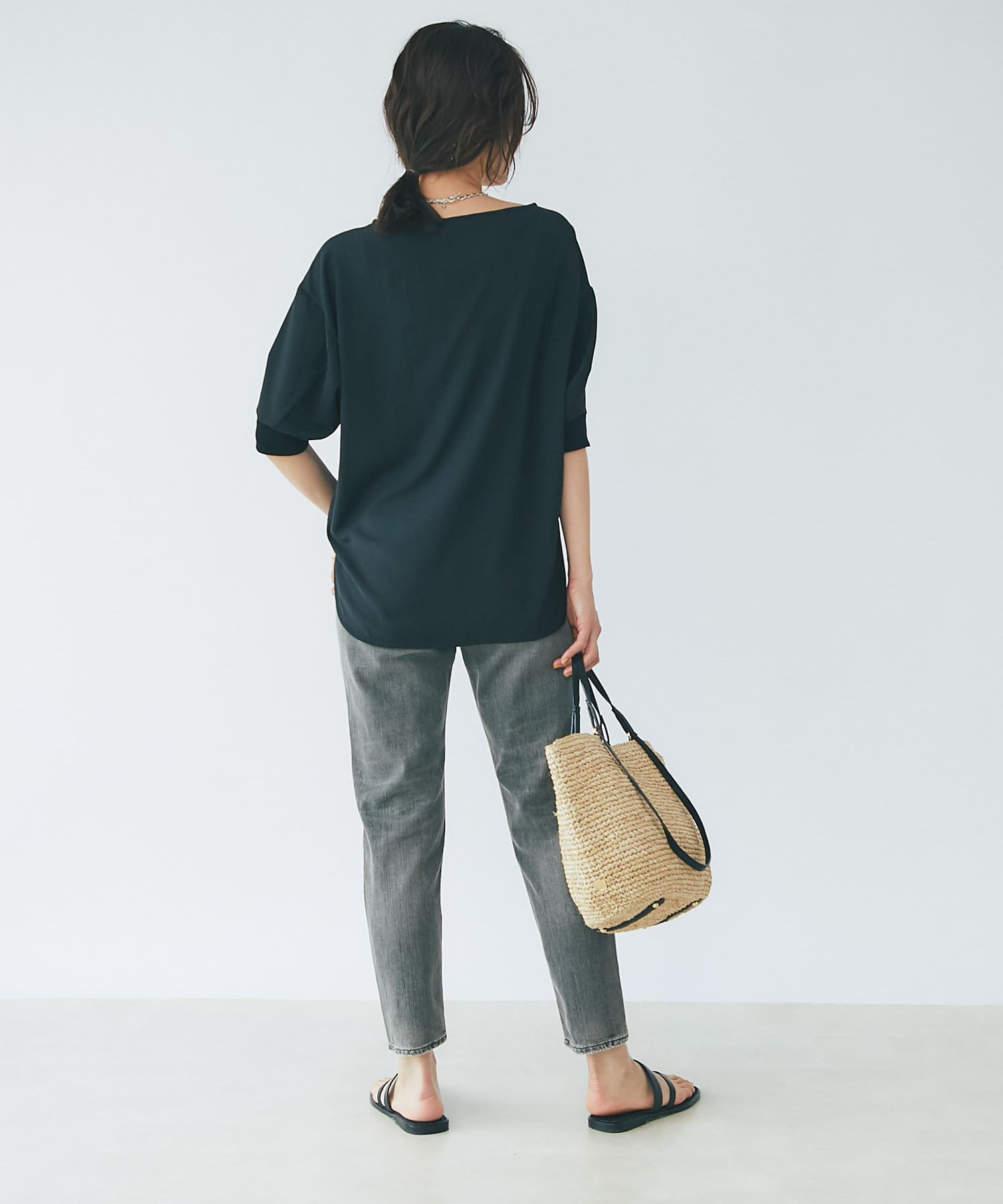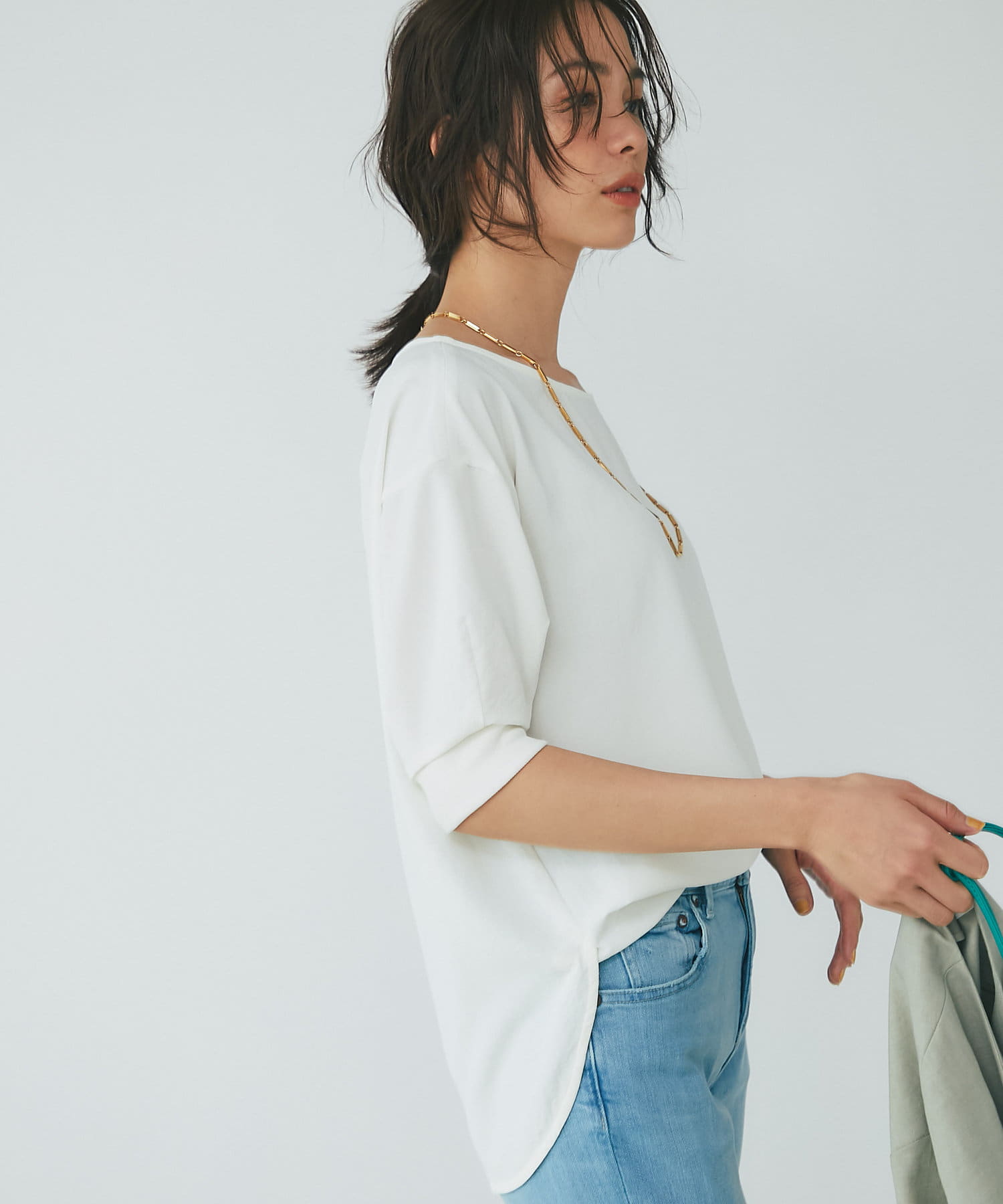 着丈に前後差を付け、後ろ丈は長めにしているので、腰回りをカバーしてくれるのも嬉しいポイント。