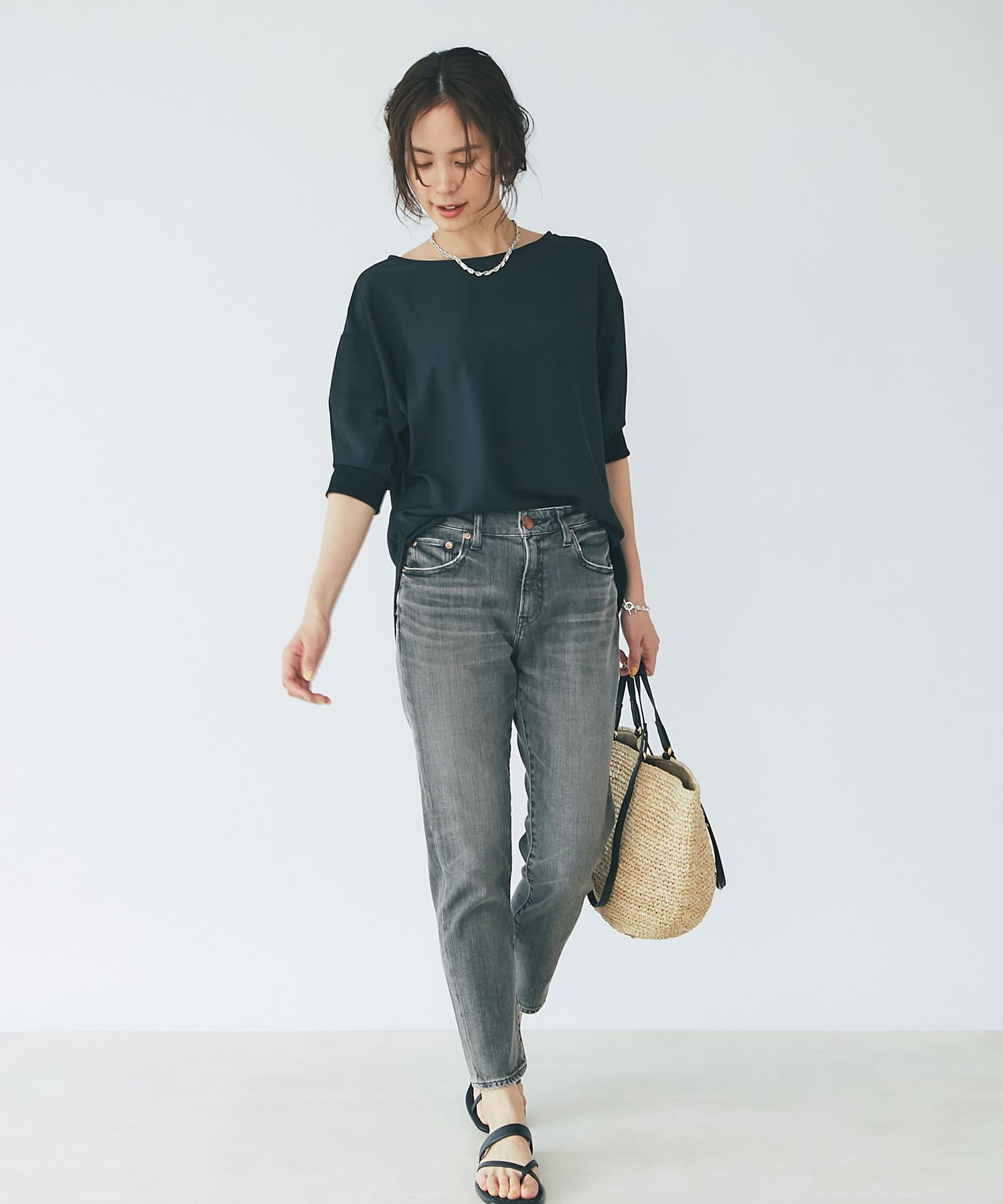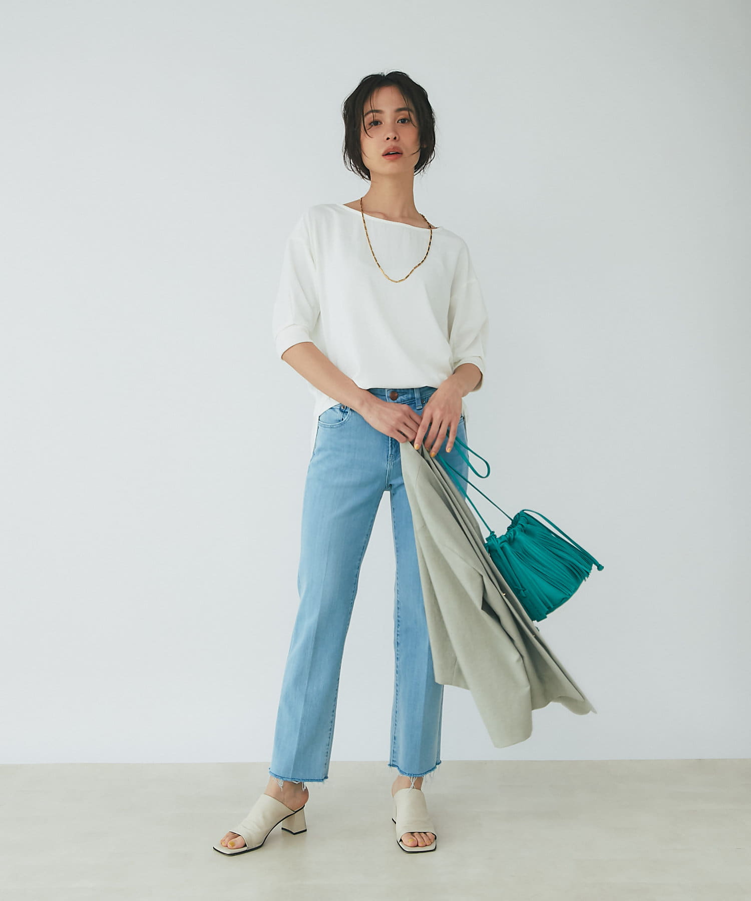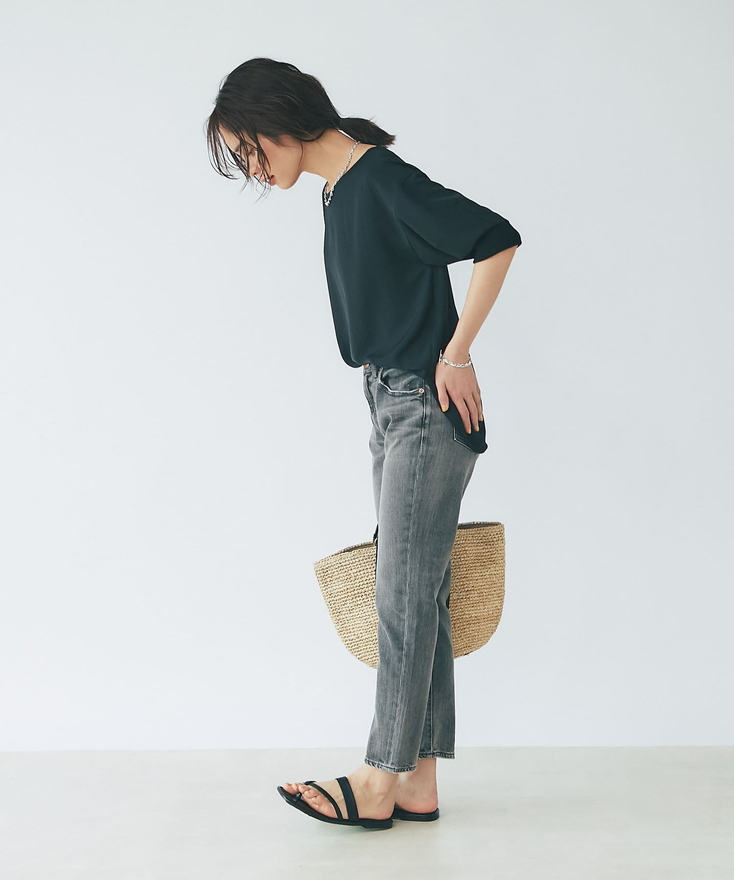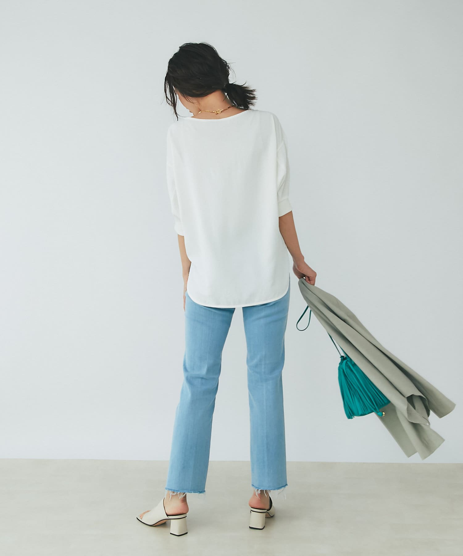 程よいゆとりが抜け感を出せるブラウスはカットソー感覚で着こなせる万能アイテム。