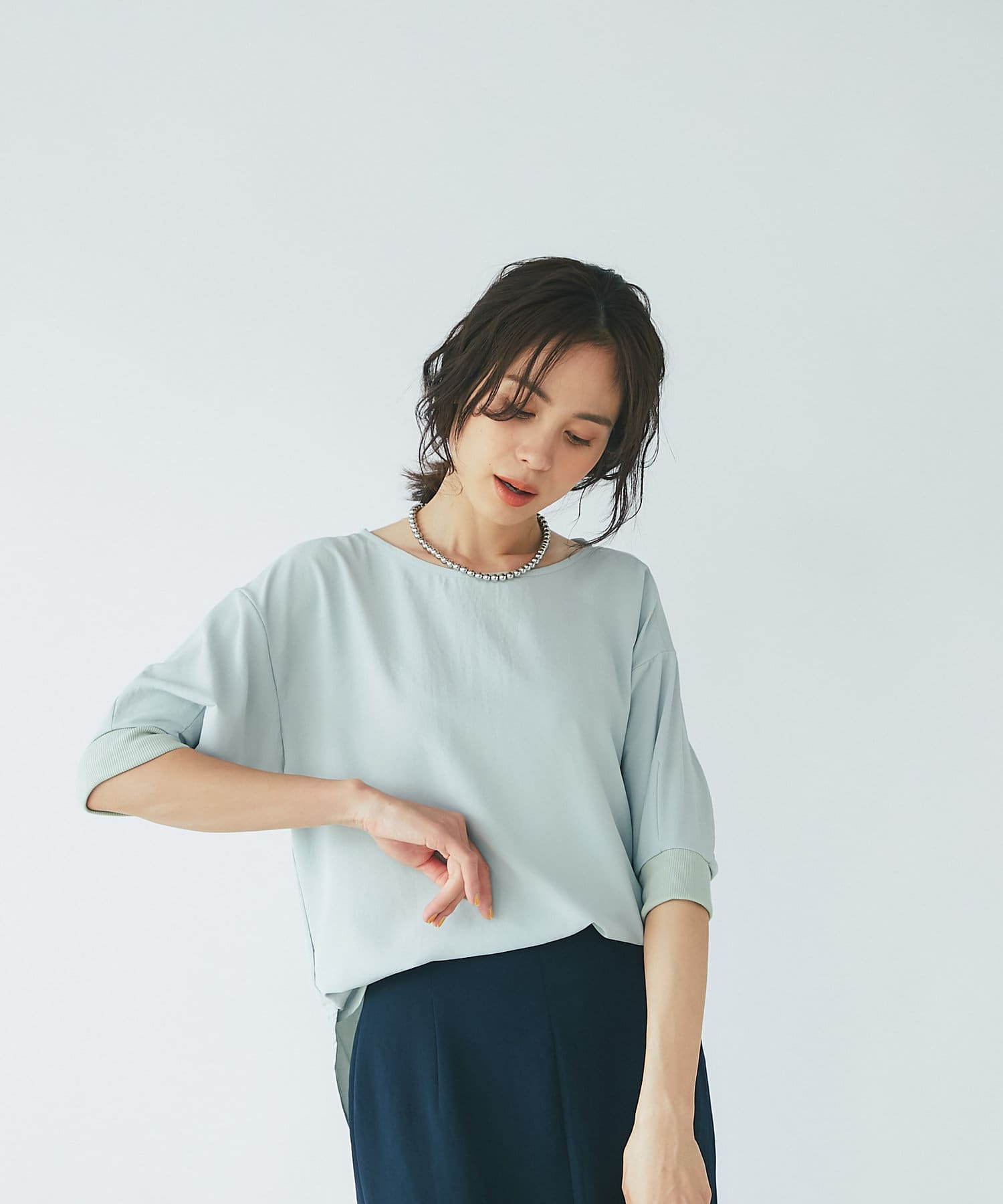 【着まわし力抜群】ツイルストレッチリブカフスブラウス