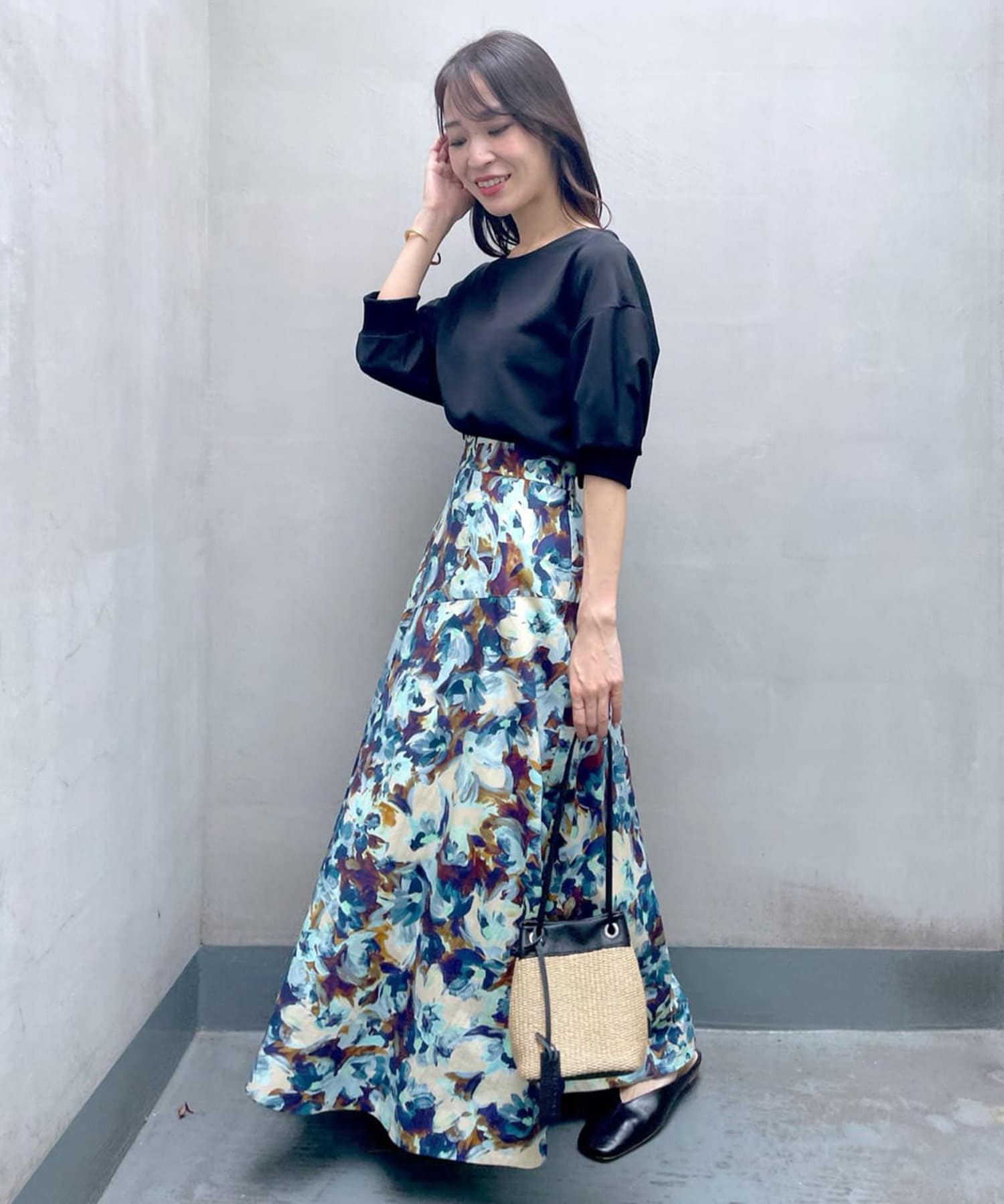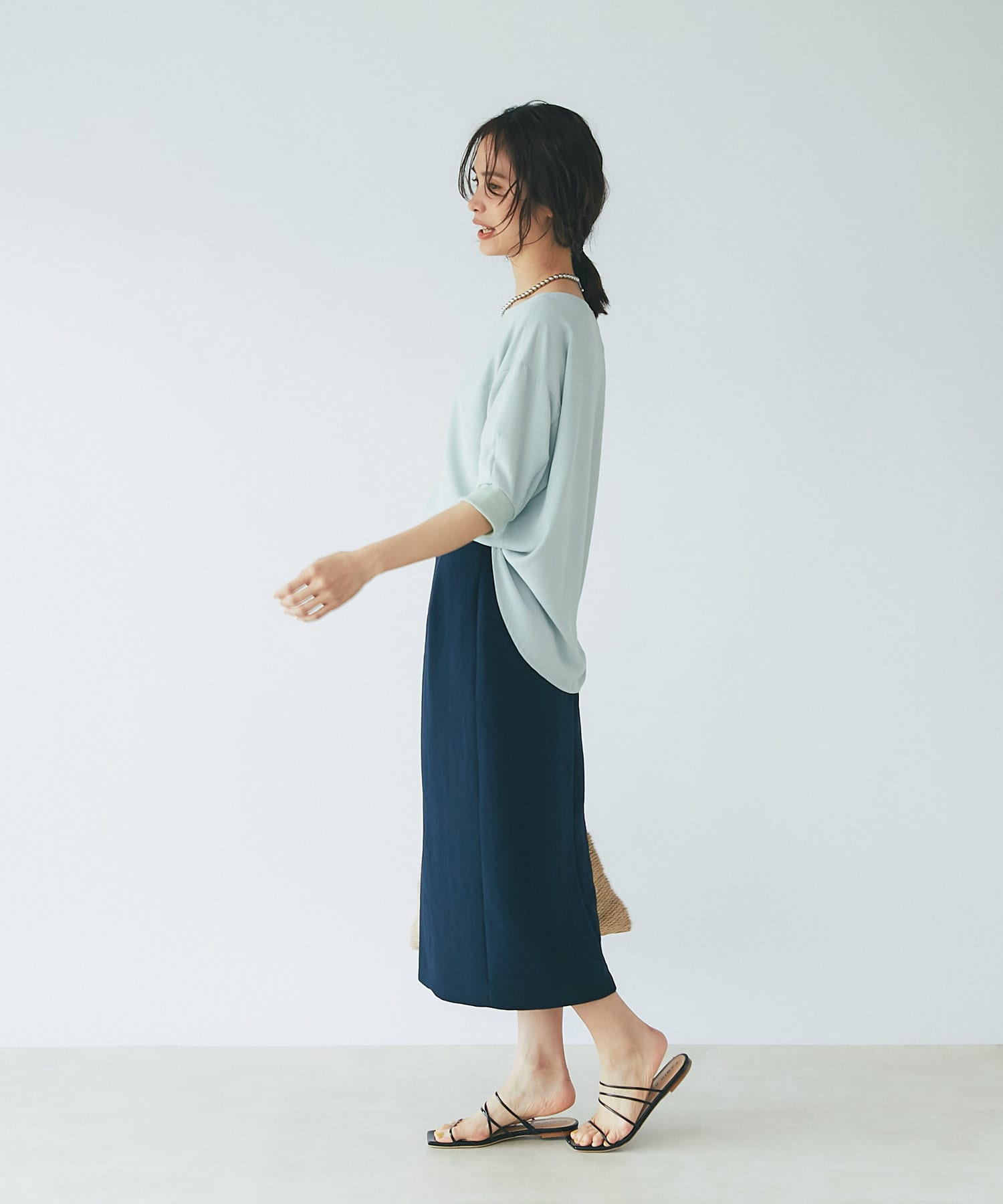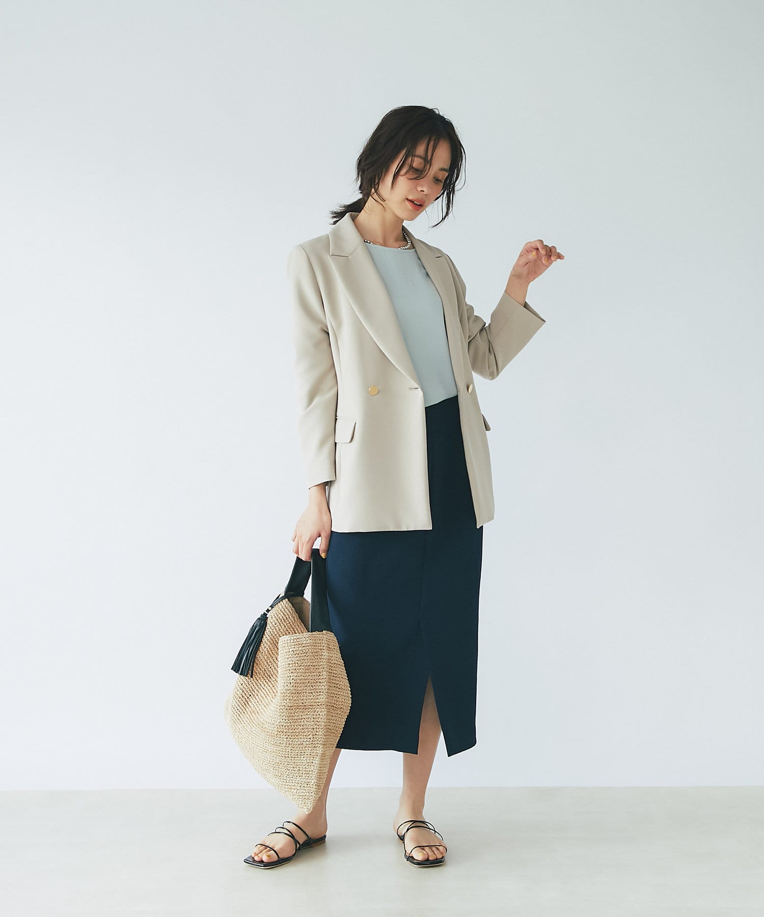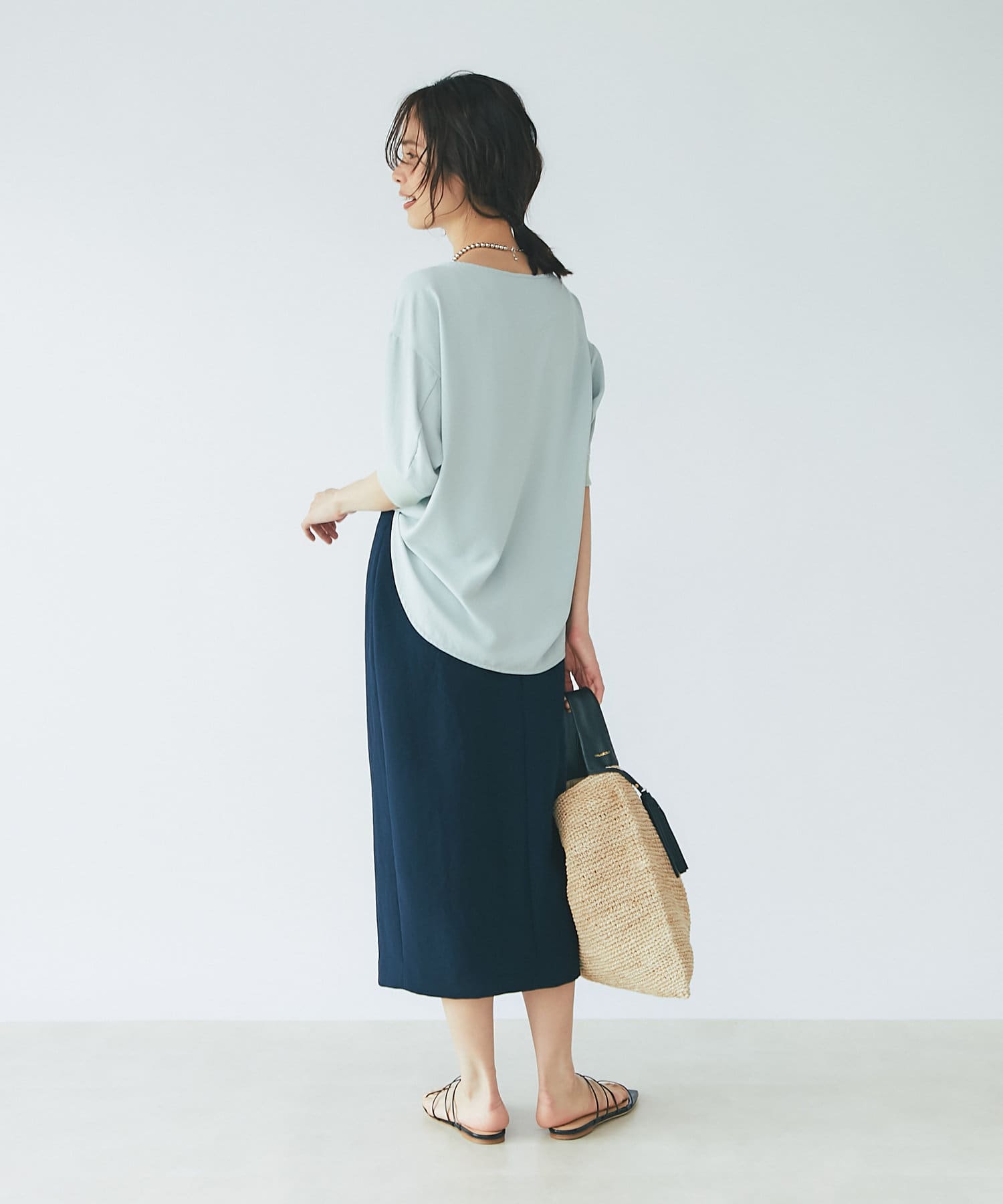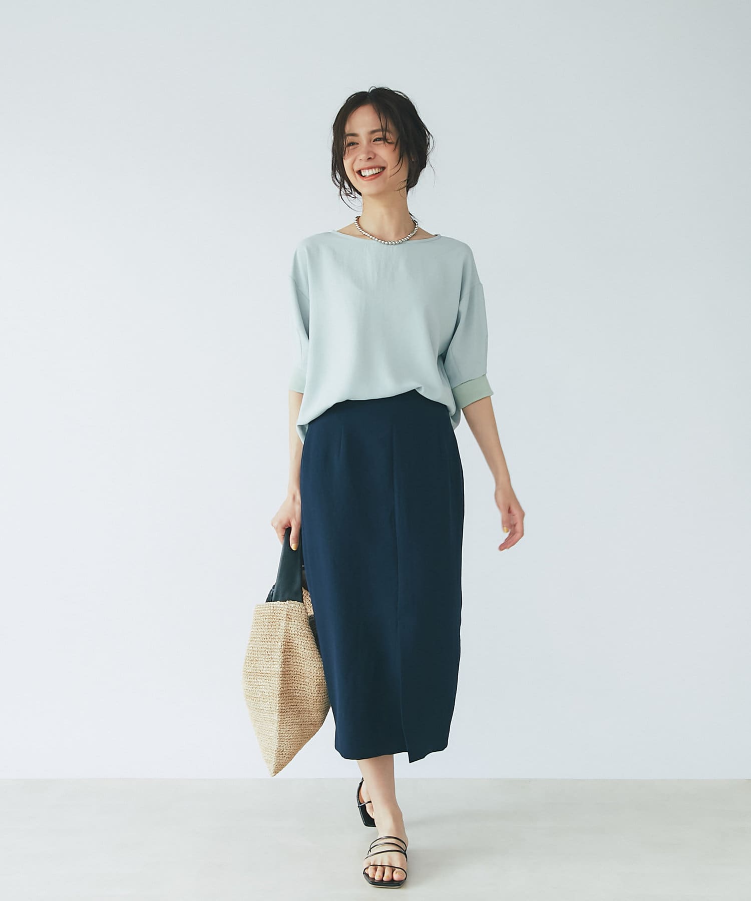 さらに、ブラウスもスカートも洗えてシワになりにくい、この季節大変ありがたい素材&生地なので、夏の通勤スタイルに1枚いかがでしょうか?