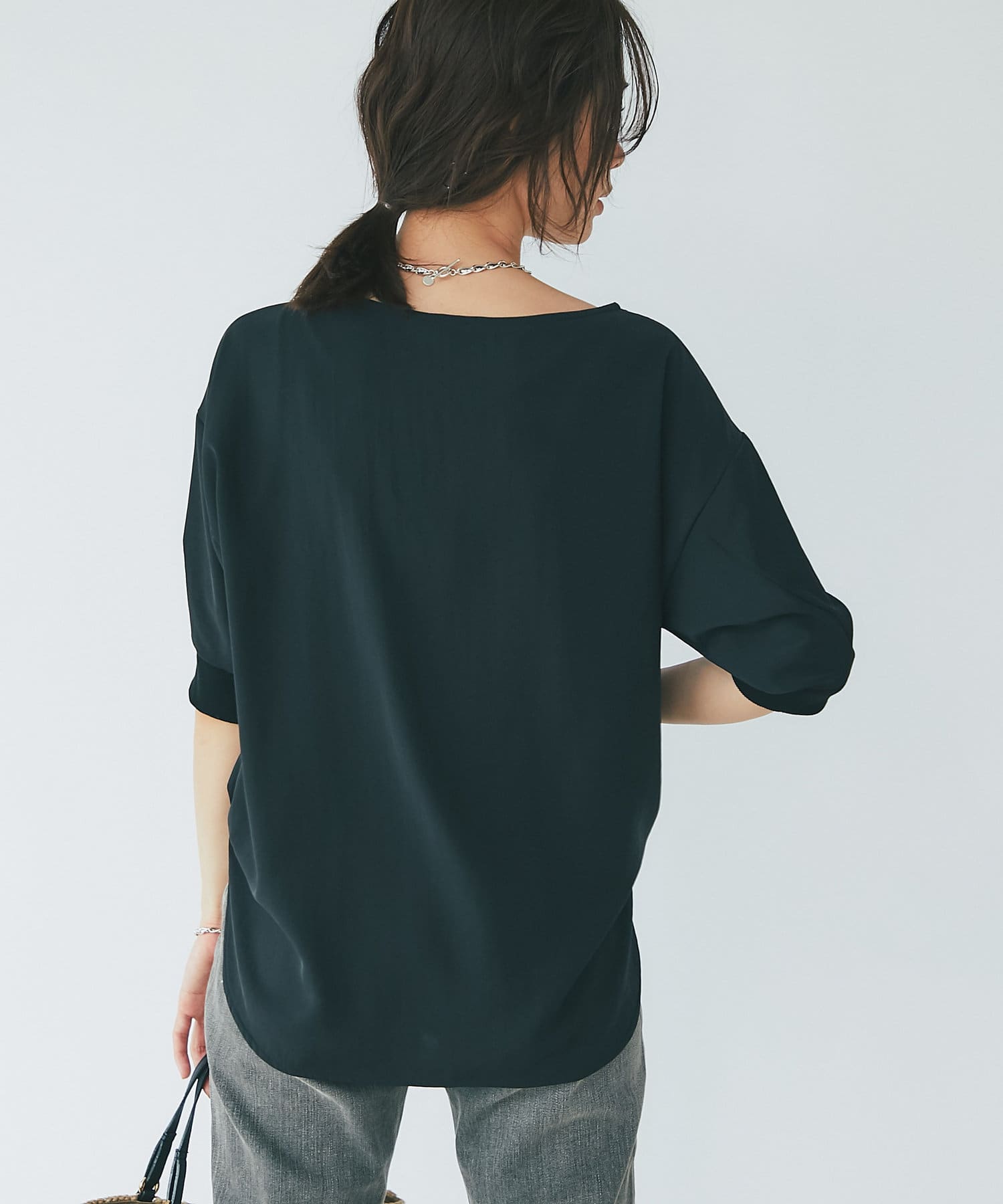 着まわし力抜群のツイルストレッチリブカフスブラウス