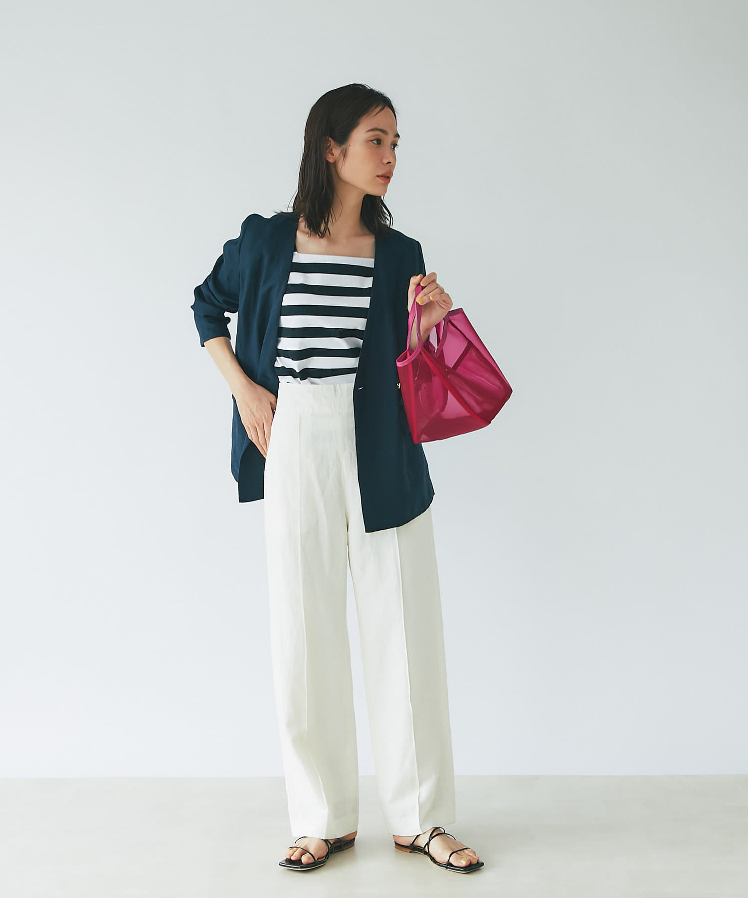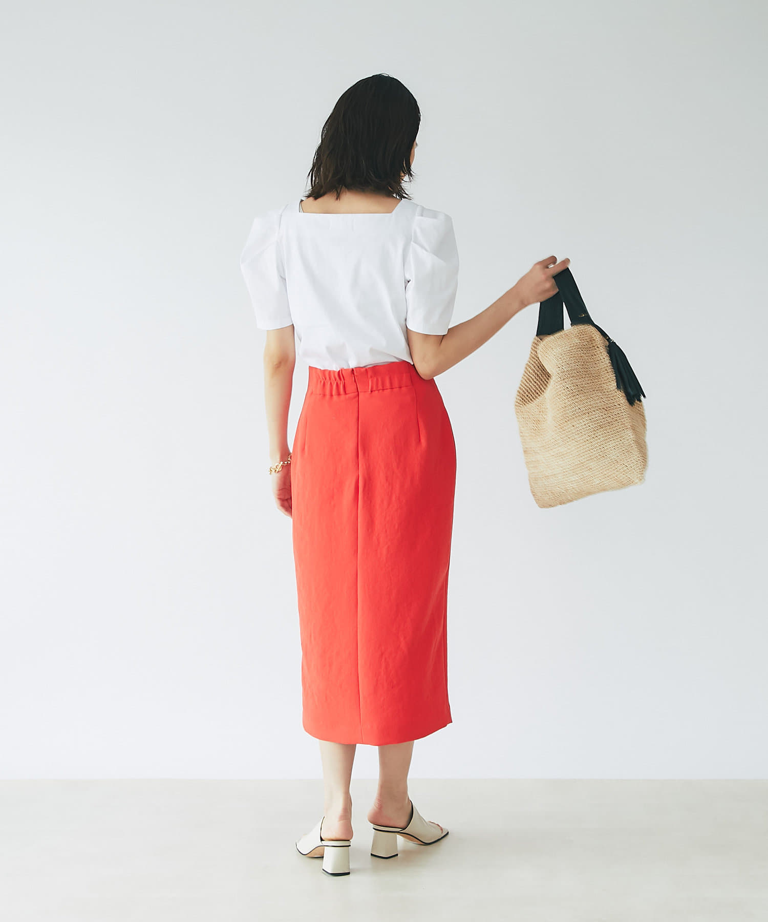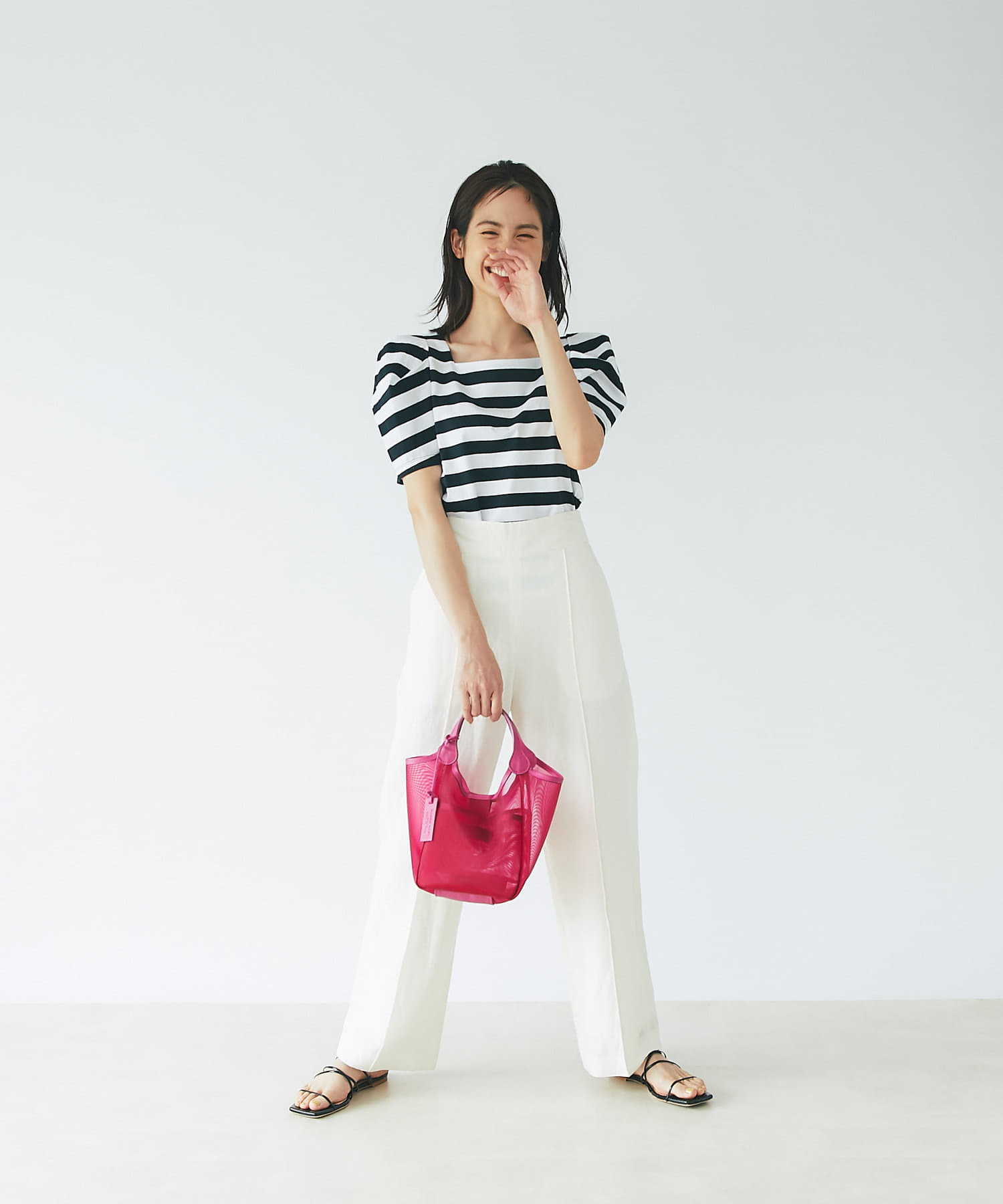身頃はコンパクトめなサイズ感ですが、身体のラインを拾い過ぎないので、暑い季節にも快適に過ごせるのが嬉しいレディなアイテムです。