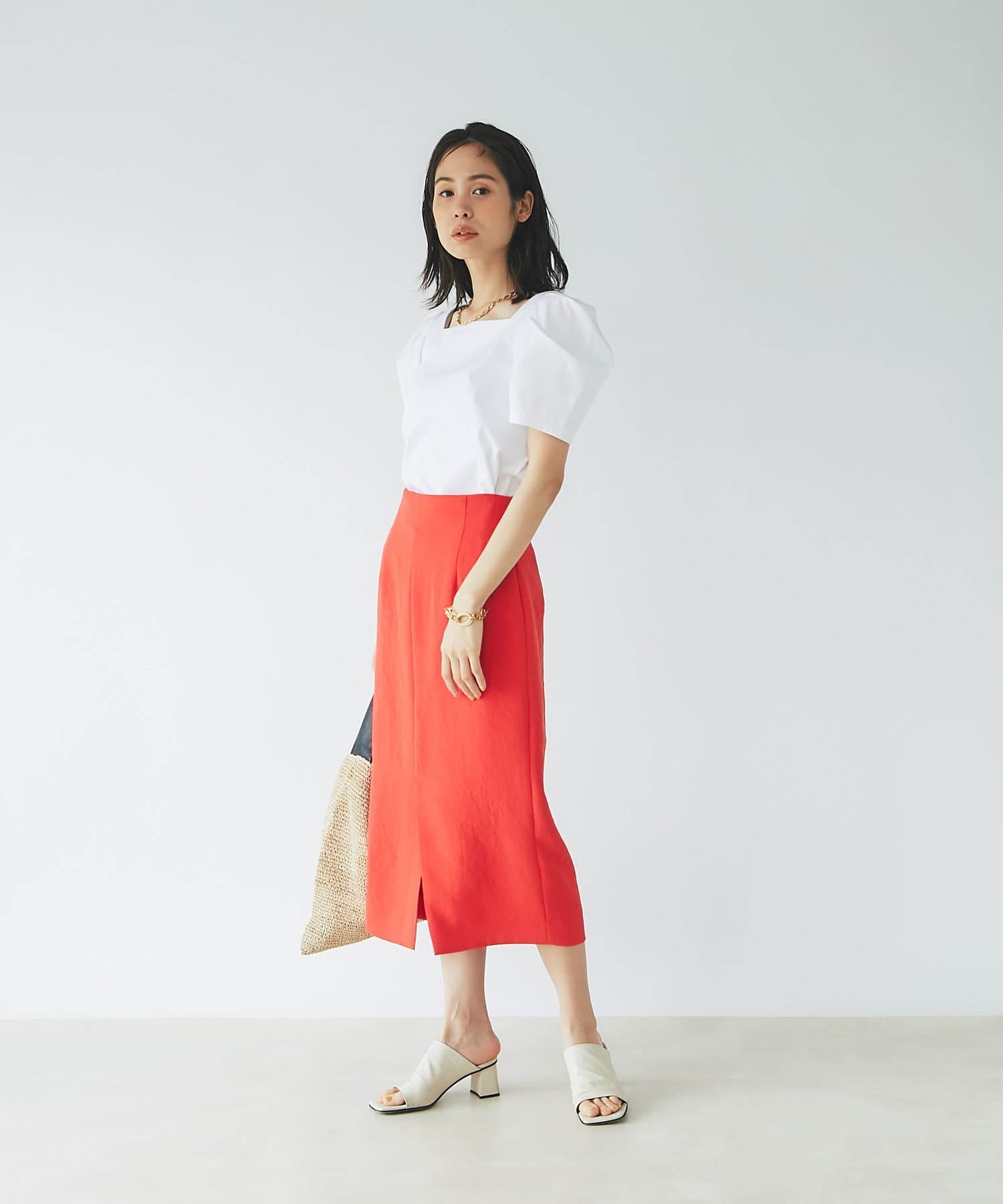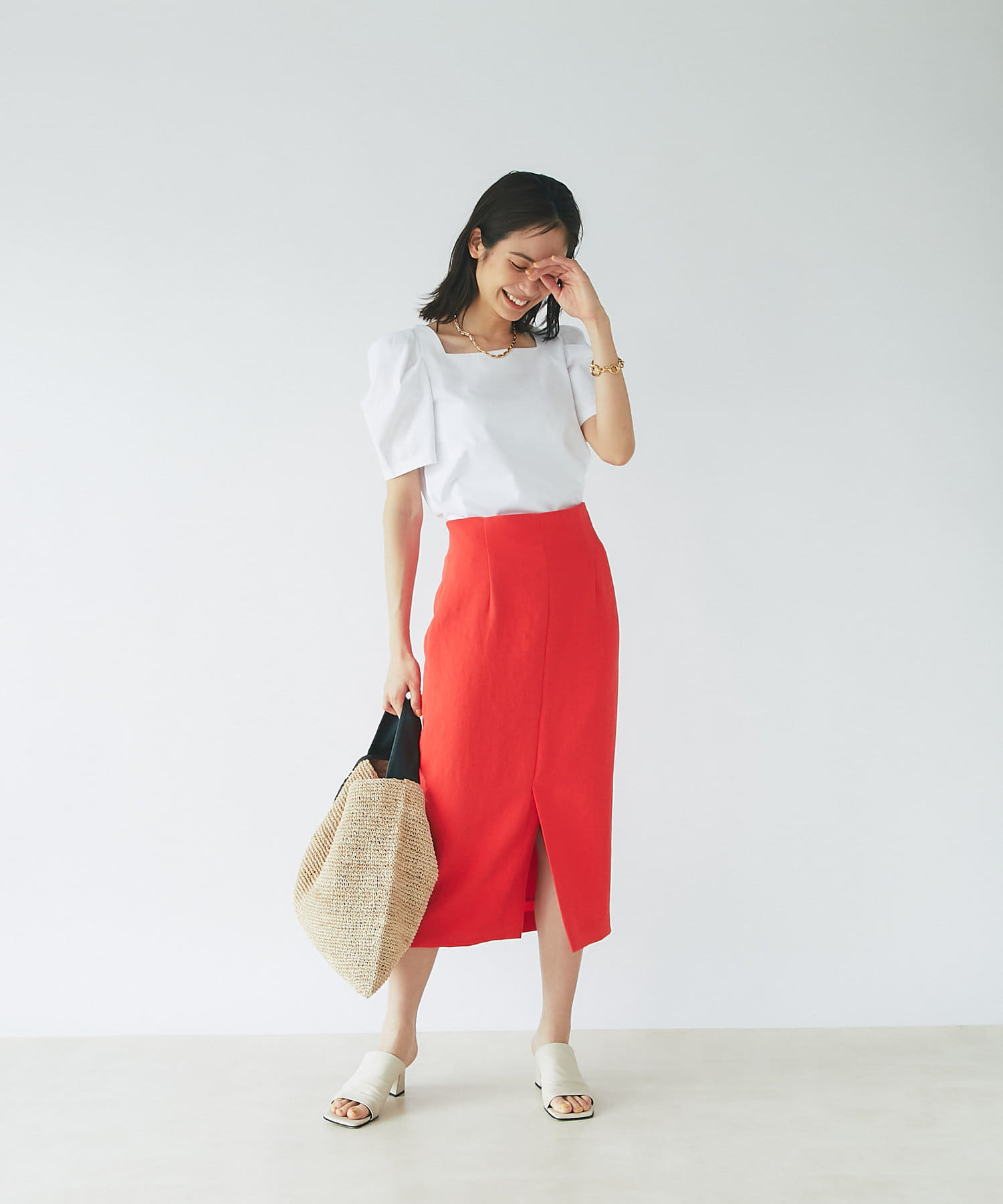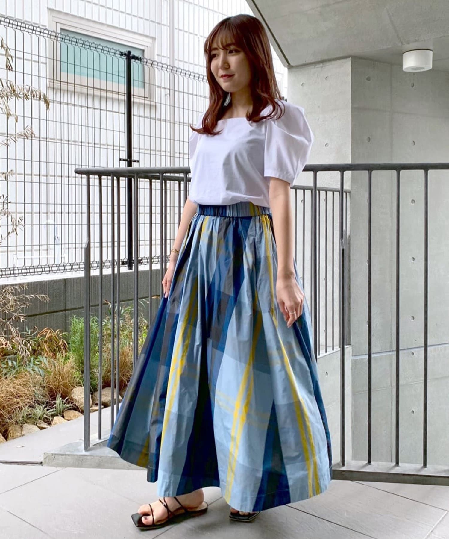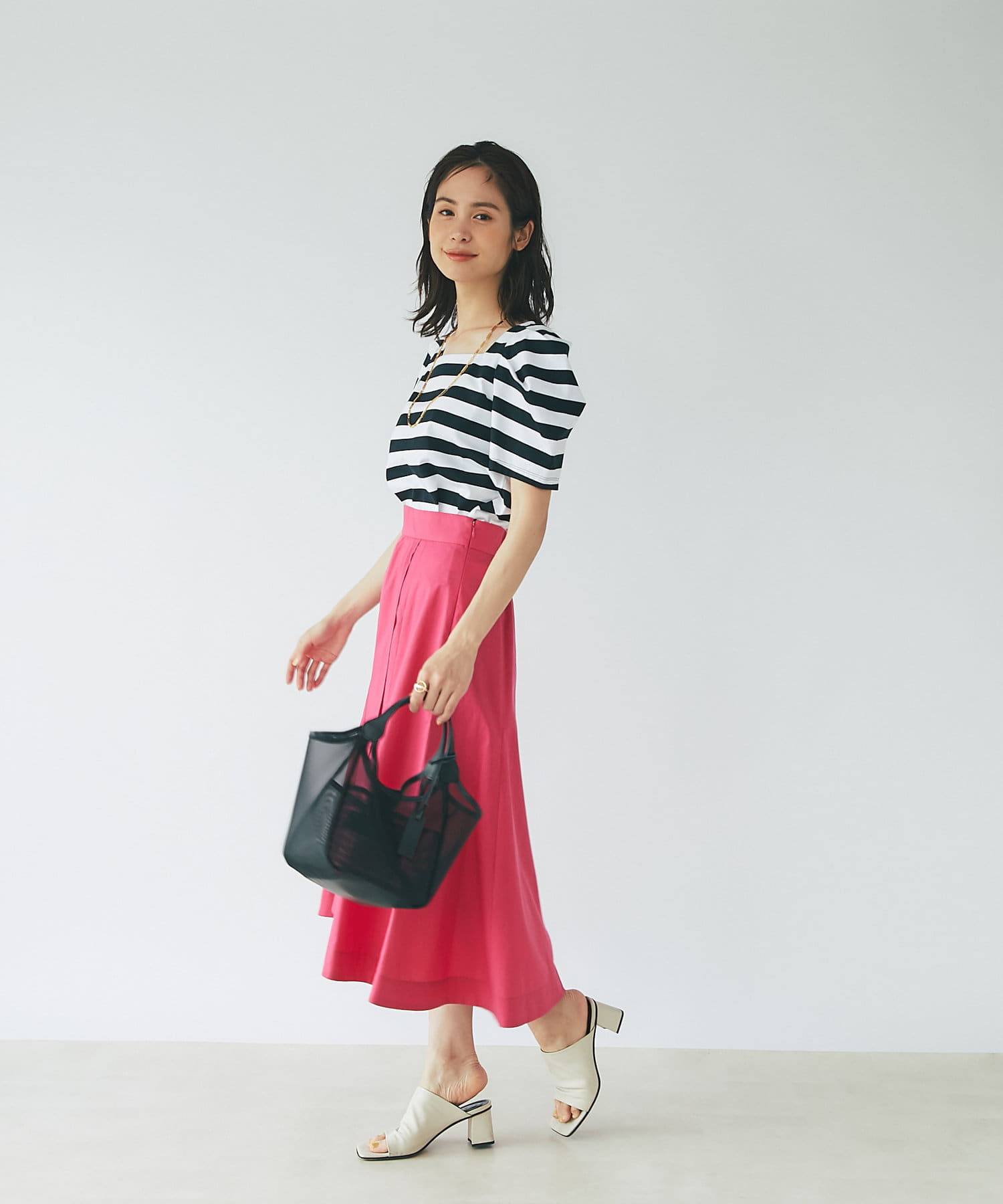 また、上品なコーディネートにも合わせやすく、フェミニンなフレアスカートやナロースカートなどとも相性抜群。