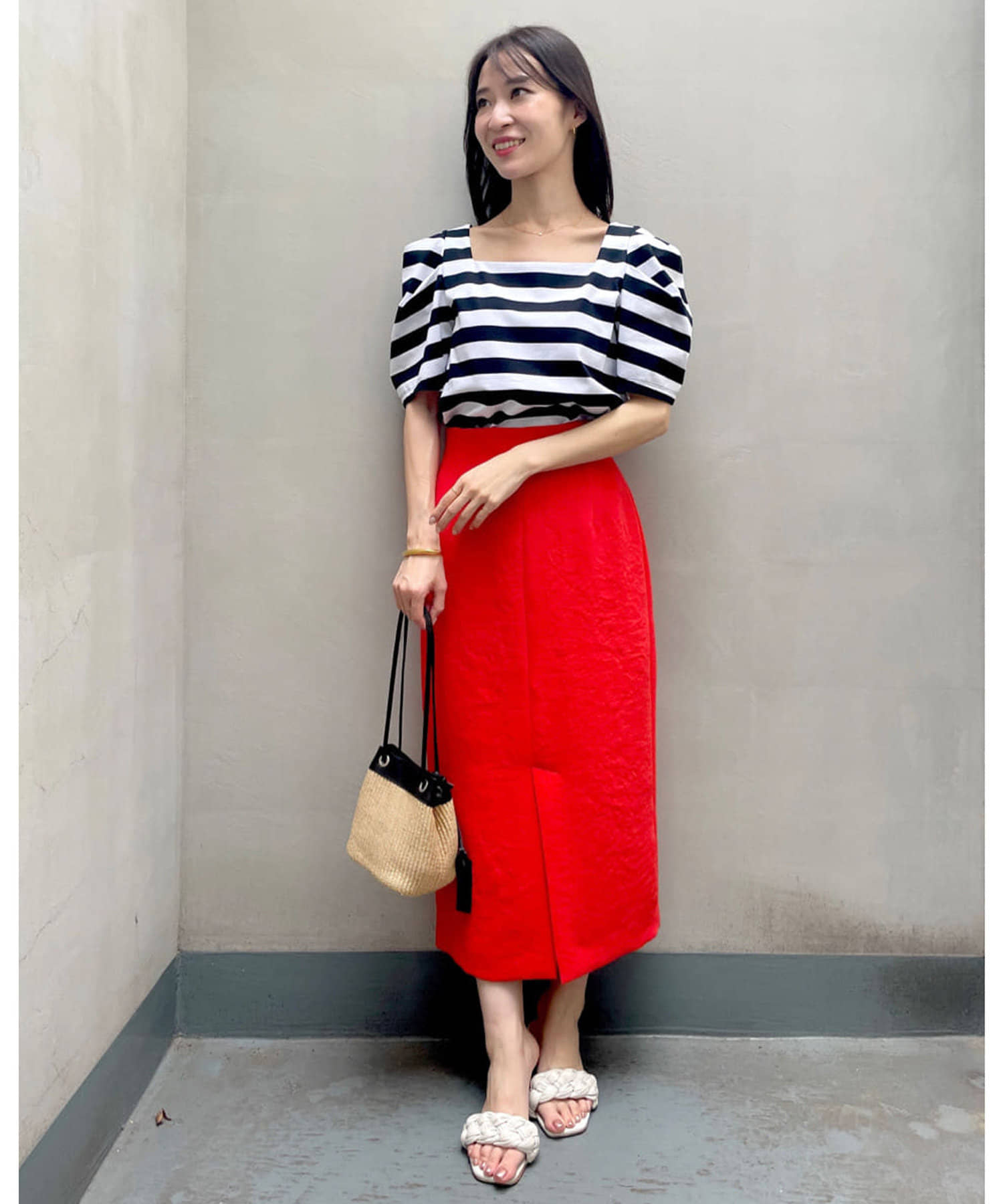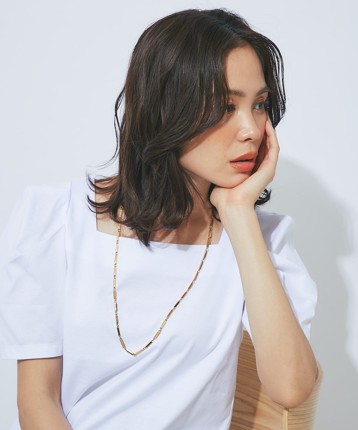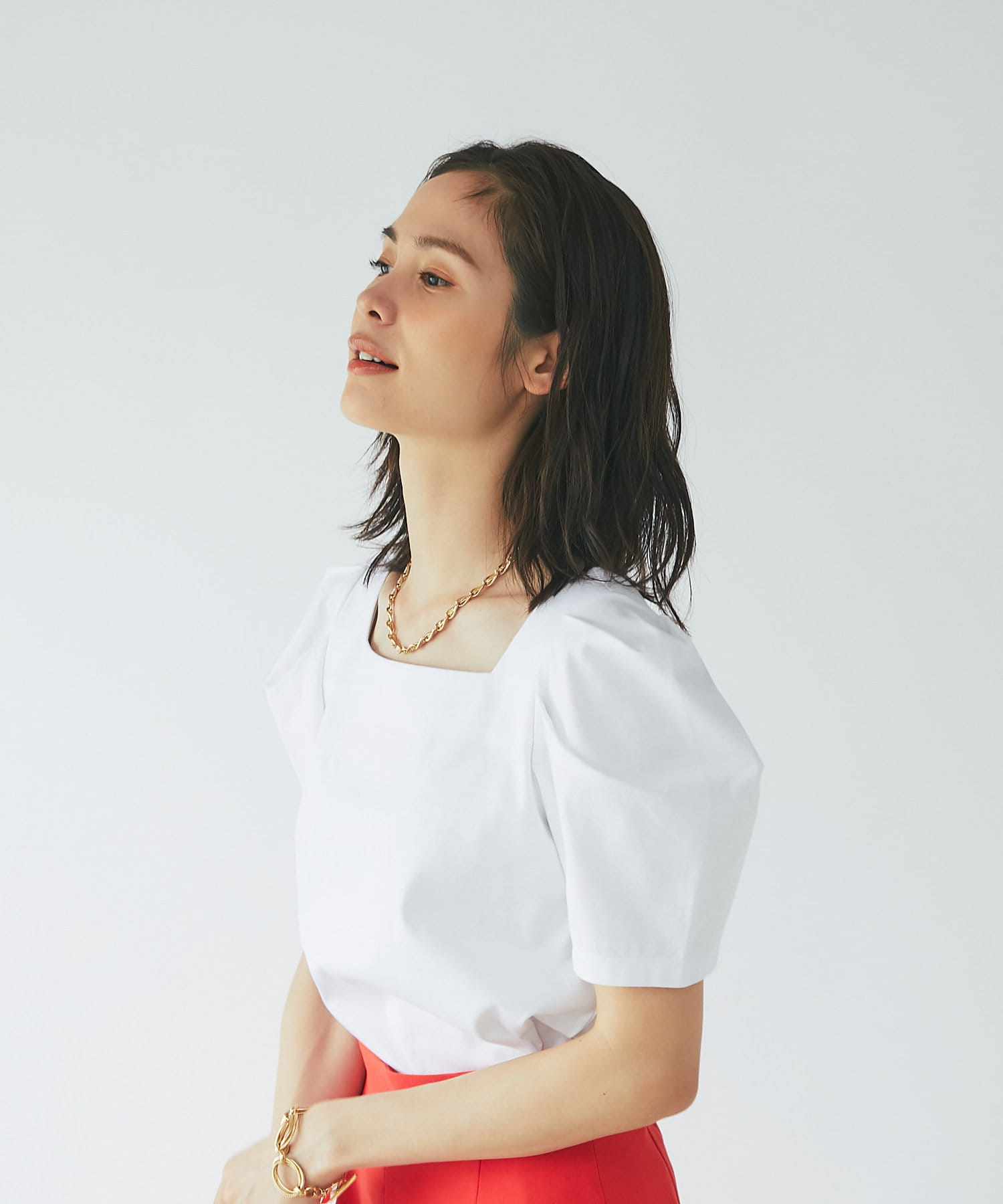 また、スクエアネックなのでデコルテラインをきれいに見せつつ、品の良さを演出してくれる一枚。