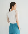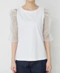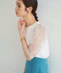 異素材のふんわりとしたシースルーの袖がポイントのカットソー。