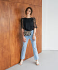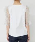 ふんわりとした袖がポイントのシースルードットスリーブカットソー