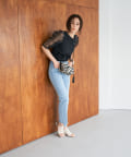 モノトーンなので、トレンドのカラーアイテムと合わせるのもおすすめ。