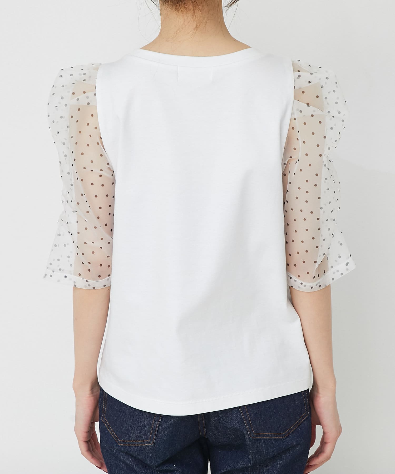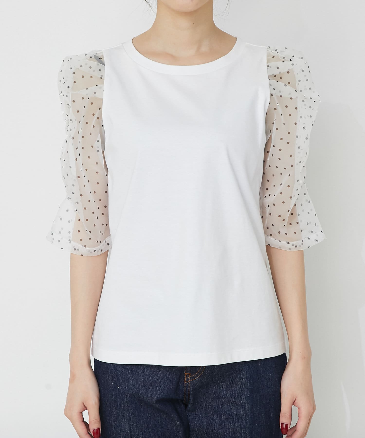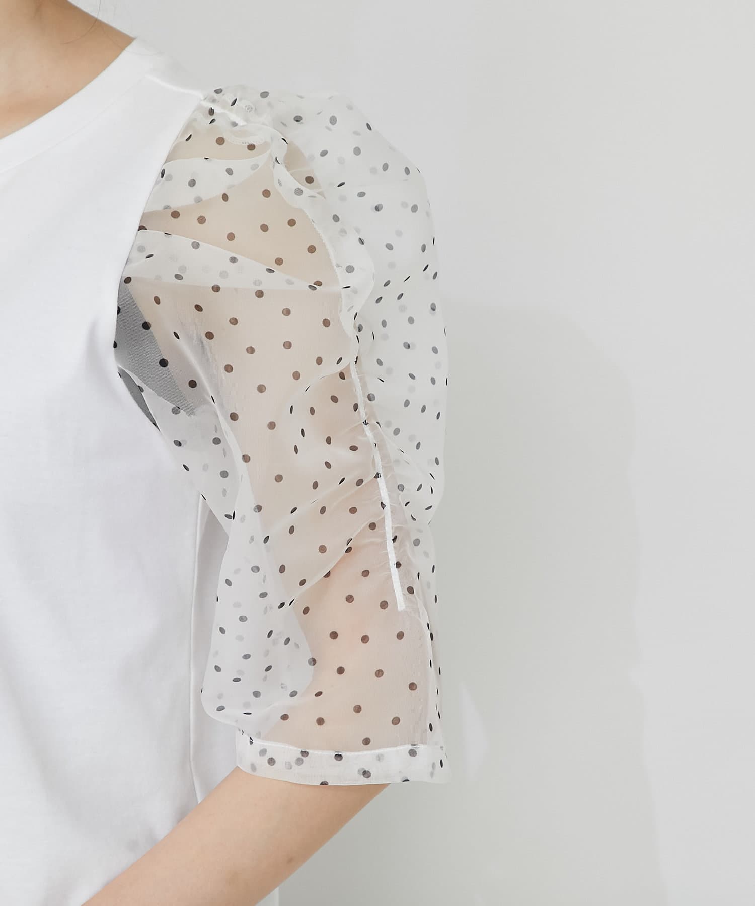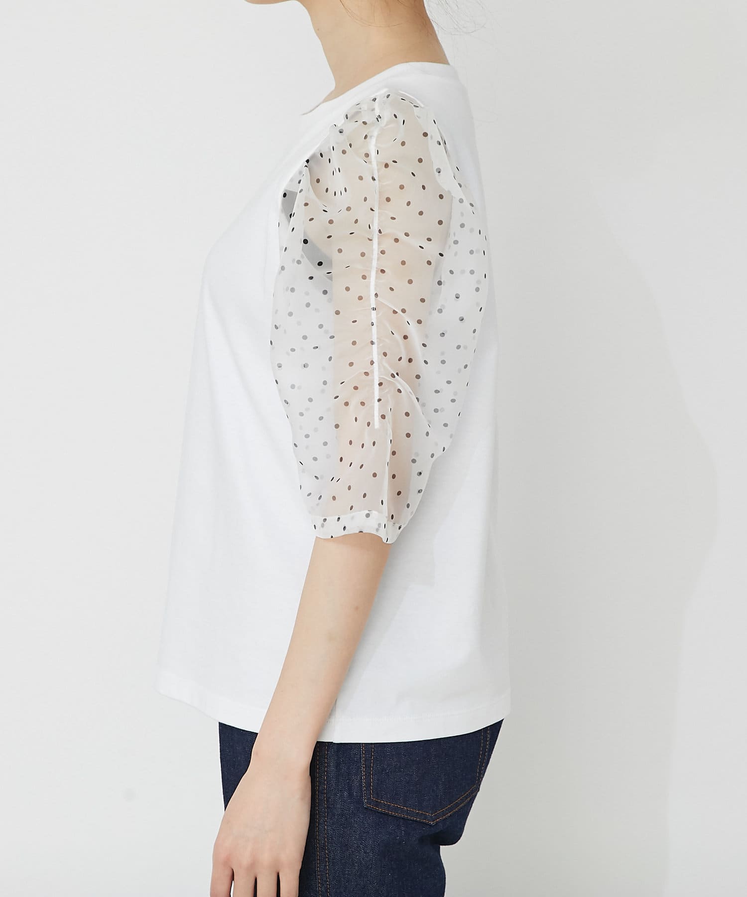 【ふんわりとした袖がポイント】シースルードットスリーブカットソー
