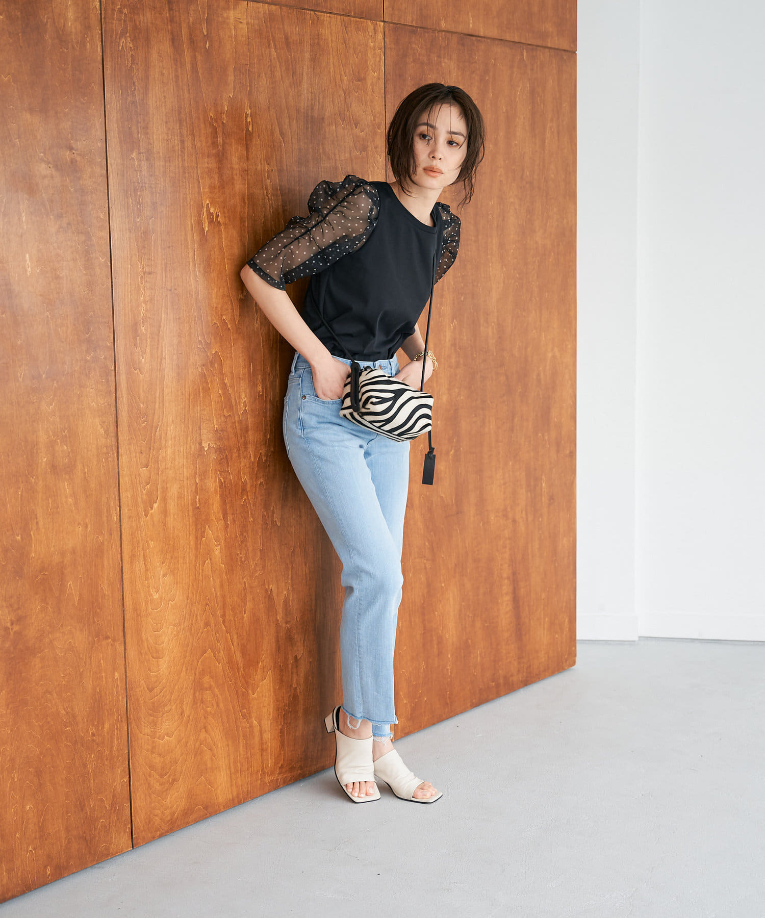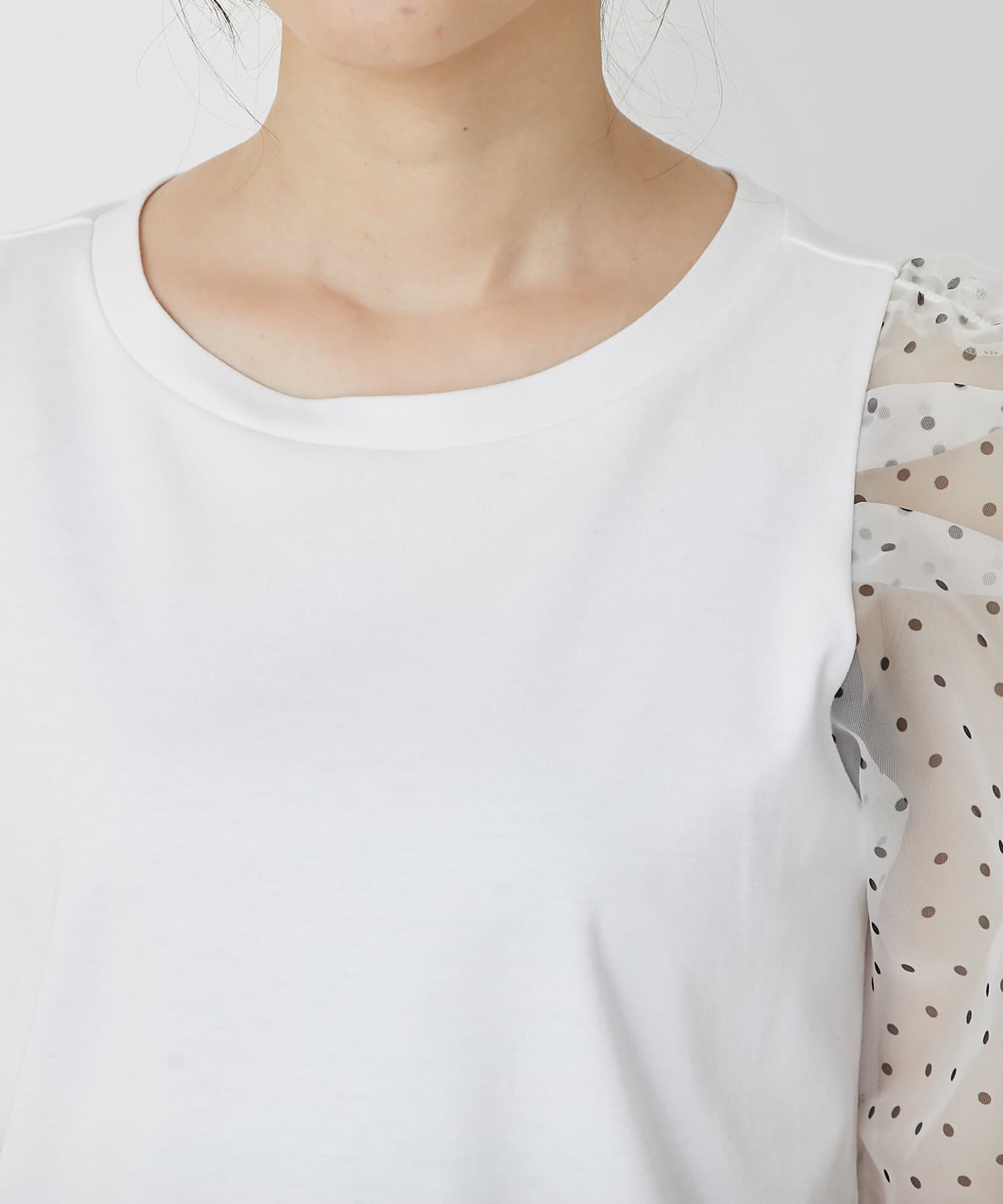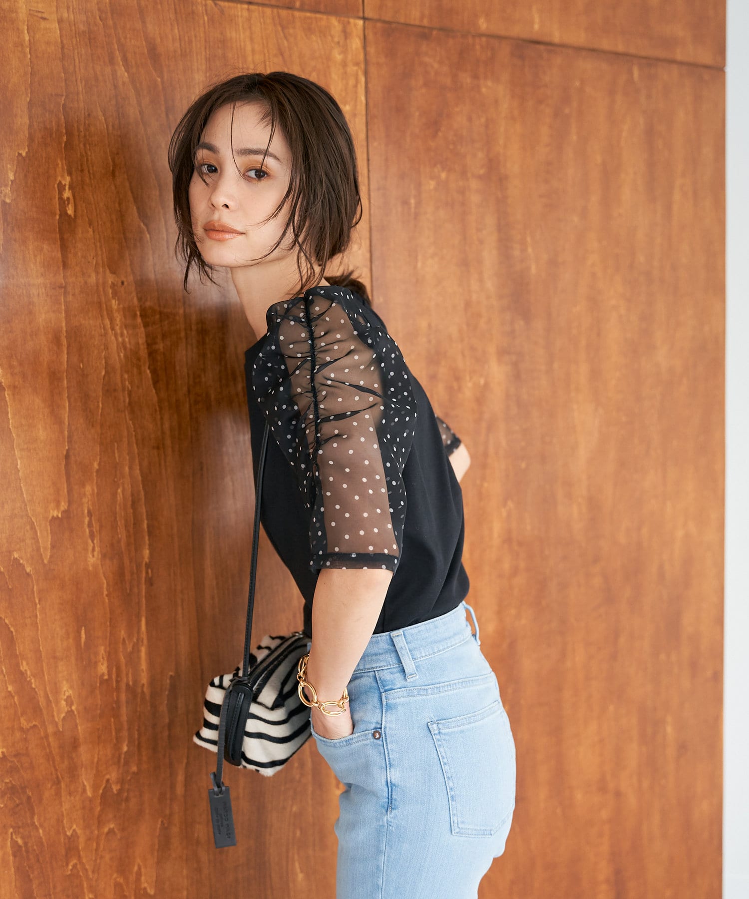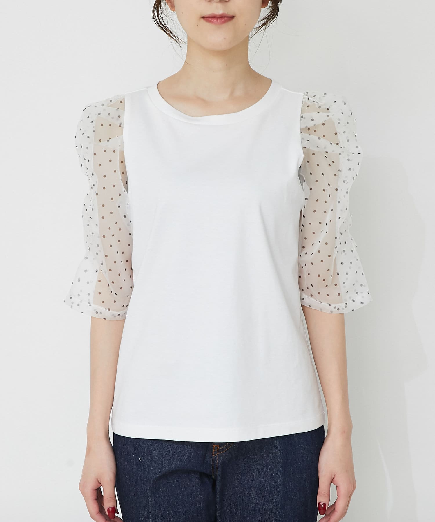 【ふんわりとした袖がポイント】シースルードットスリーブカットソー