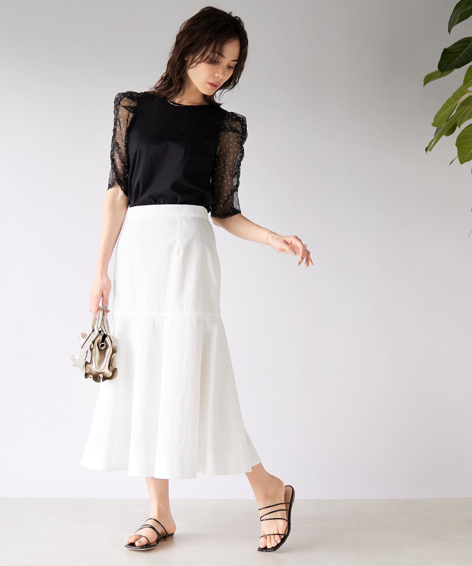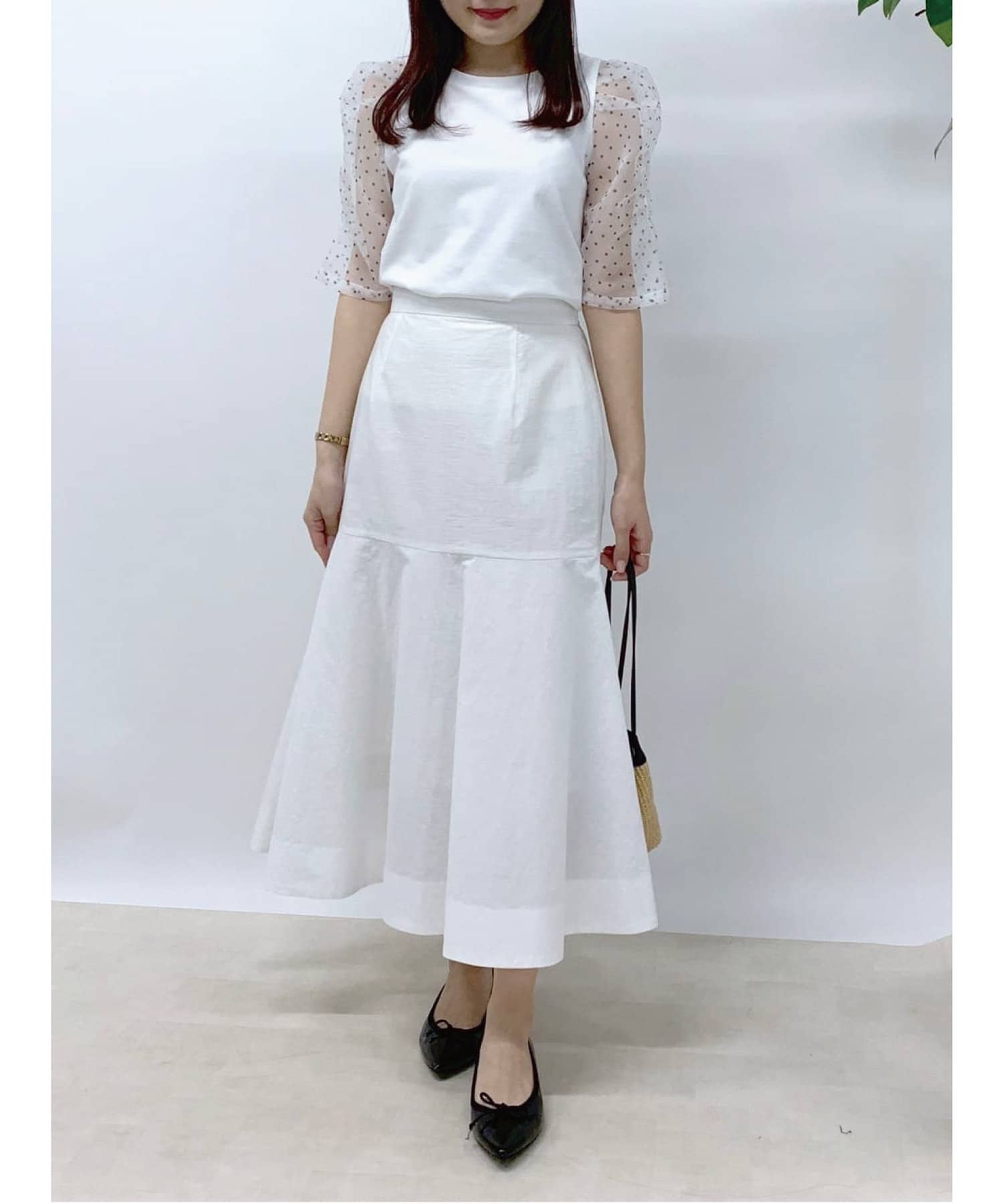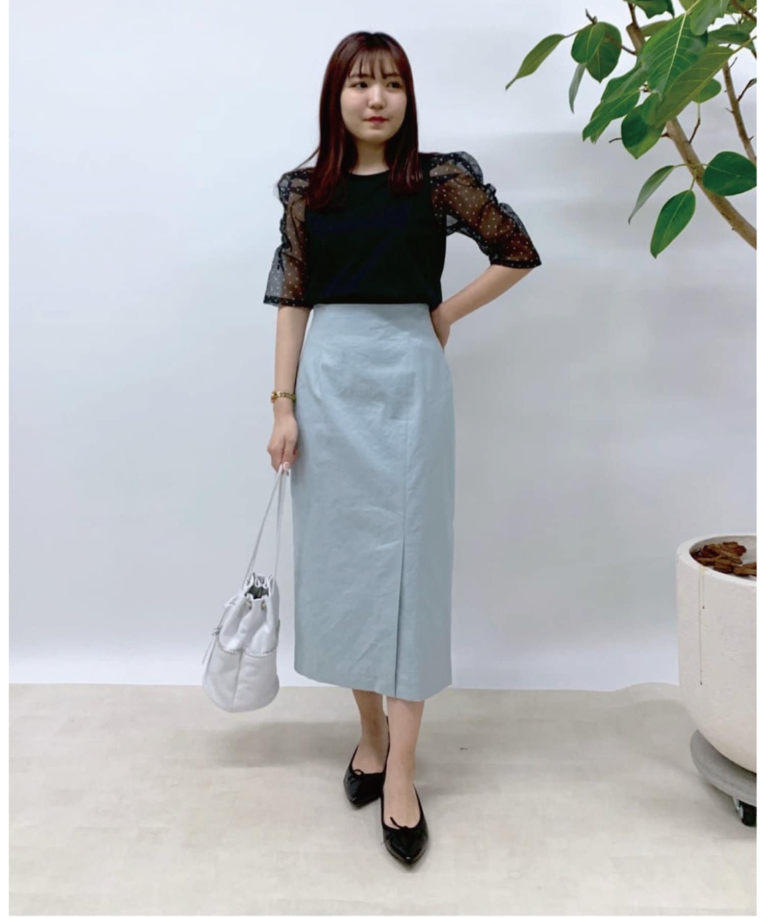 女性らしいフォルムなので、綺麗目のスカートとの相性抜群◎