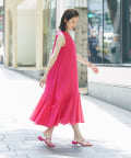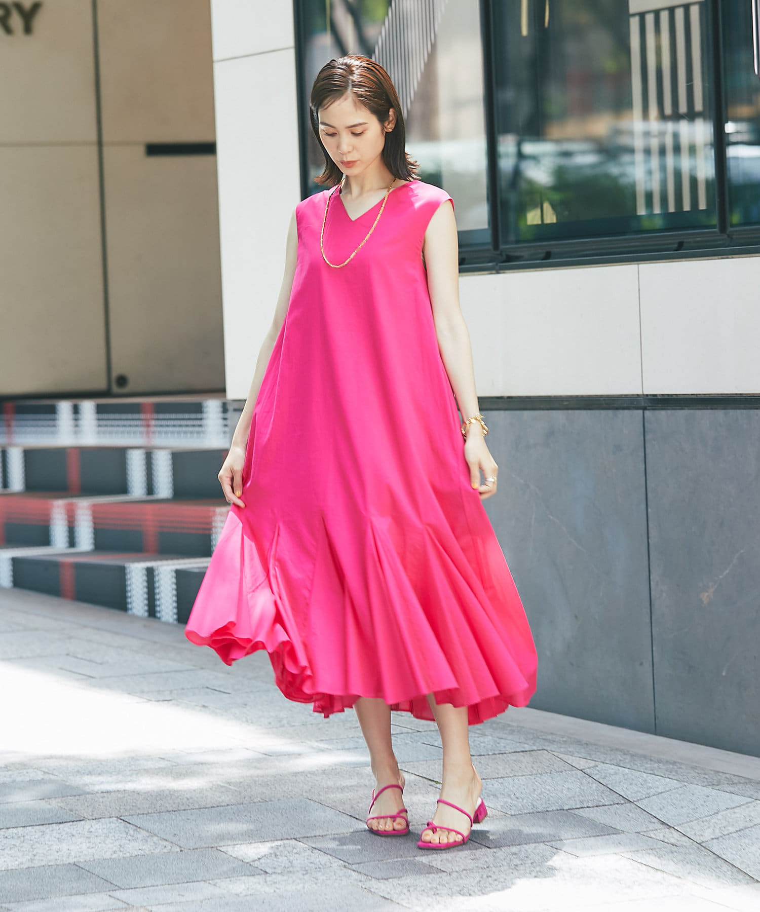 揺れ動くシルエットが綺麗で上品見えする大人のカラーワンピース。