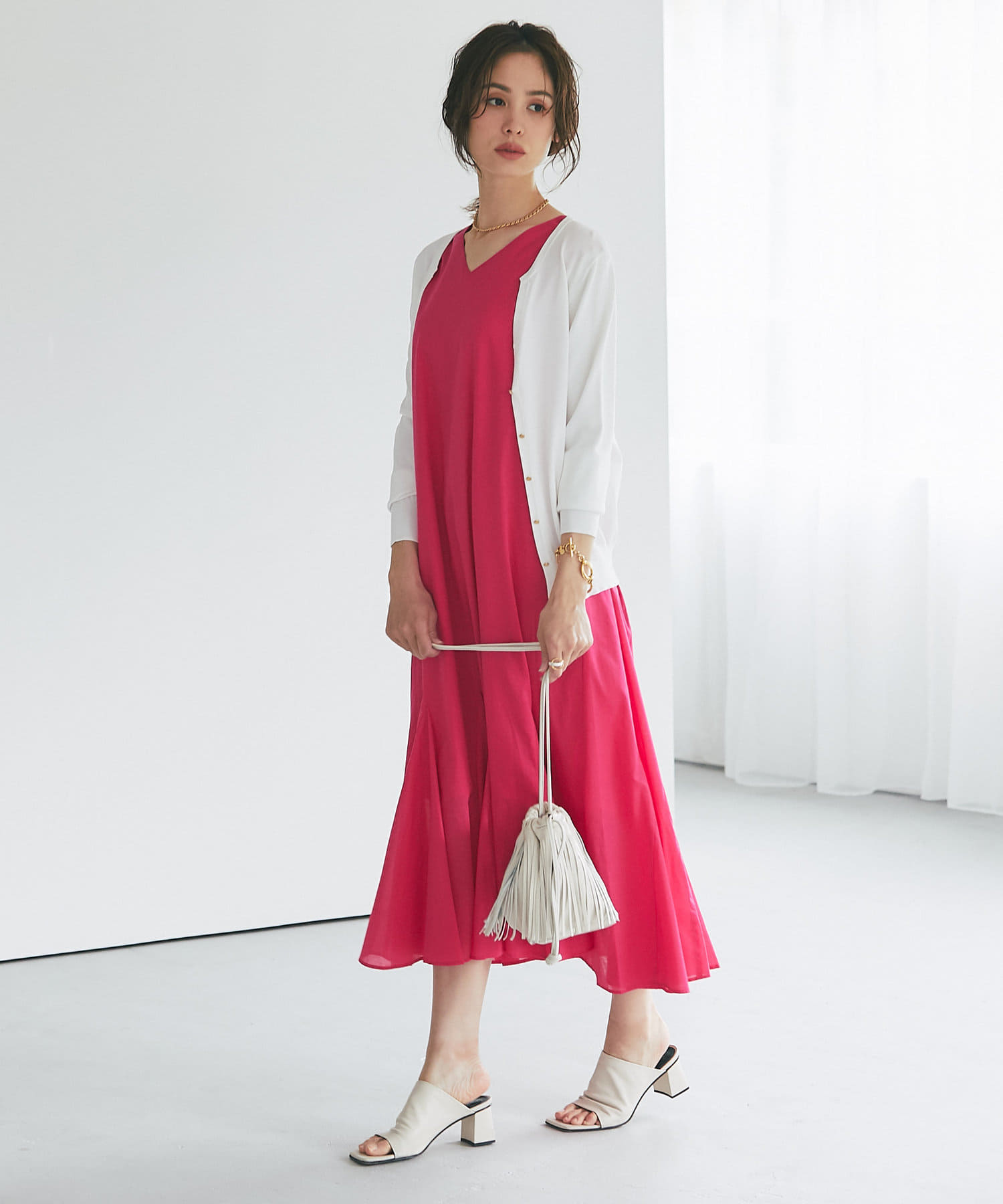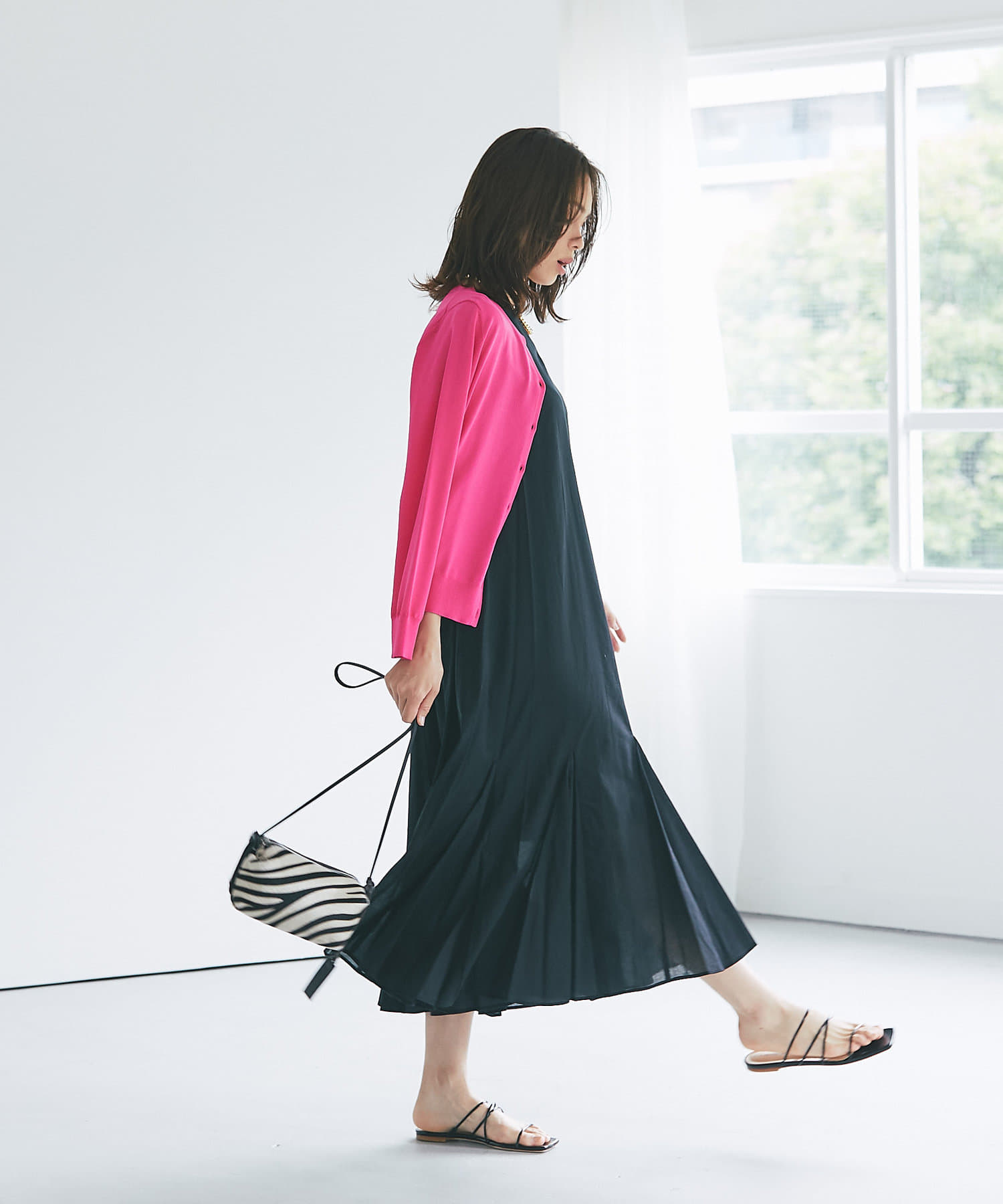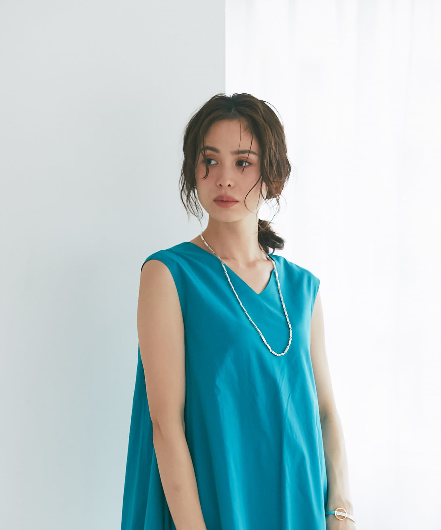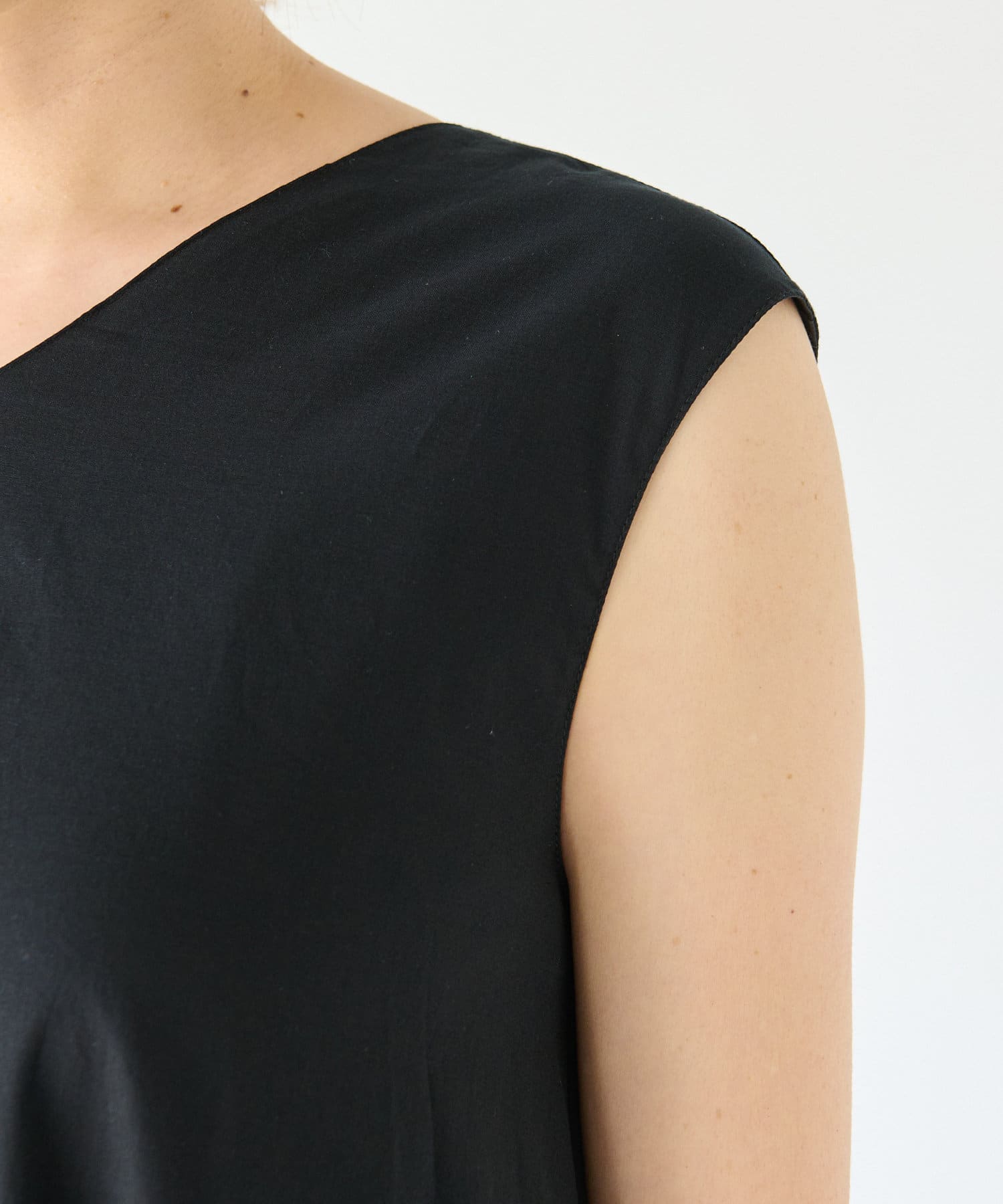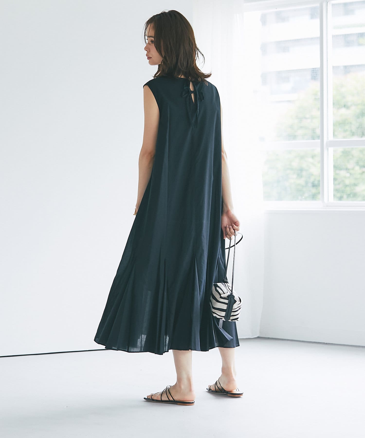 • ノースリーブなのでカーデなどもすっきりと着て頂けます。