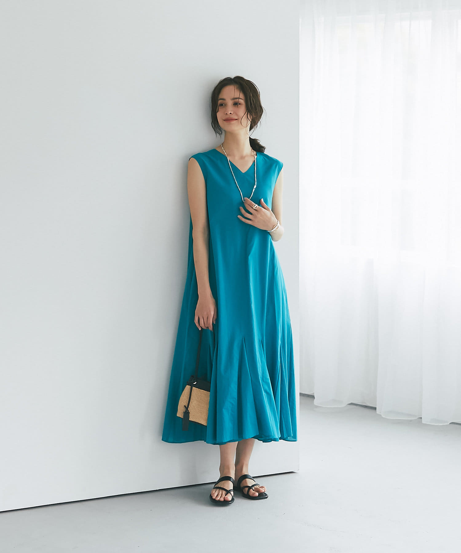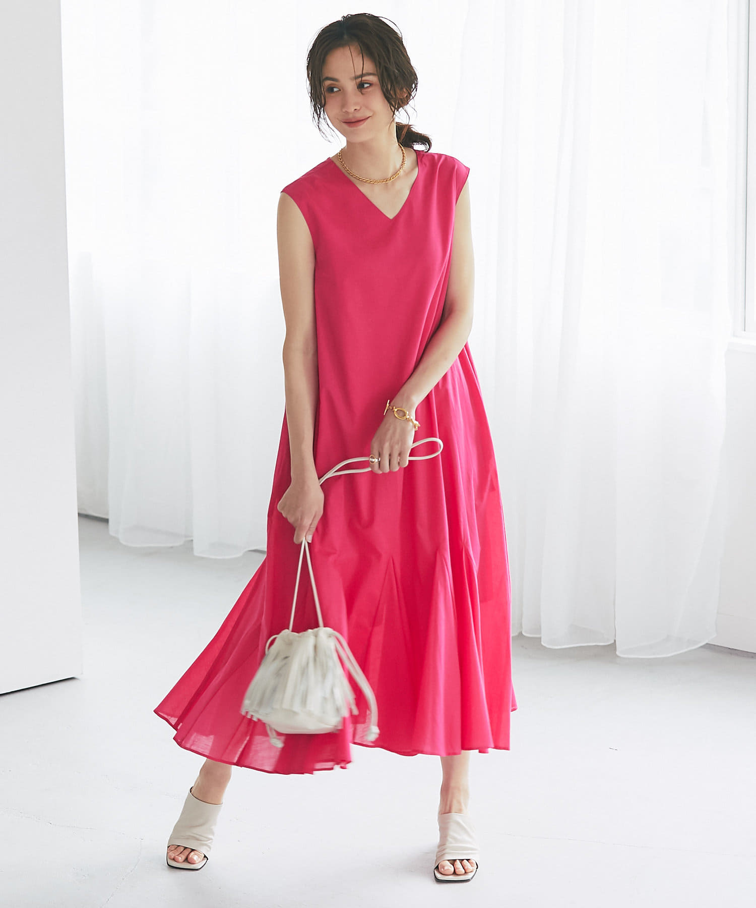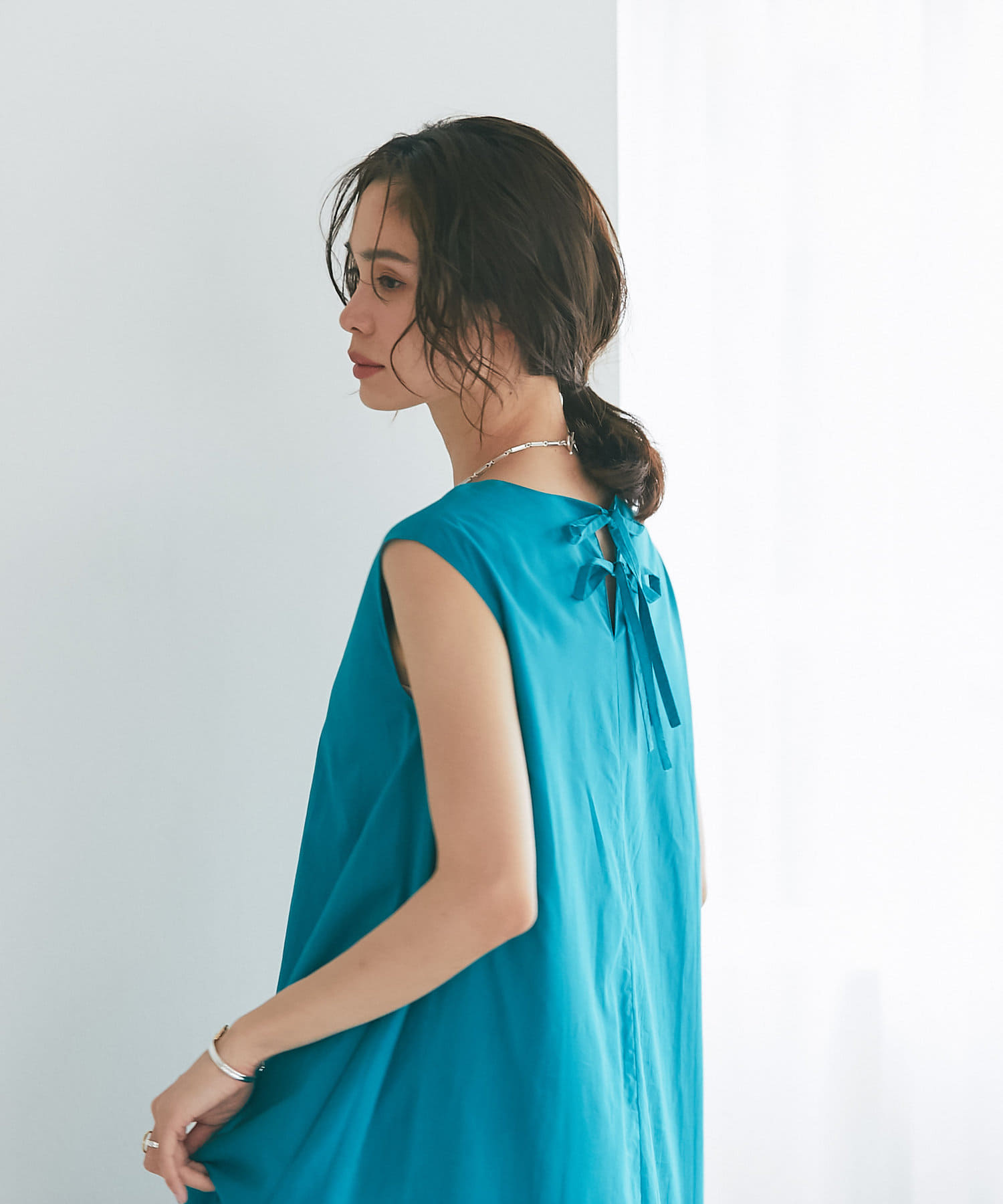 #美人映え #ワンピ―ス #無地 #コットン #ノースリーブ