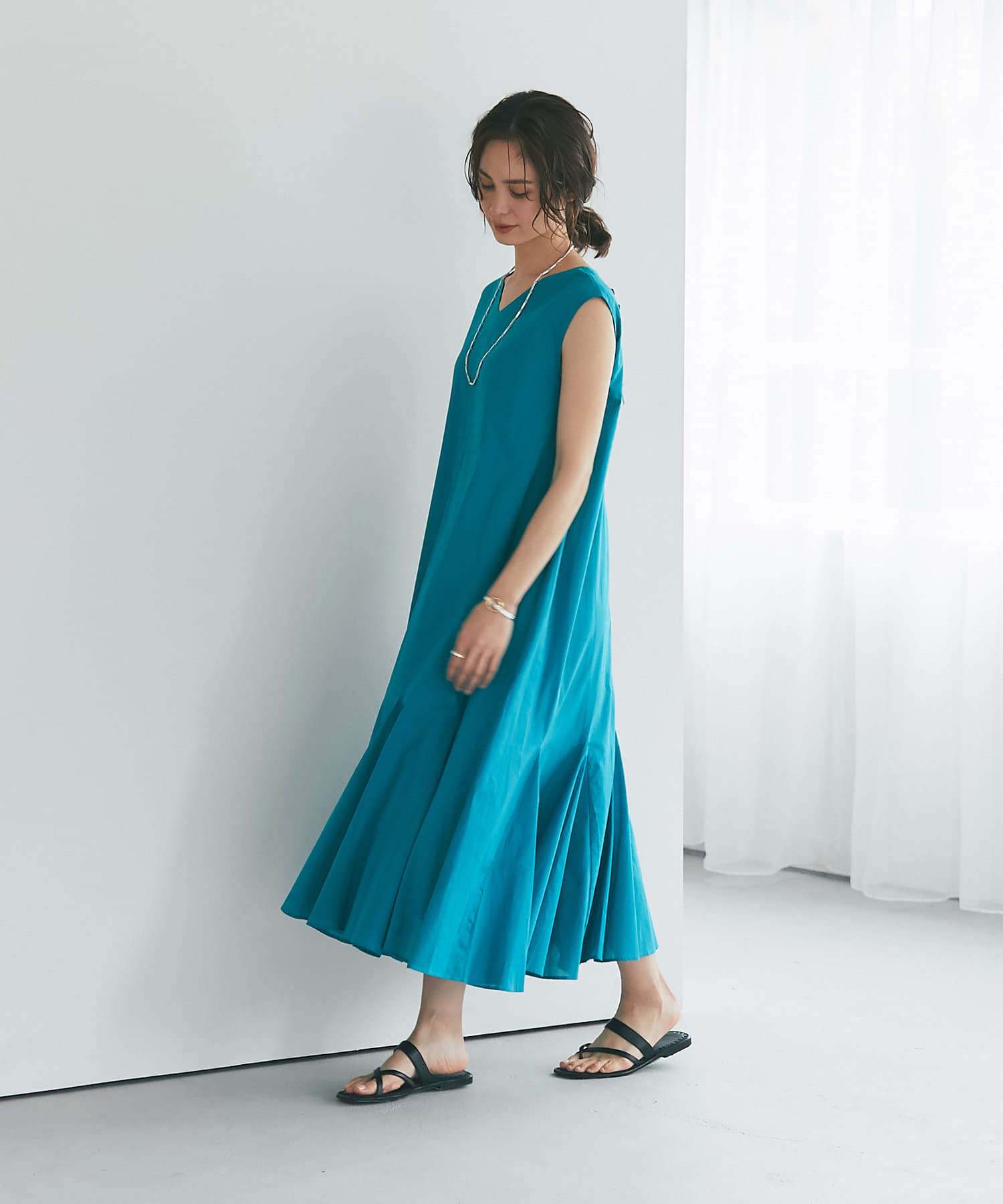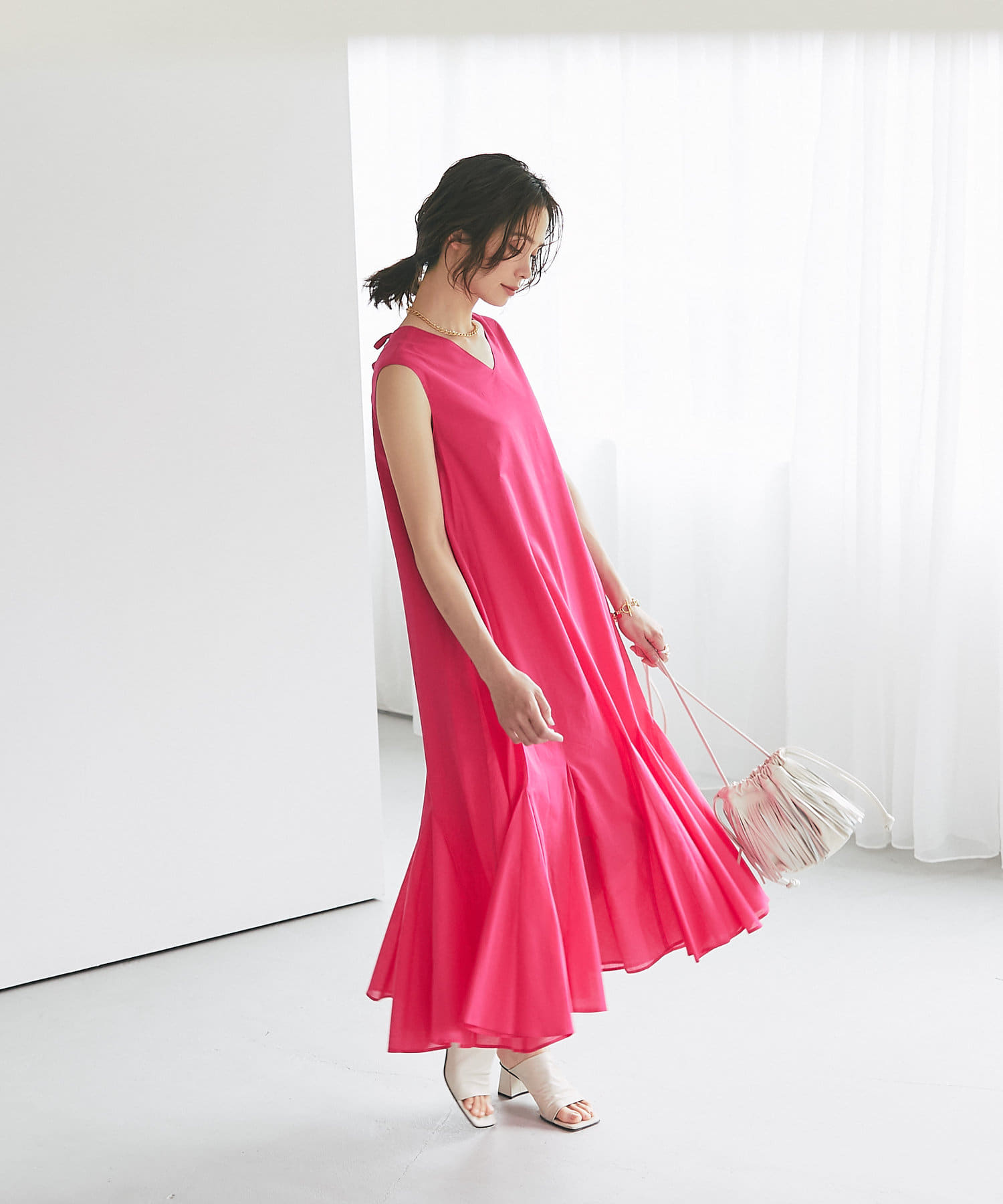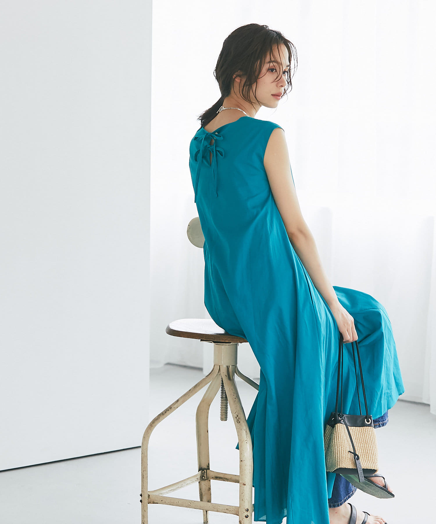 #美人映え #ワンピ―ス #無地 #コットン #ノースリーブ