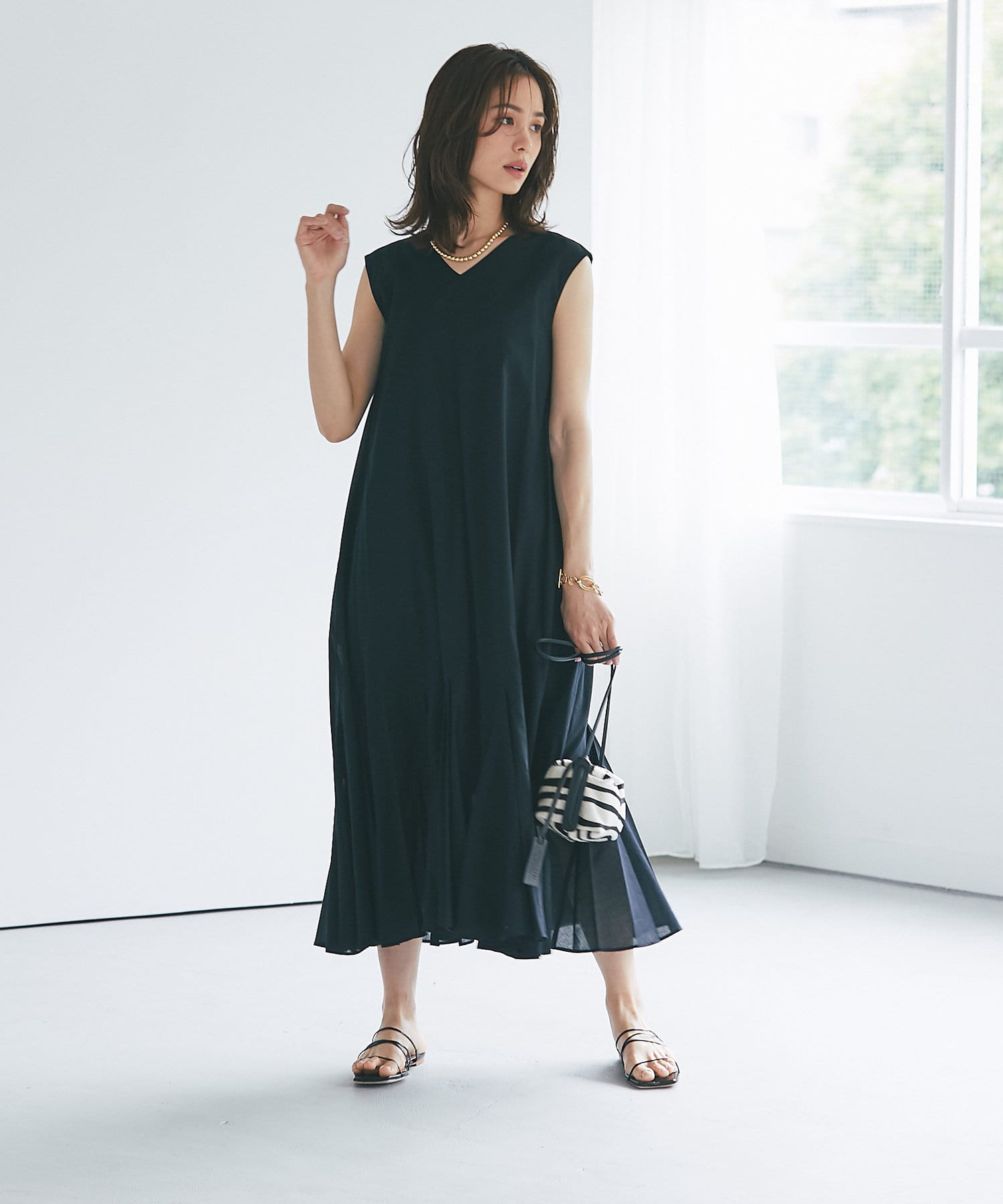 • ノースリーブで羽織りものももたつかず着用頂けます。