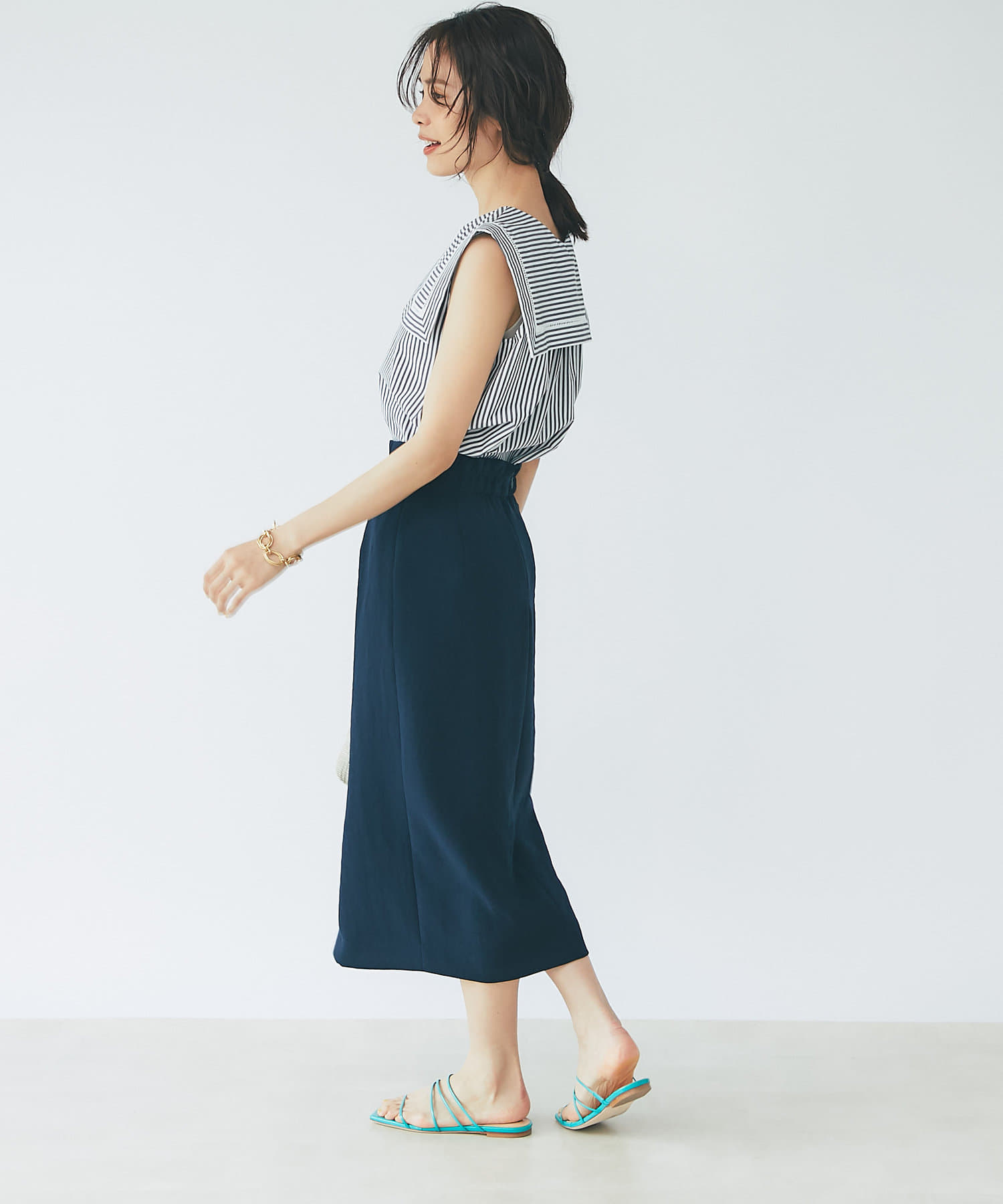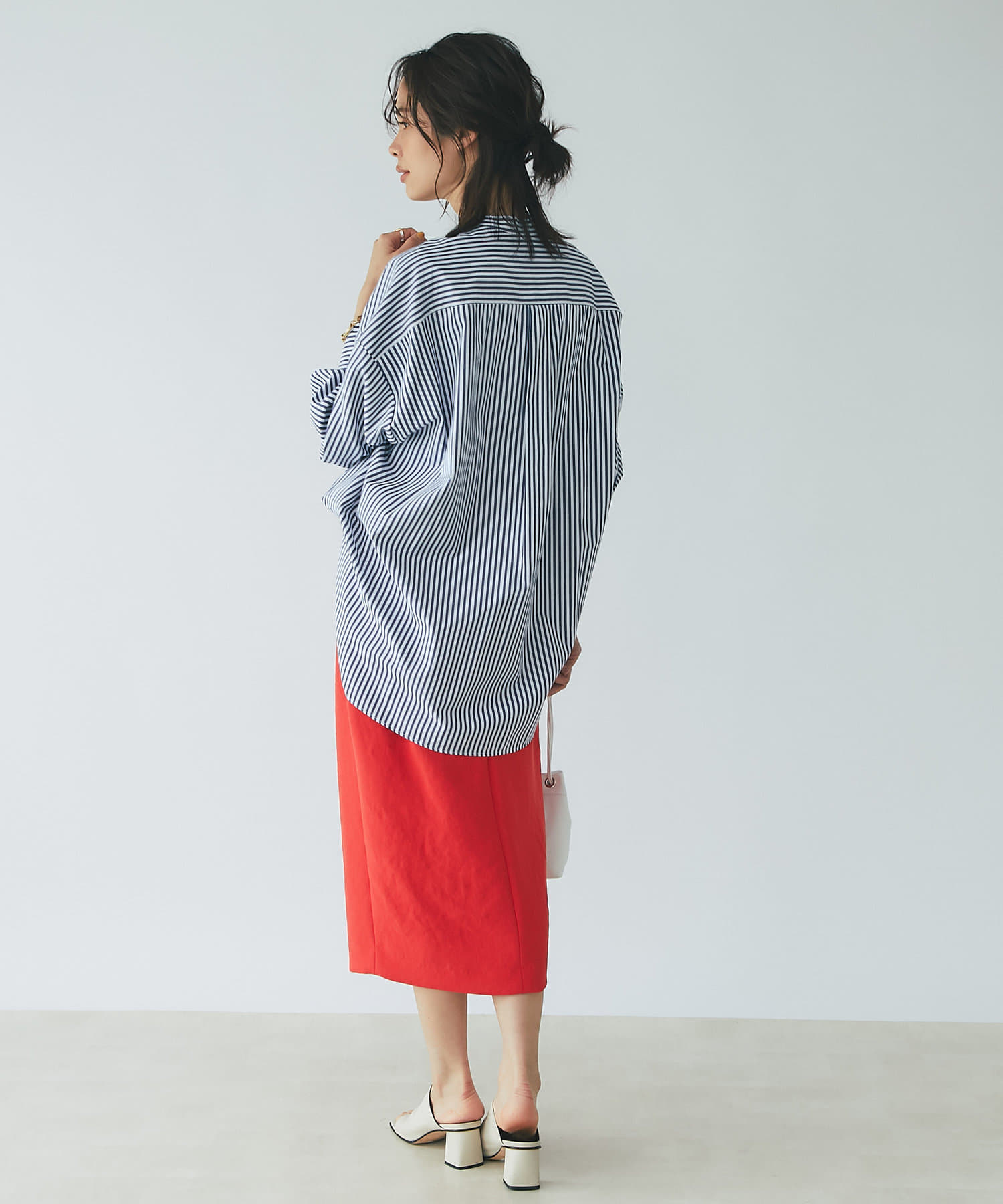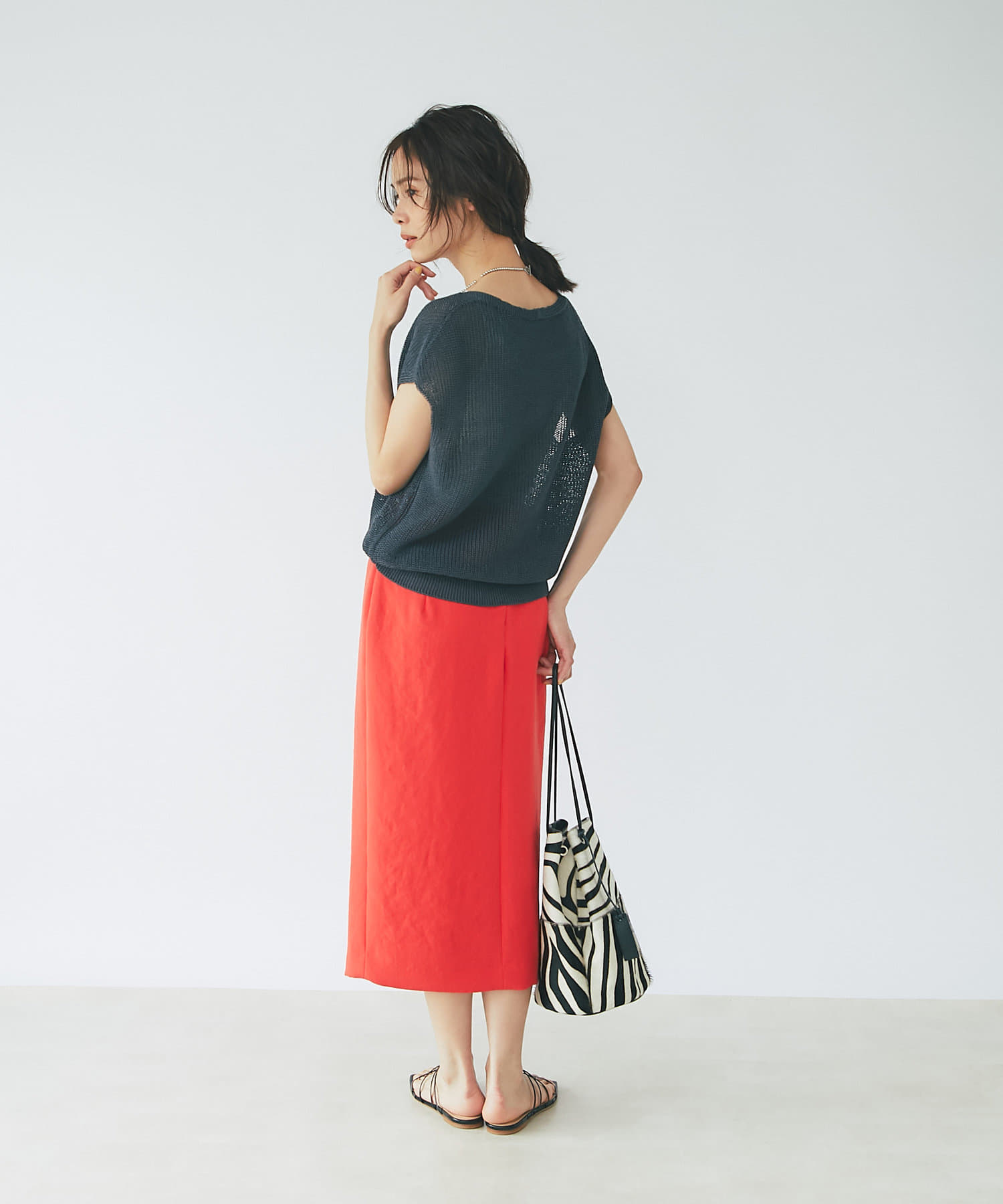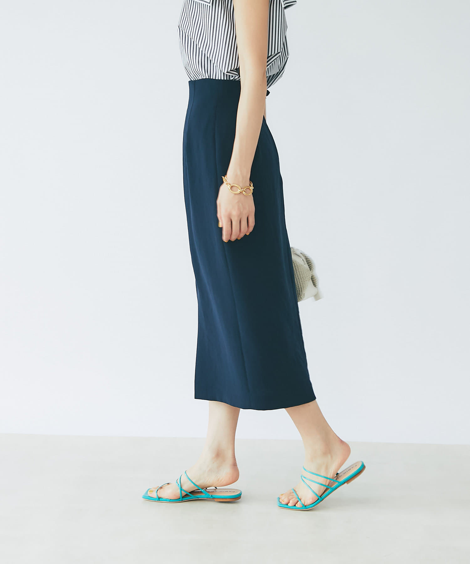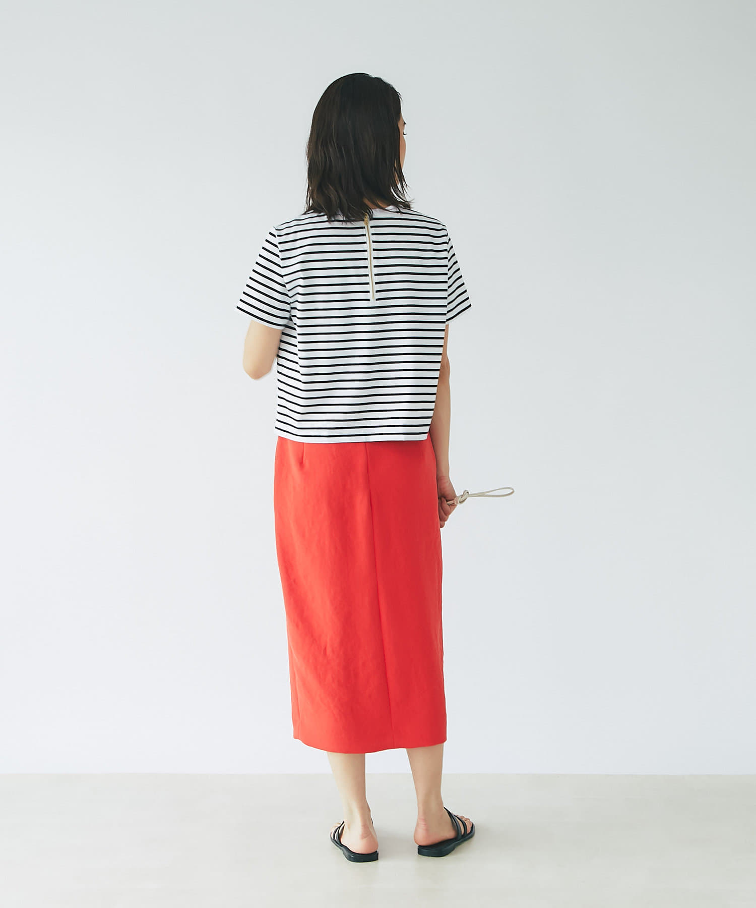 すっきりとシルエットなのでデザイントップスとの相性も抜群◎