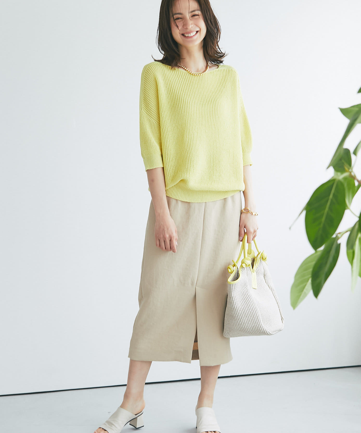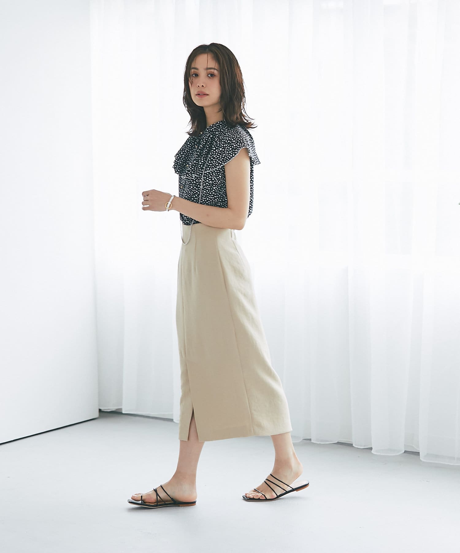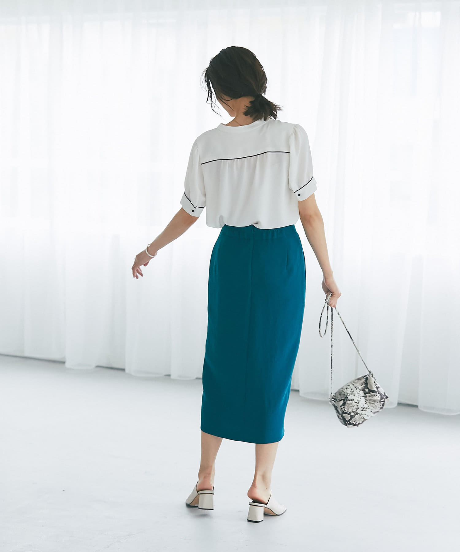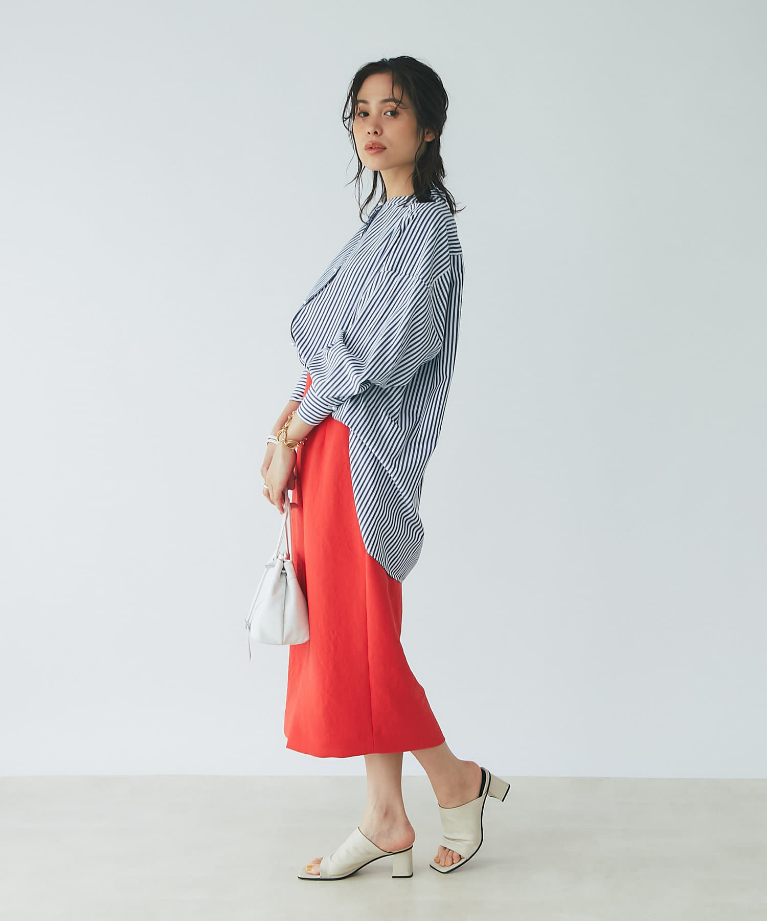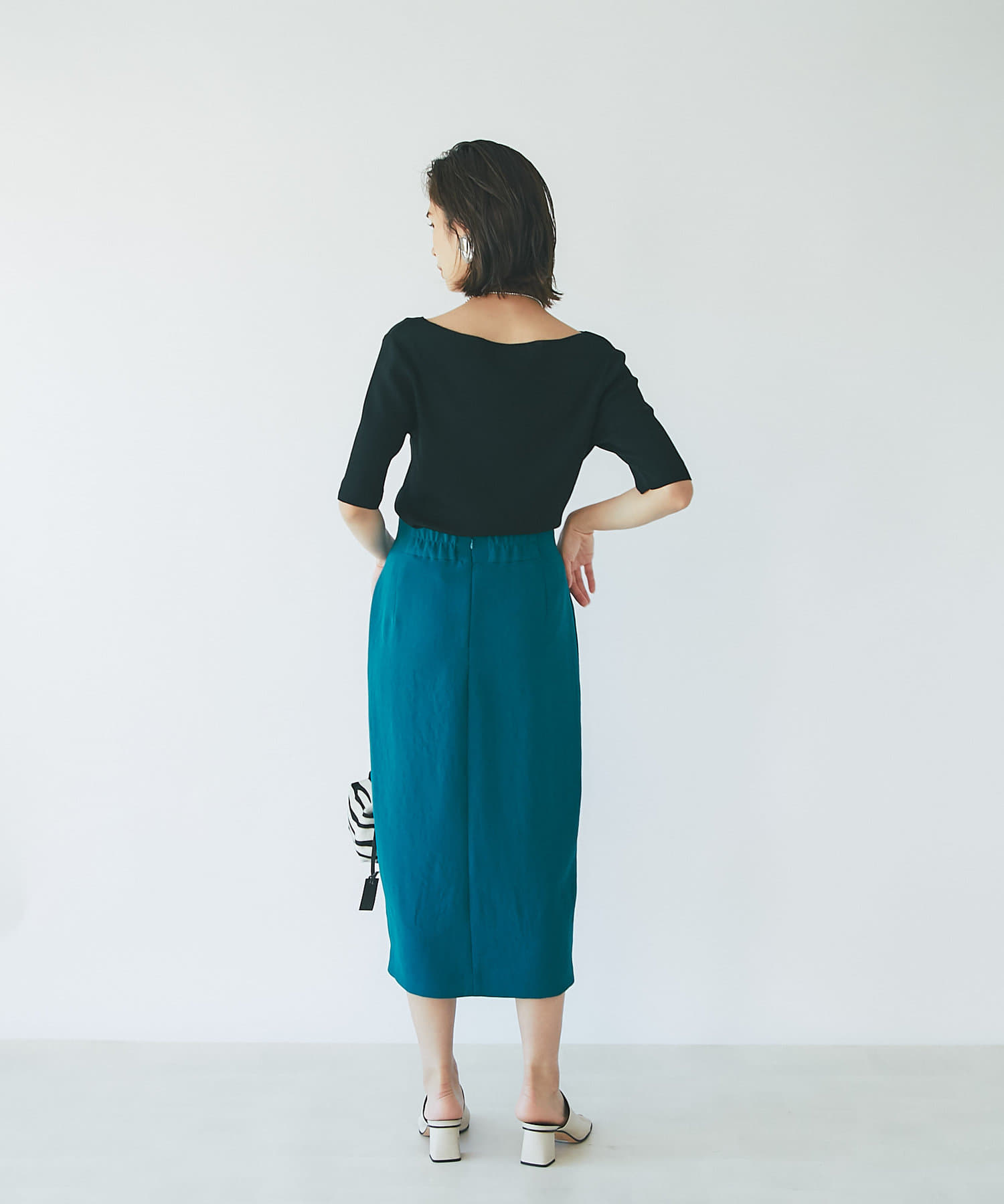 すっきりとシルエットなのでデザイントップスとの相性も抜群◎