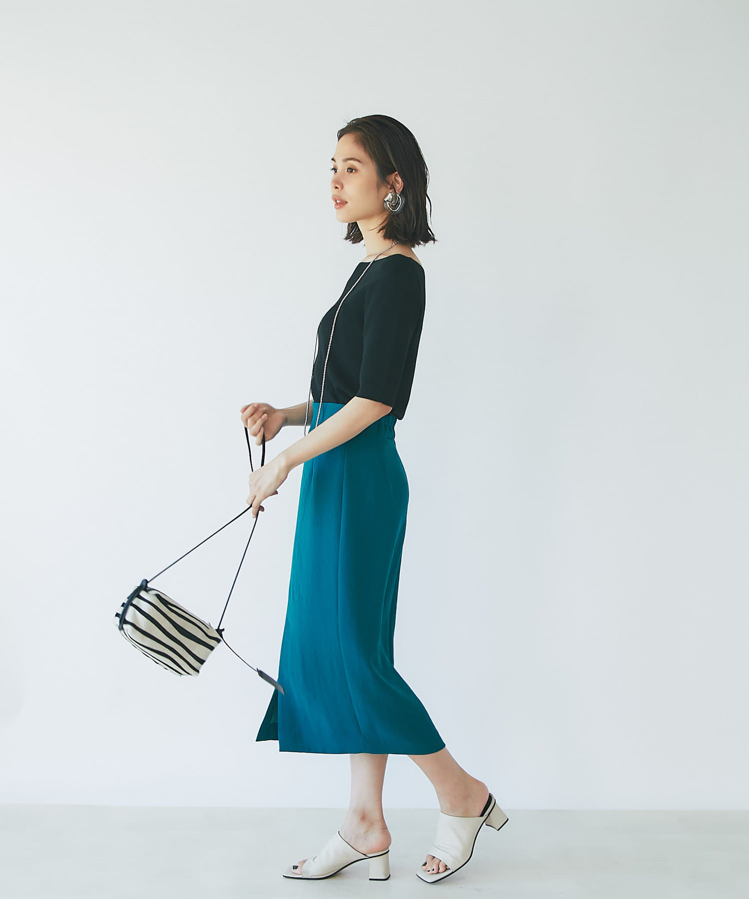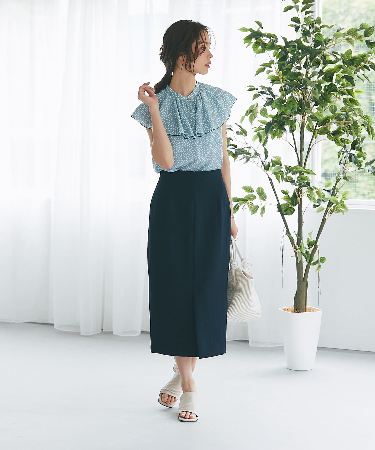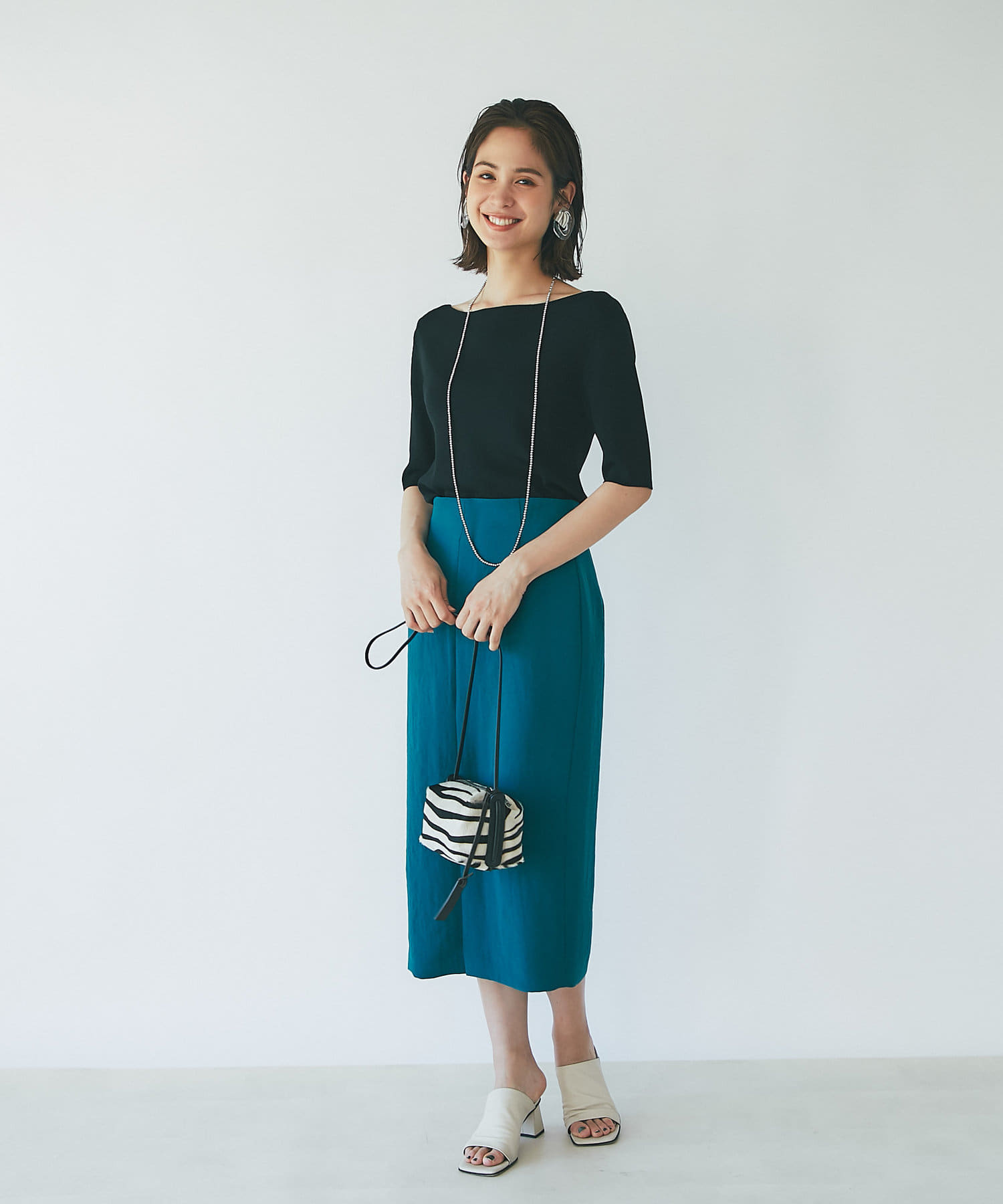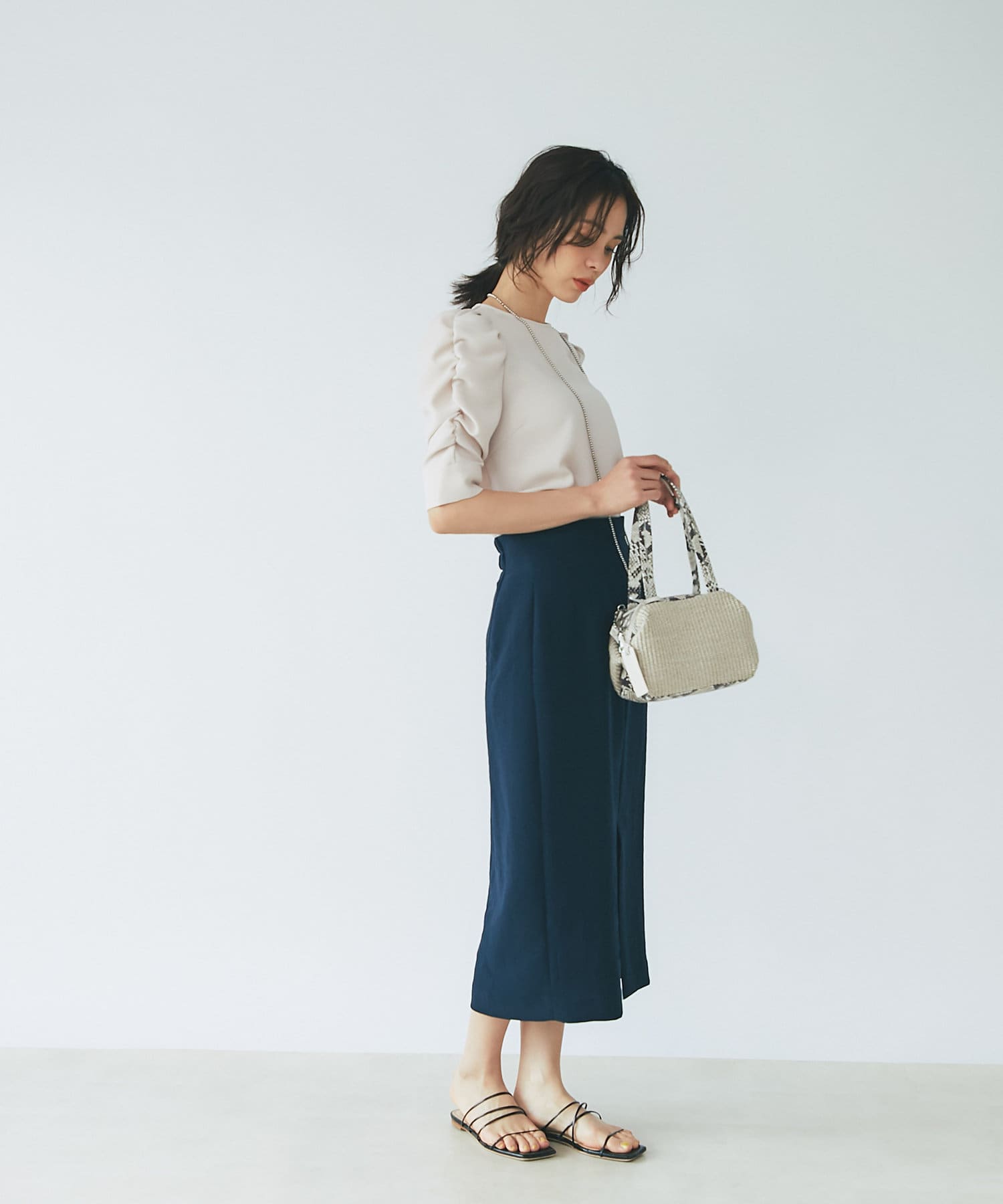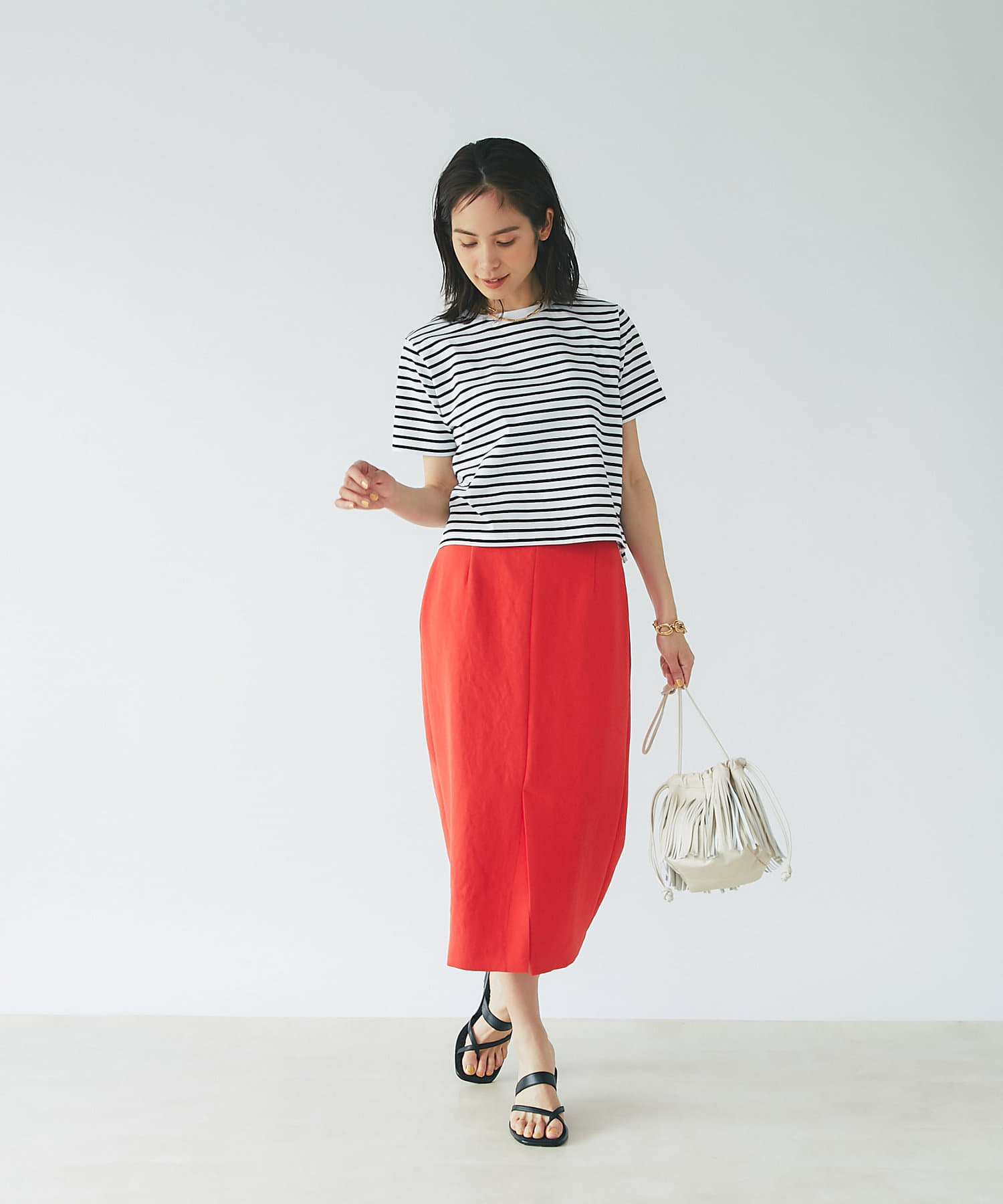 すっきりとシルエットなのでデザイントップスとの相性も抜群◎