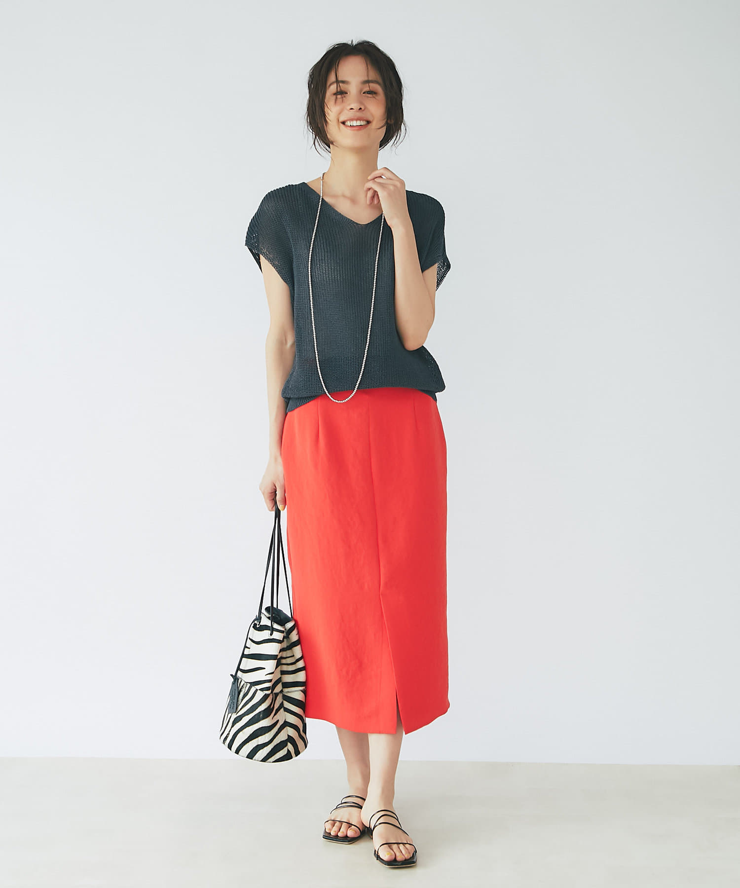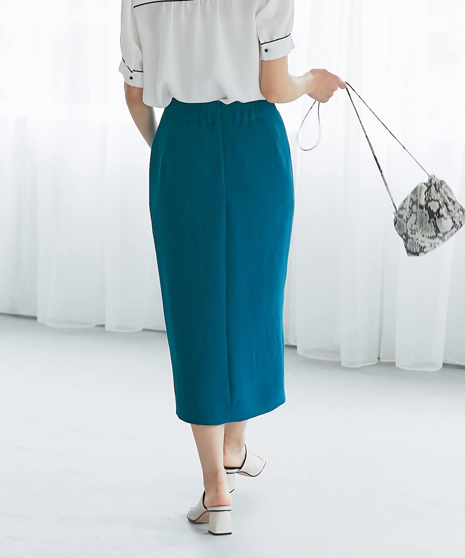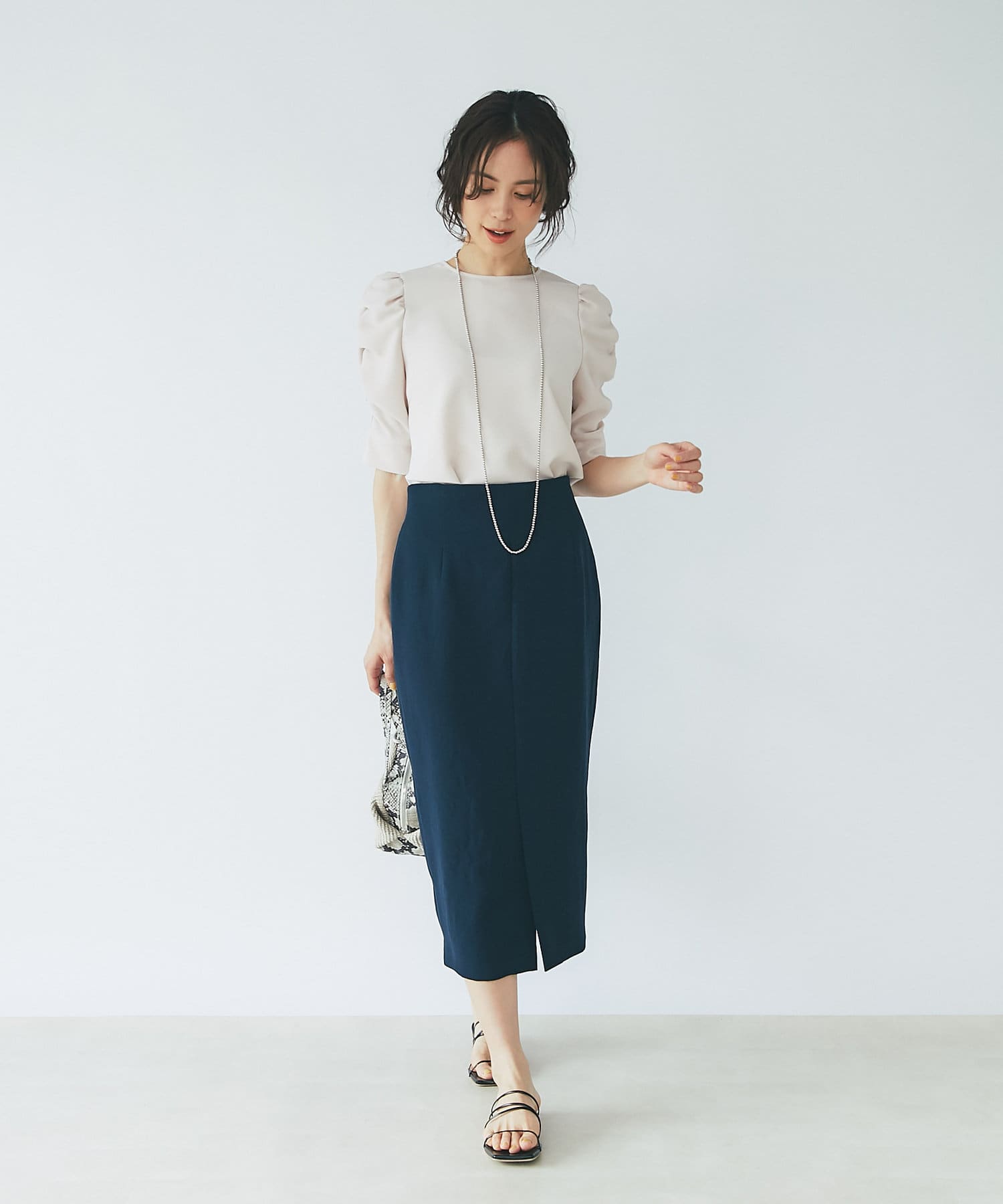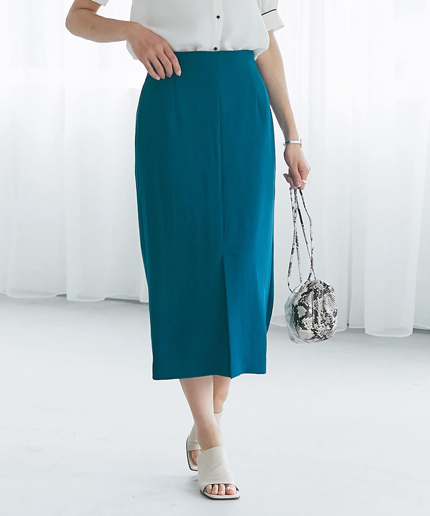 柔らかな質感のナロースカートですっきりとスタイルアップ!