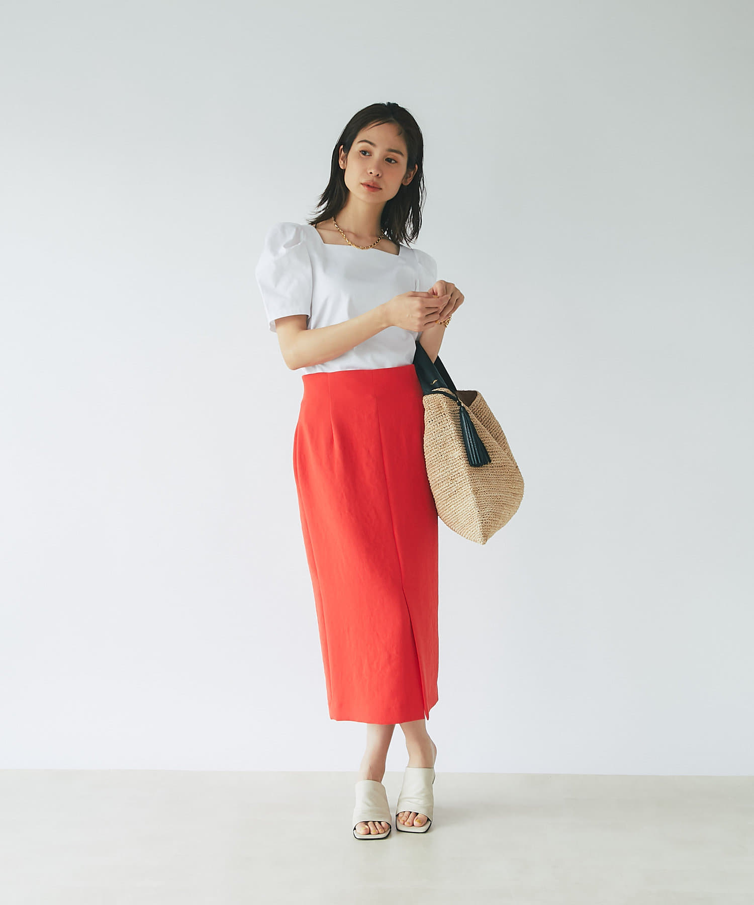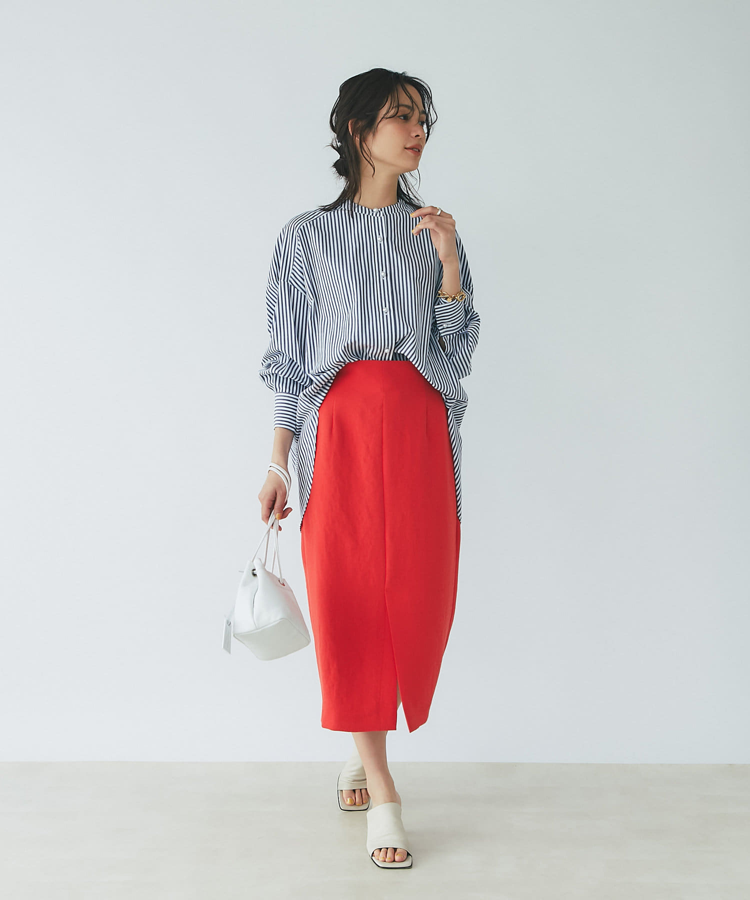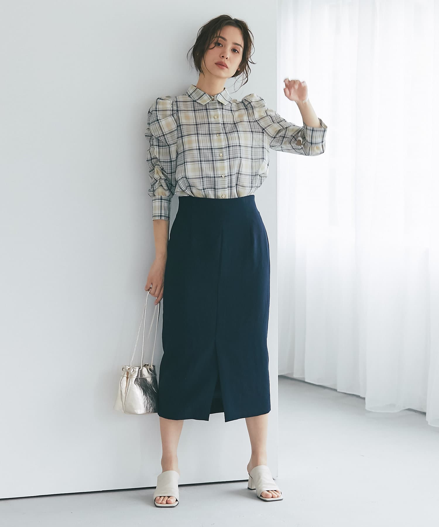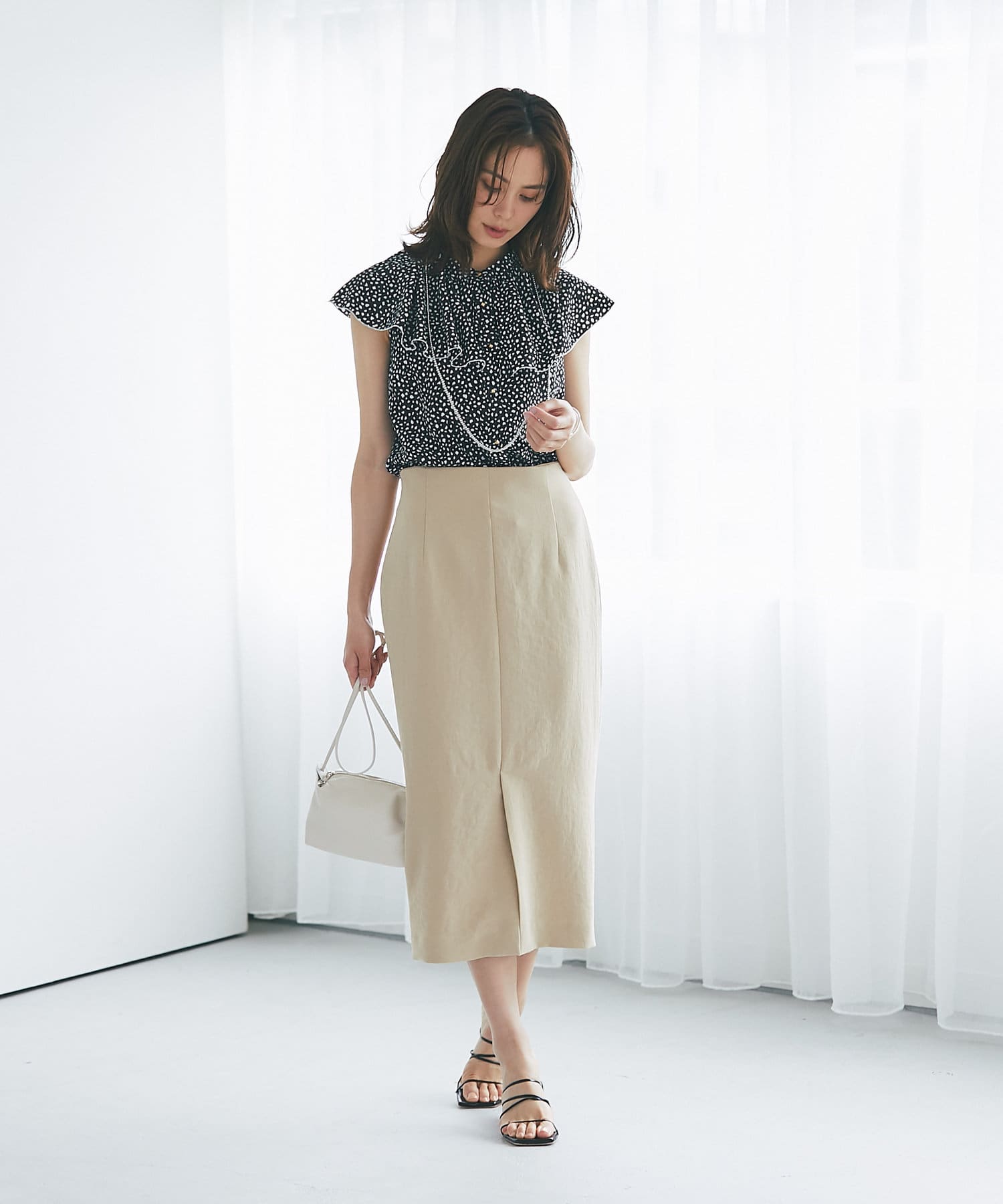 柔らかな質感のナロースカートですっきりとスタイルアップ!