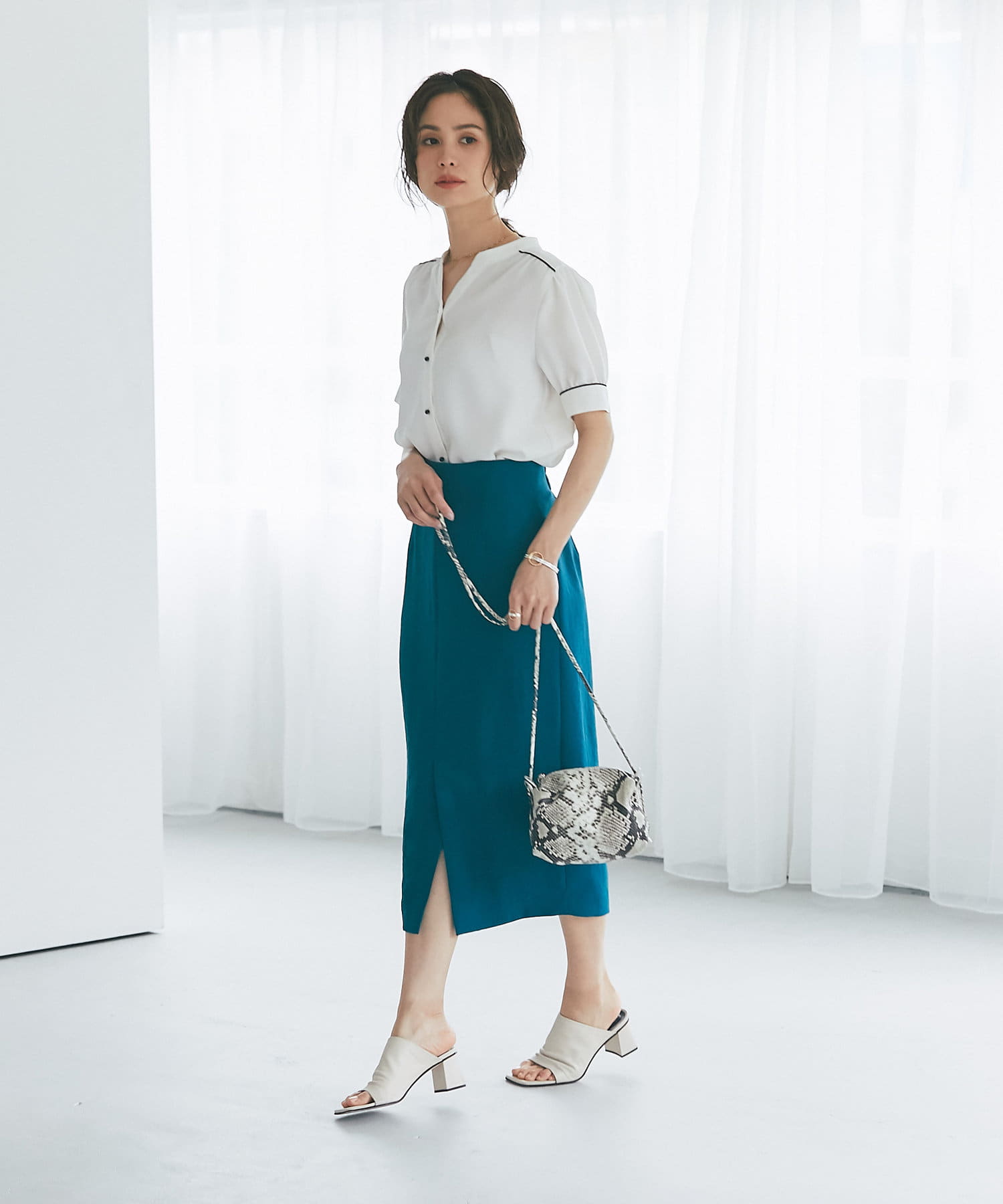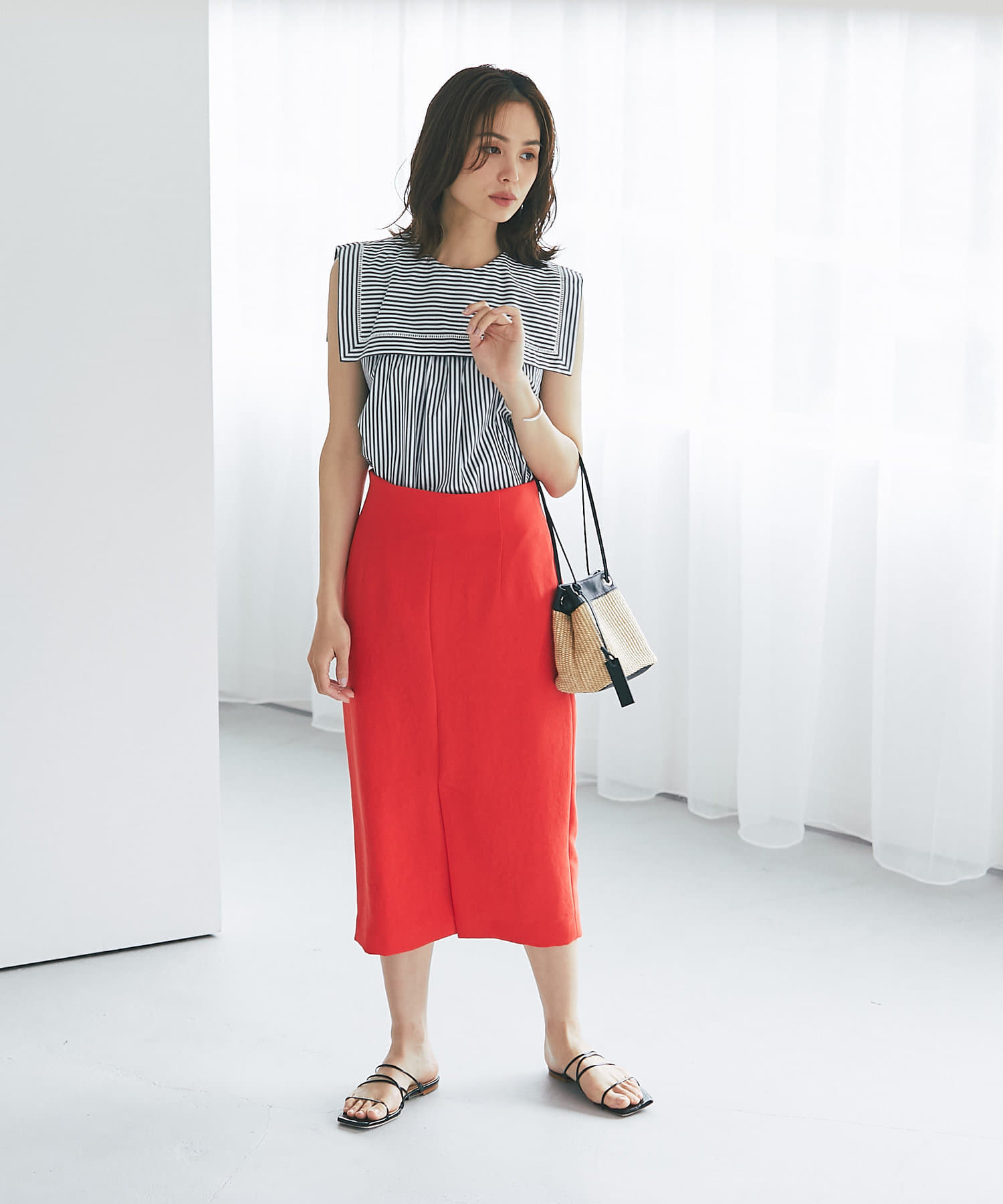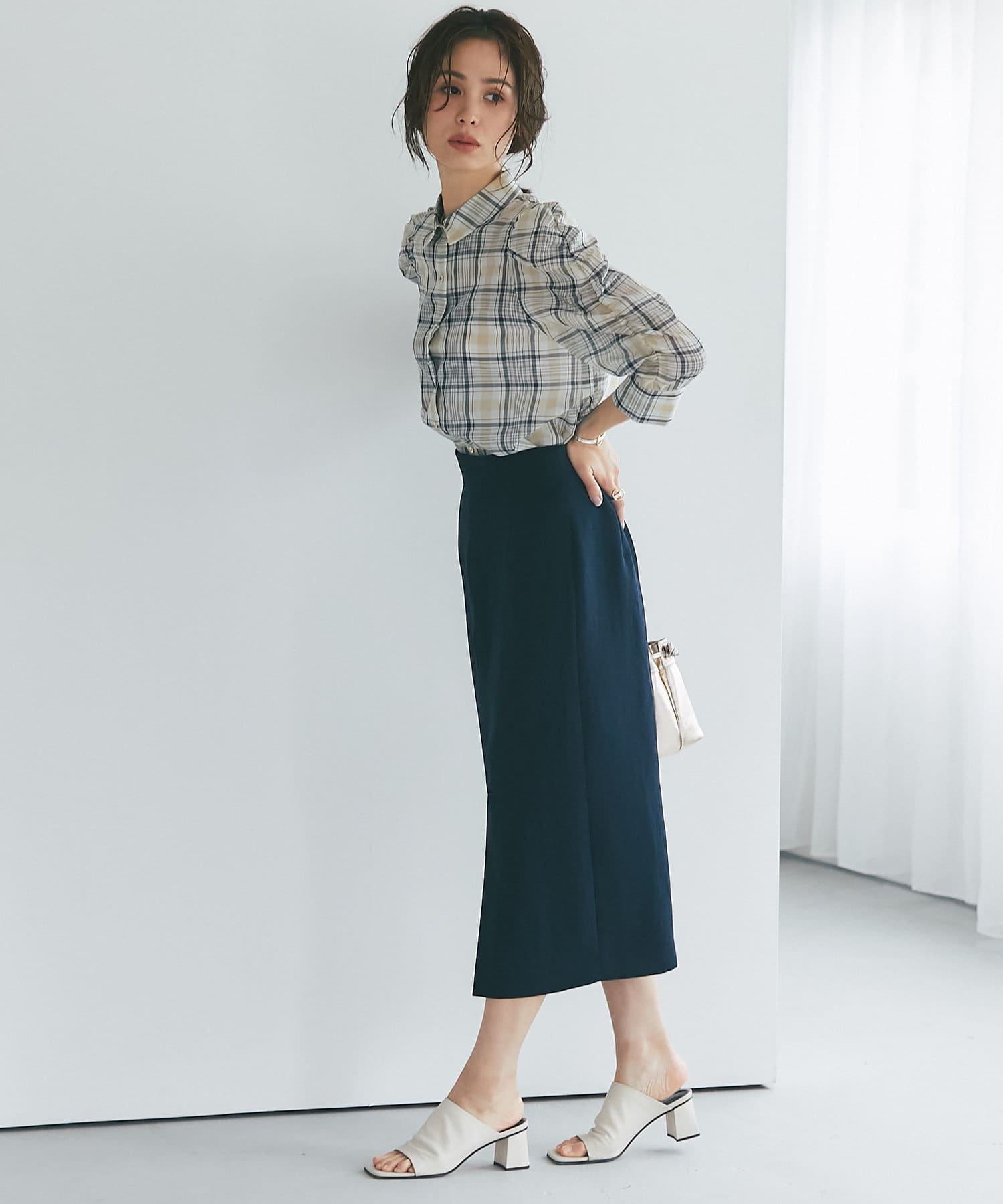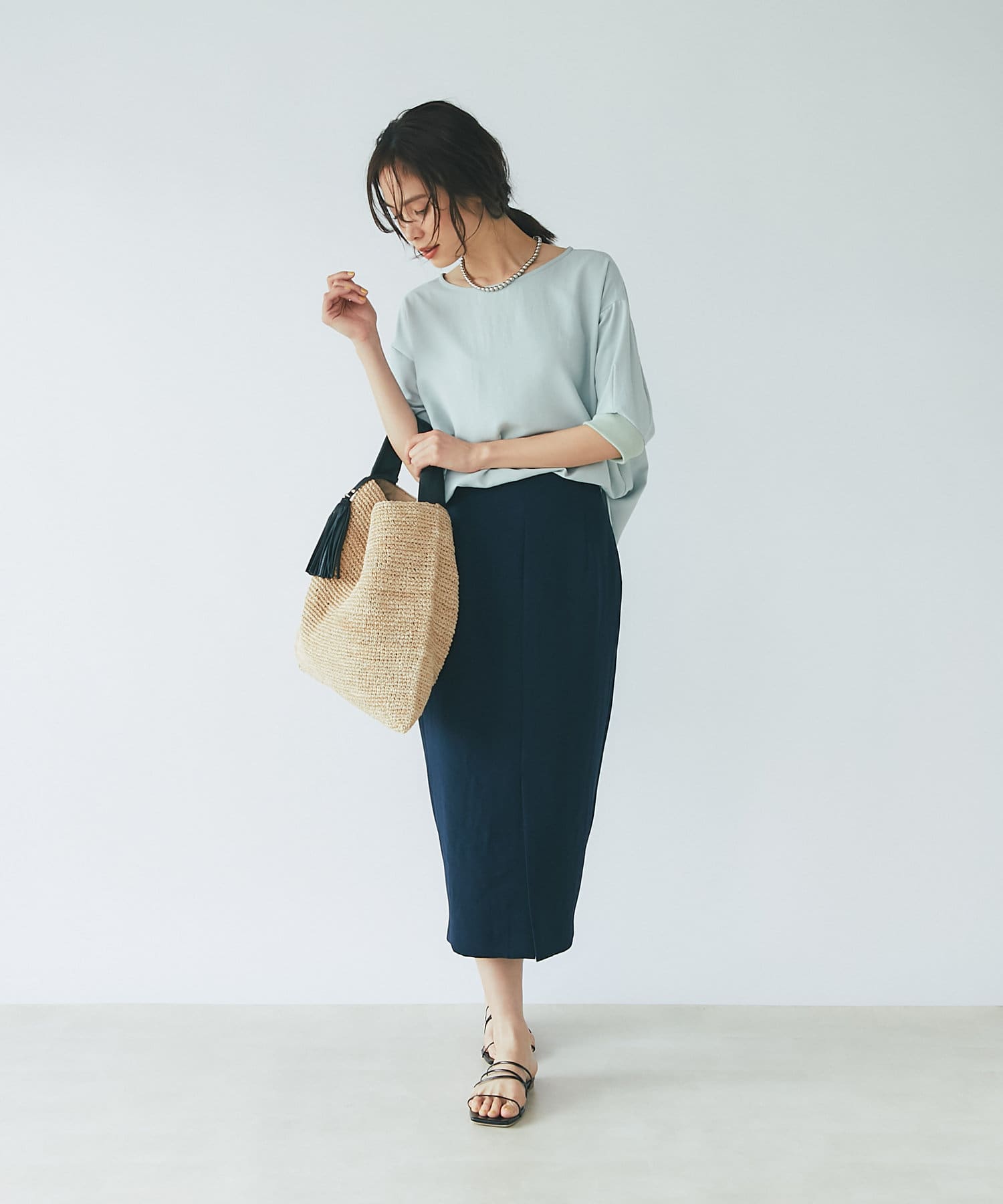 柔らかな質感のナロースカートですっきりとスタイルアップ!