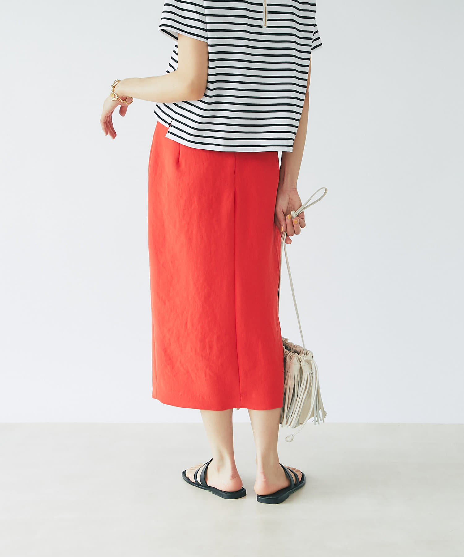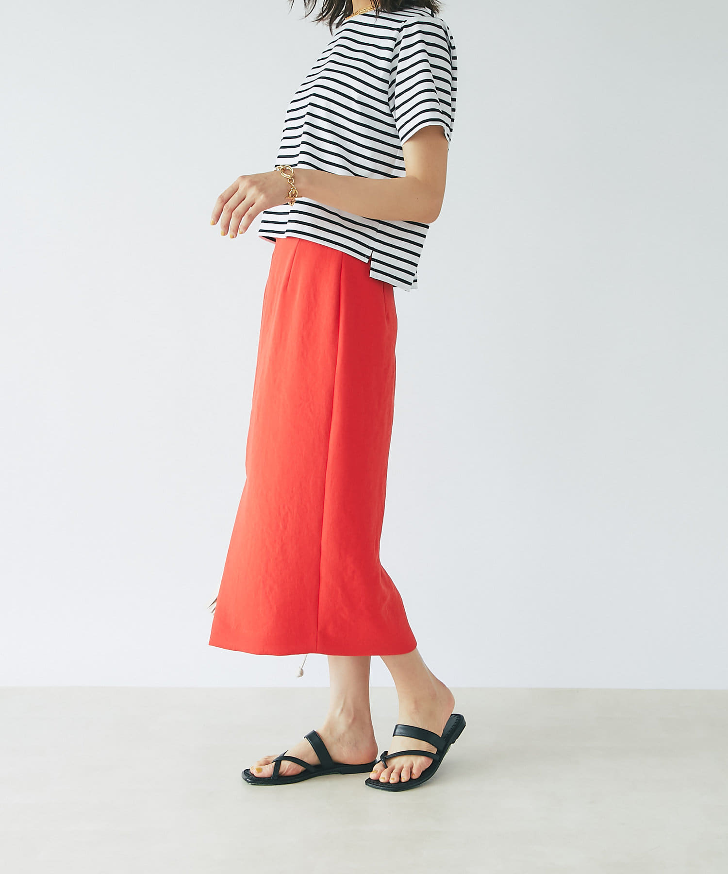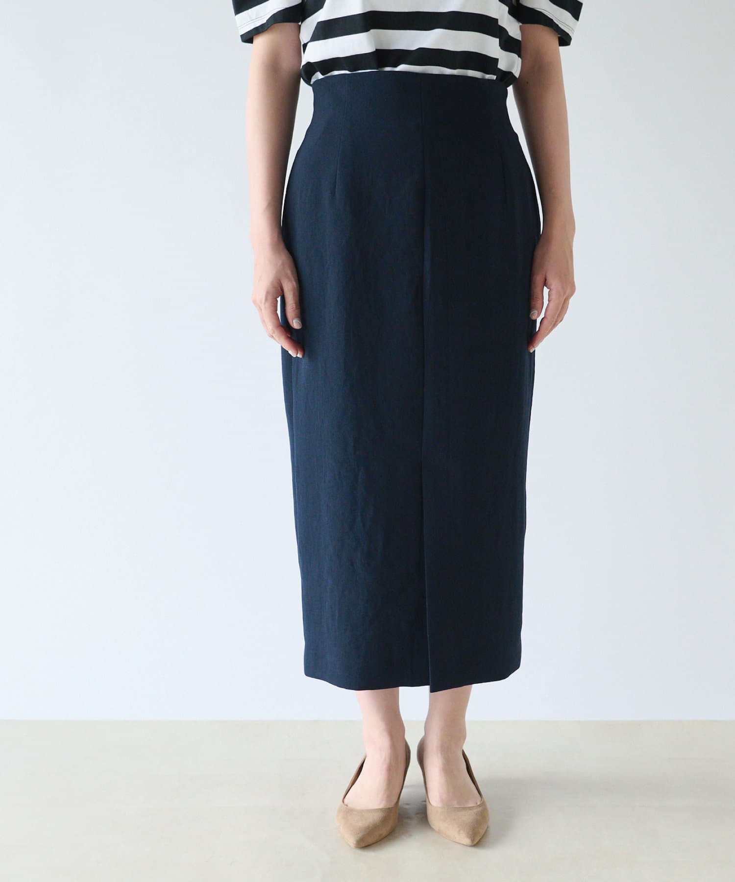 【フロントスリットが大人な印象に】ドライダブルクロスナロースカート