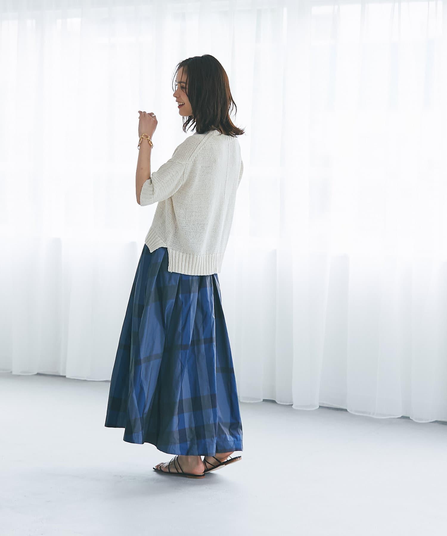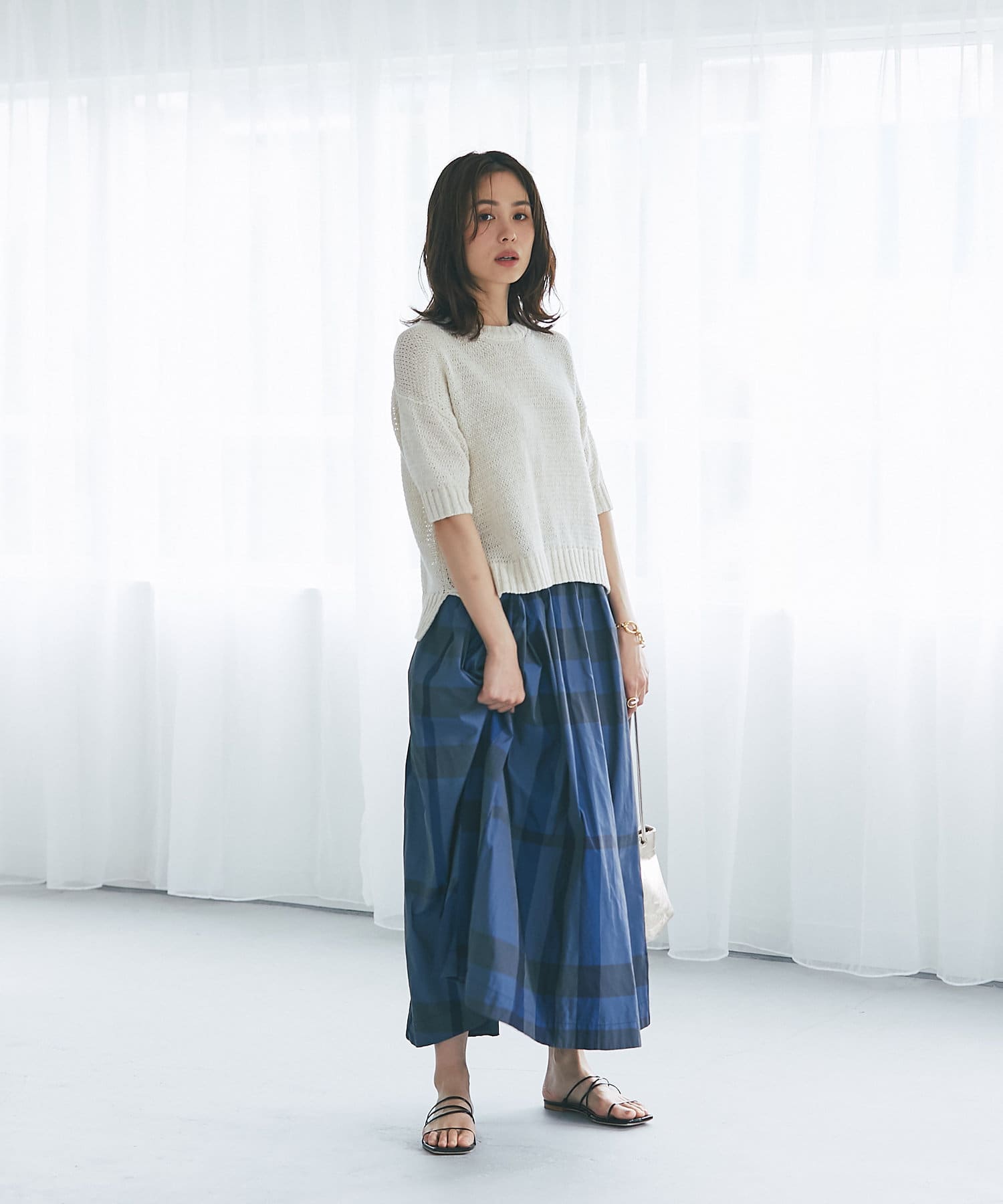 • フェミニンなスカートとの相性も抜群です。