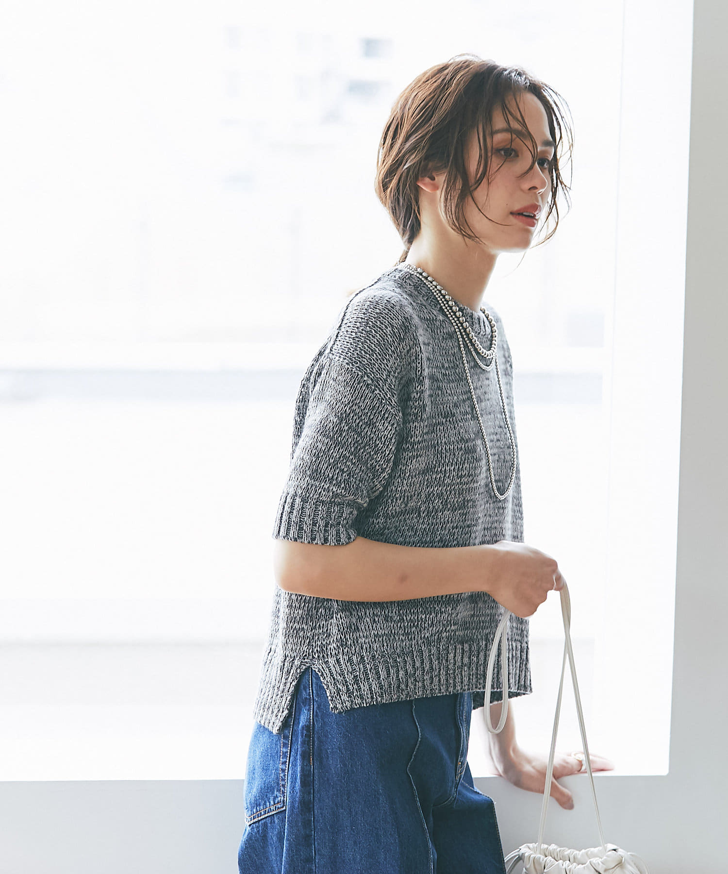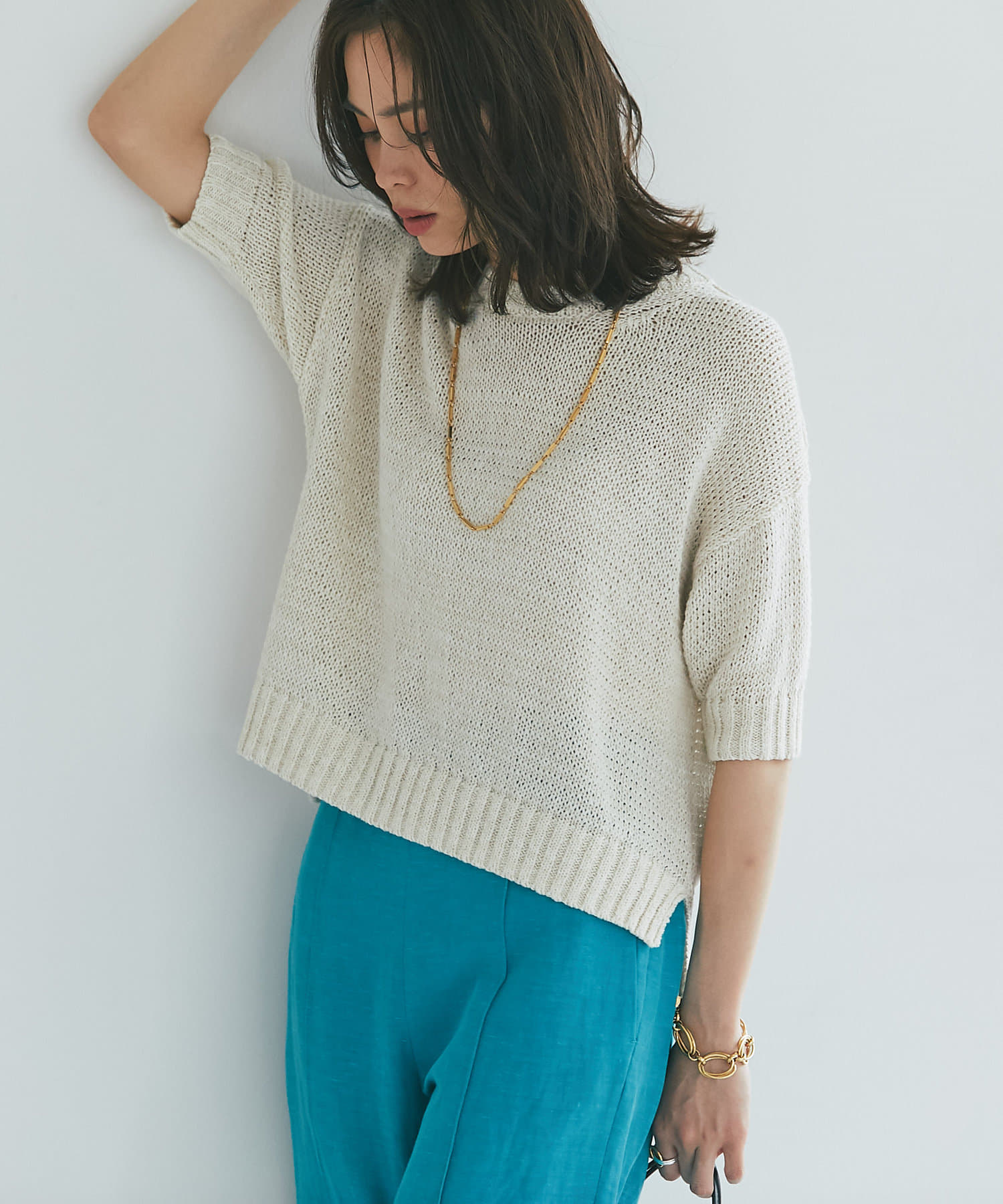 #クロップドニット #ドロップショルダー #リラックス #リラクシー #リネン #ラミー #コットン #半袖